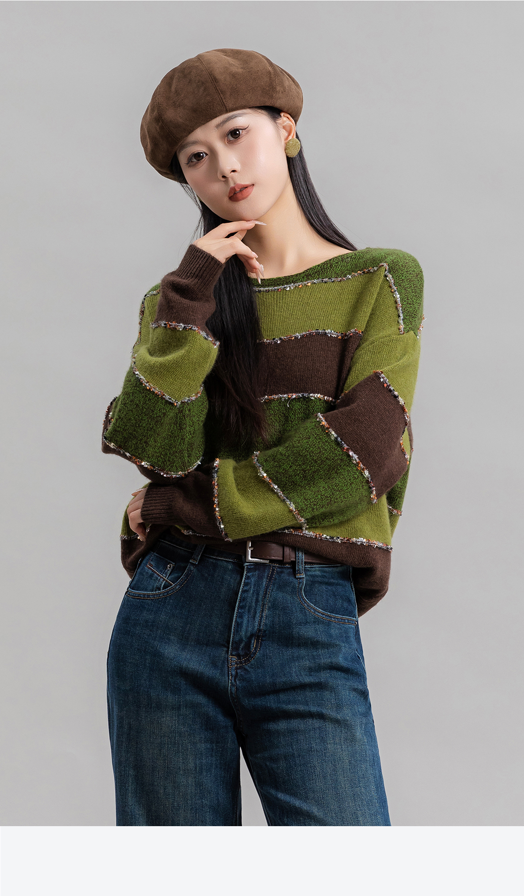 冬上新轻奢质感绿棕撞色柔软精致毛衣1254037 商品图1