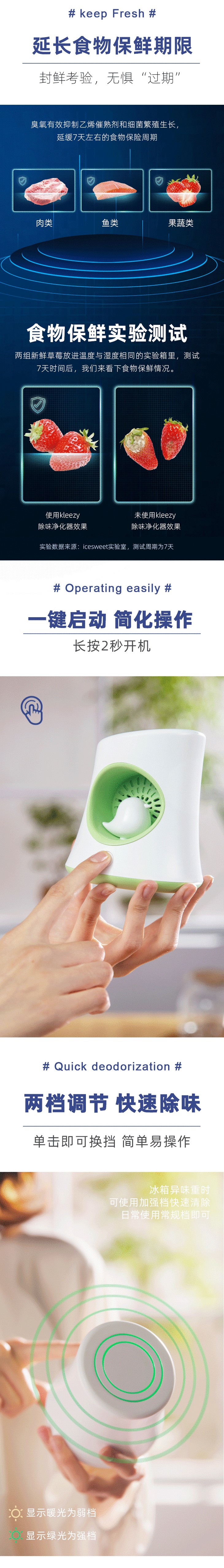 icesweet kleezy除味净化器 科学释放臭氧 去除异味 一键启动 操作简单