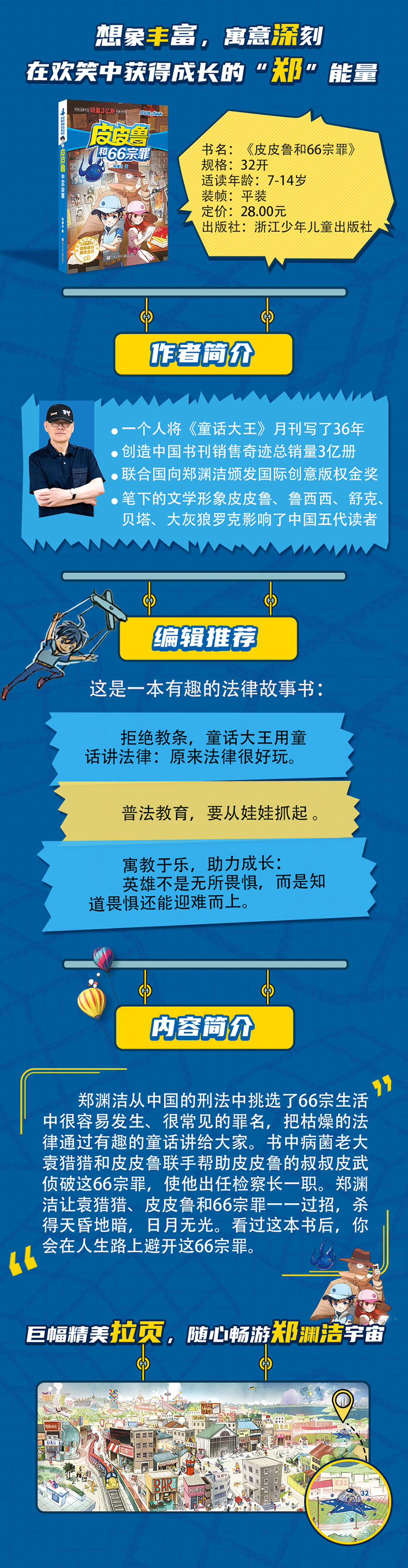 中国的刑法目前总共有452宗罪名,郑渊洁从中挑选了66宗生活中容易发生、常见的罪名,把枯燥的法律通过有趣的童话告诉大家。《皮皮鲁和66宗罪》中病菌大王袁猎猎和皮皮鲁联手帮助皮皮鲁的叔叔皮武侦破这66宗罪,使他出任检察长一职。郑渊洁让袁猎猎、皮皮鲁和66宗罪一一过招,杀得天昏地暗,日月无光。看过《皮皮鲁和66宗罪》后,你会在人生路上避开这66宗罪。