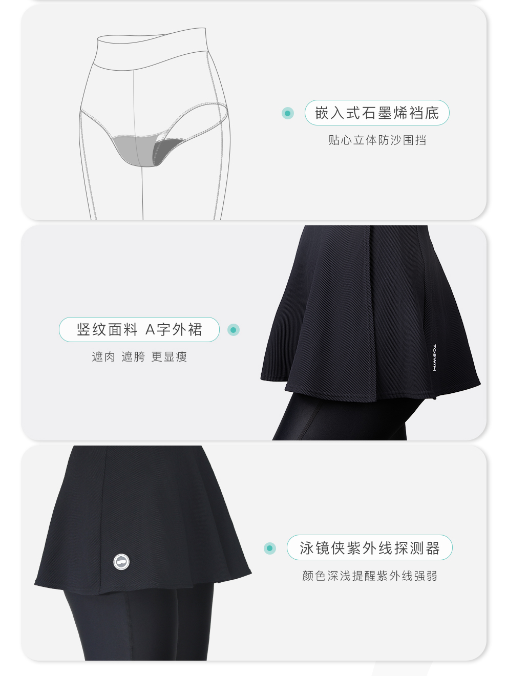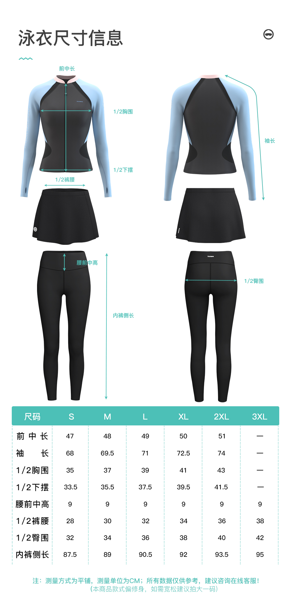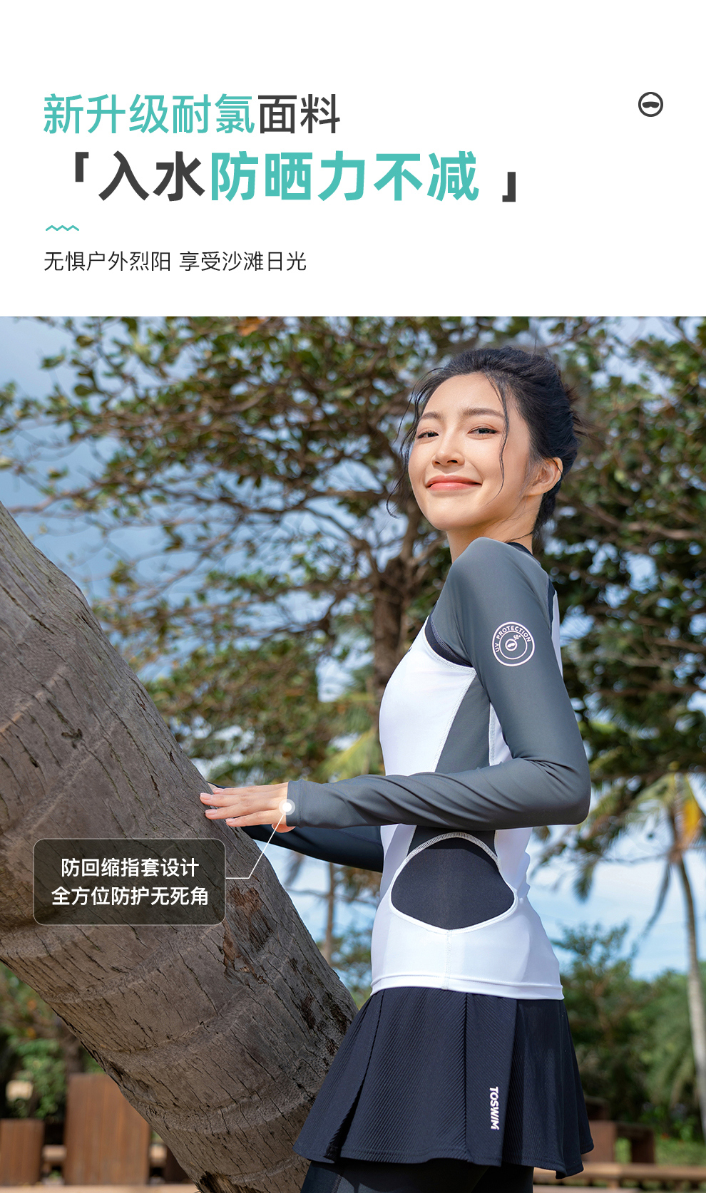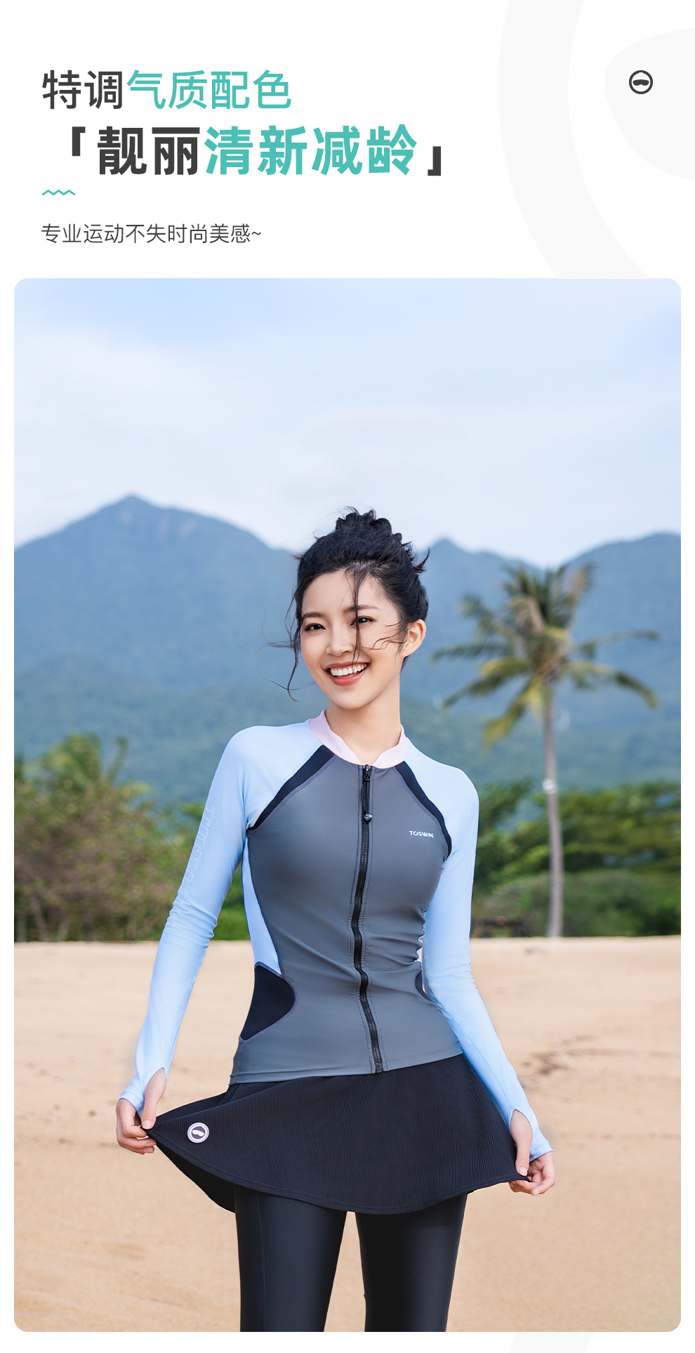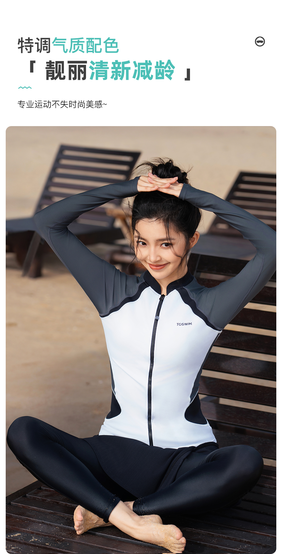 【代发】toswim女士长袖防晒游泳上衣泳衣/分体长裤半裙防晒休闲两件套女款分体泳衣