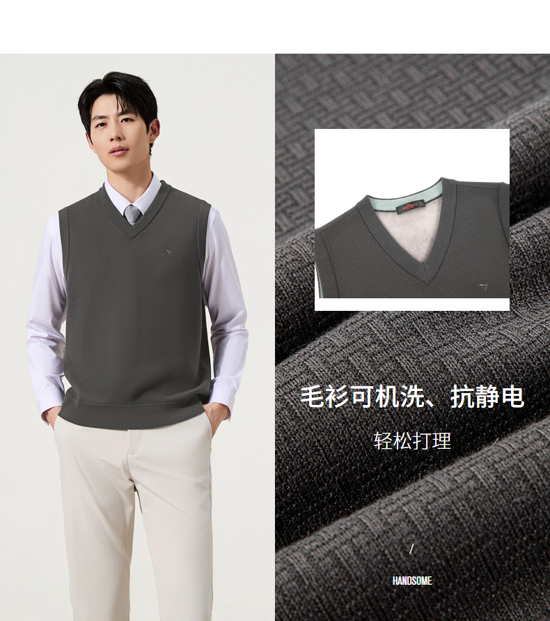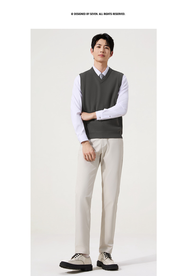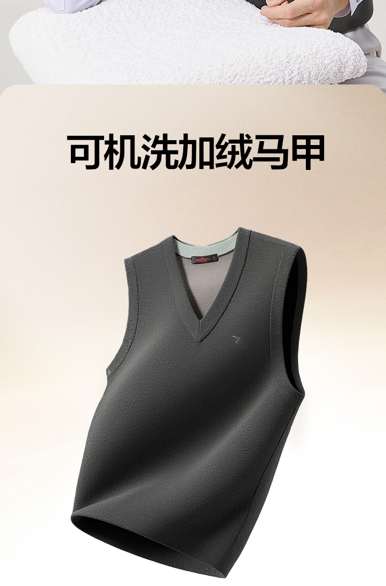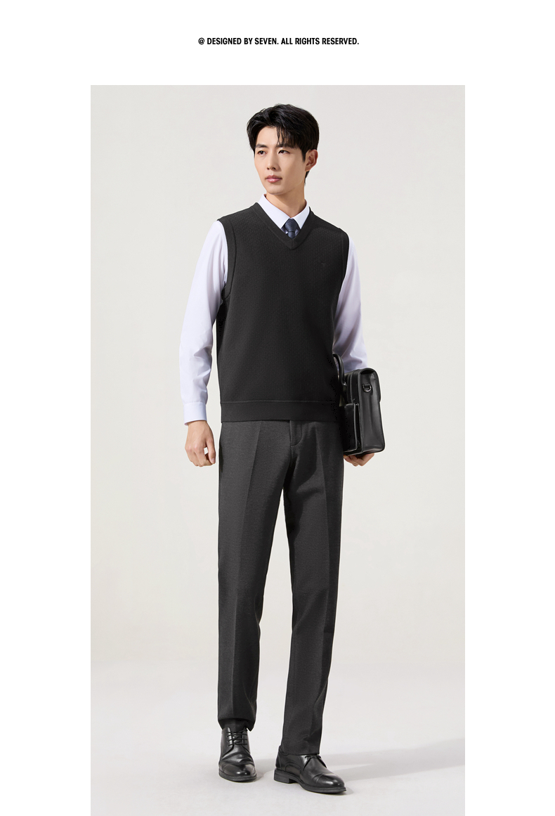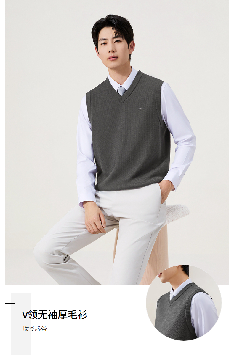 【含羊毛/蚕丝/可机洗/抗静电】柒牌V领套头厚毛衫25秋冬加绒马甲129Y70800