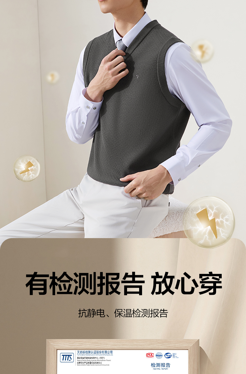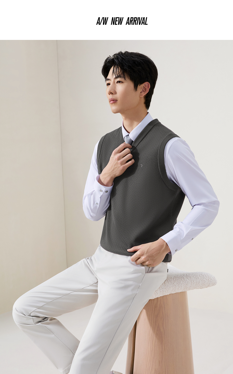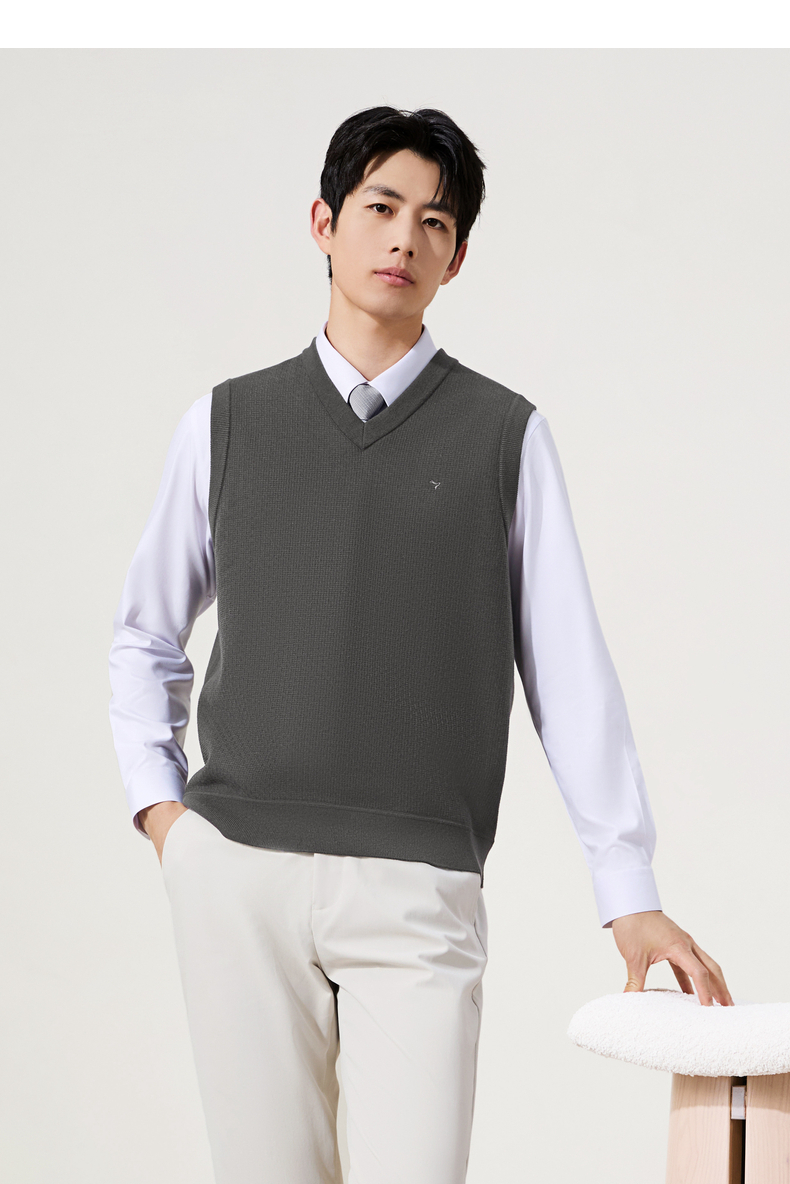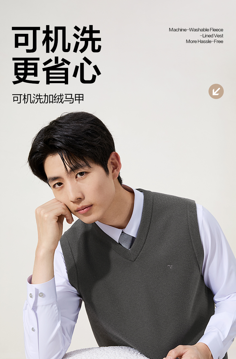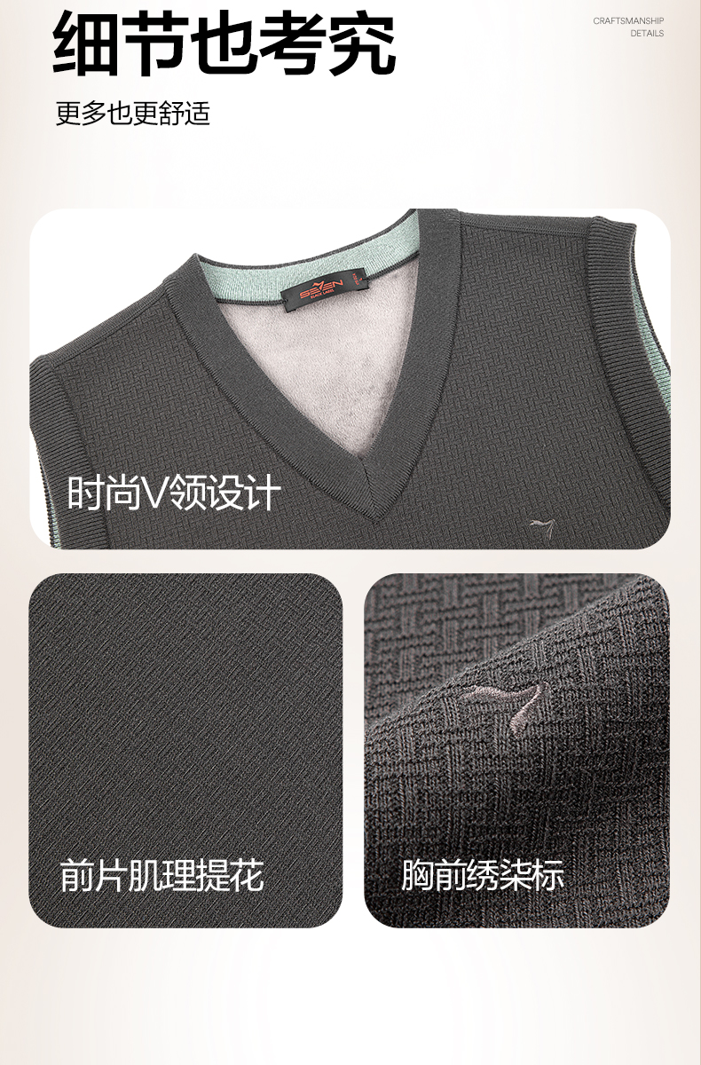 【含羊毛/蚕丝/可机洗/抗静电】柒牌V领套头厚毛衫25秋冬加绒马甲129Y70800