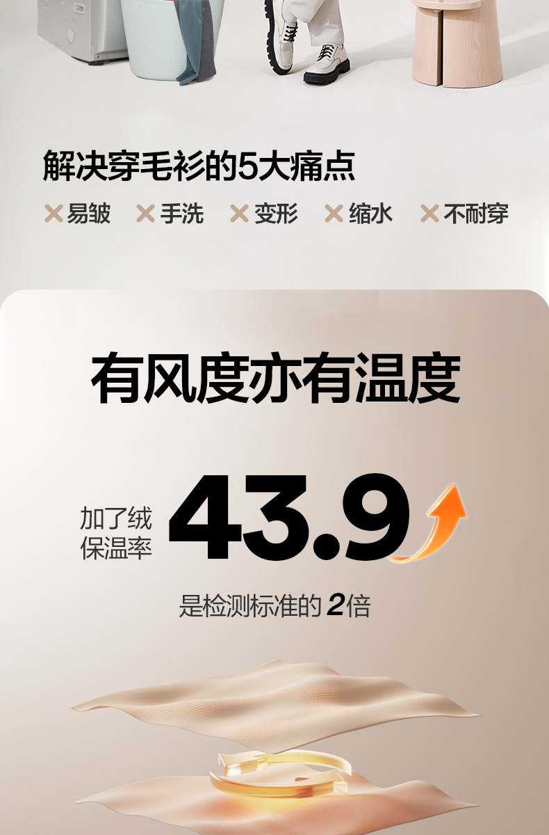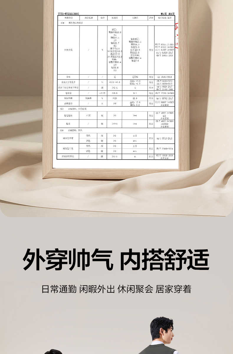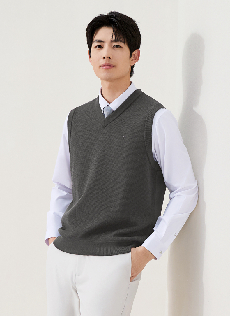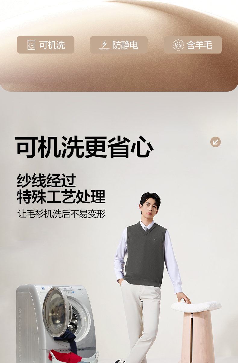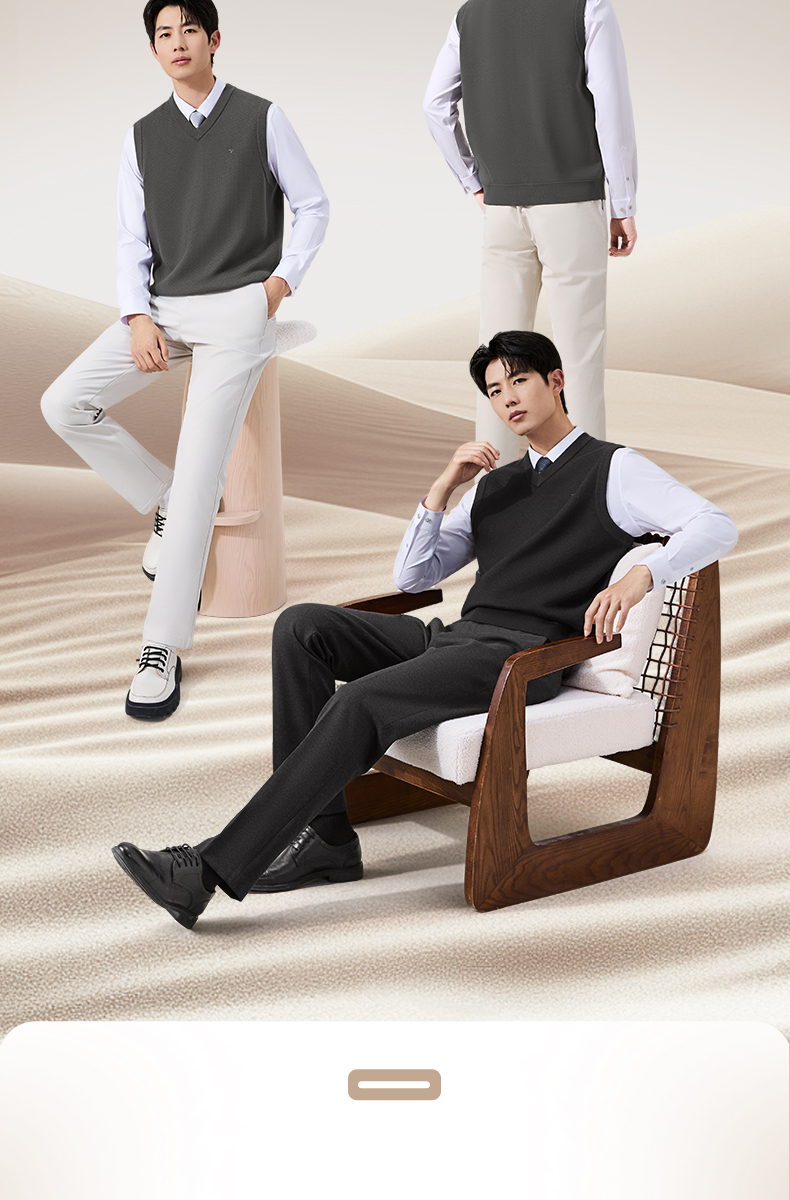 【含羊毛/蚕丝/可机洗/抗静电】柒牌V领套头厚毛衫25秋冬加绒马甲129Y70800