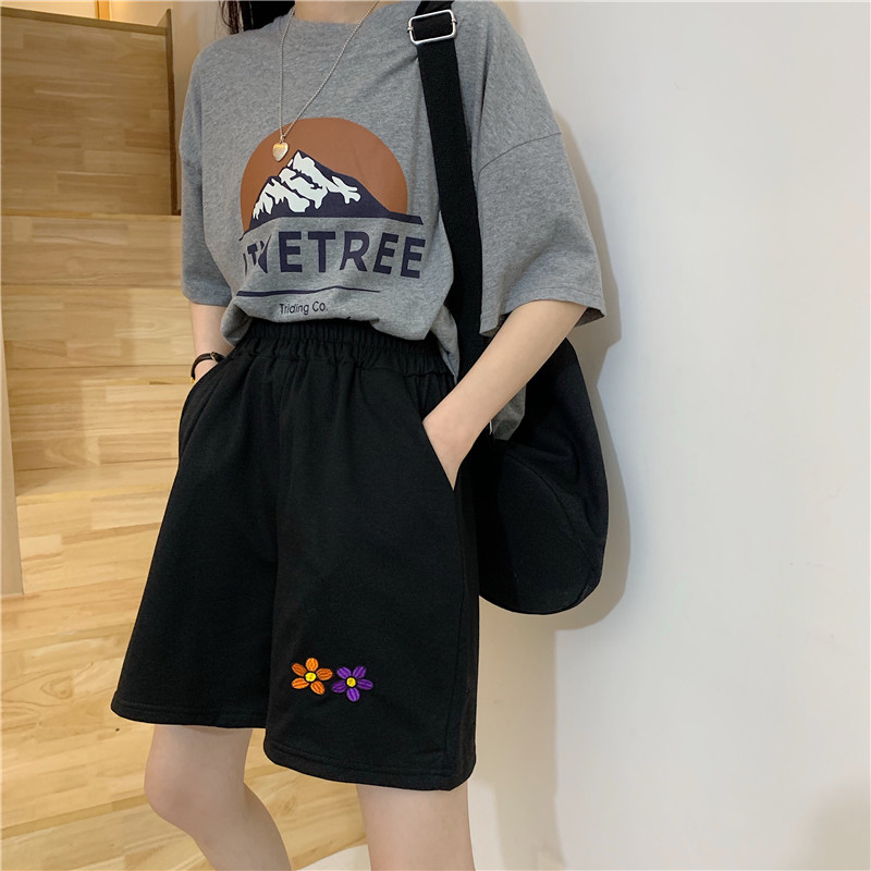 五分裤女短裤宽松外穿居家休闲潮ins高腰松紧瑜伽跑步七夕节七夕情人节