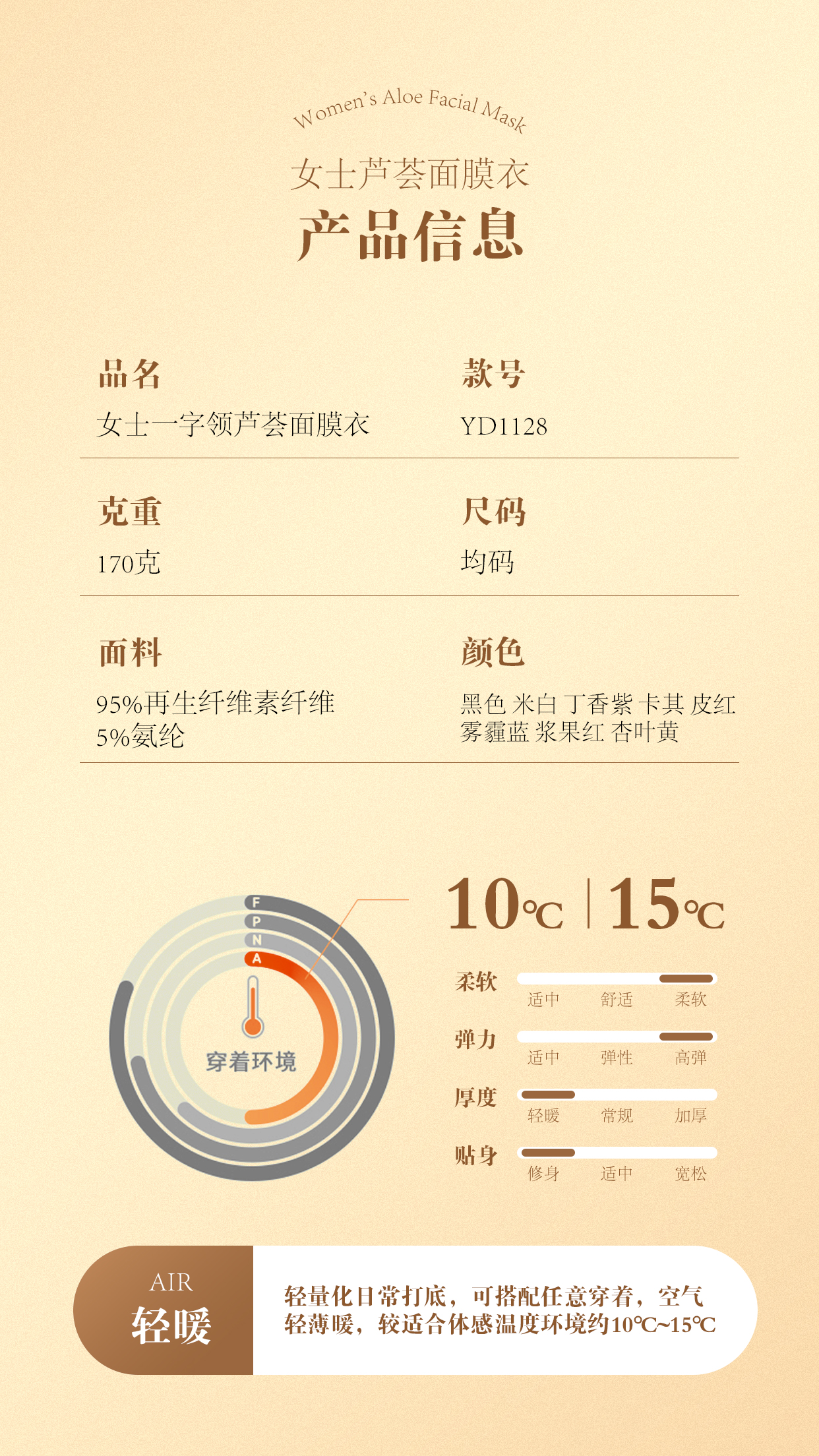 【新款芦荟面膜打底衣】芦荟打底面膜衣一字领秋季长袖肌底衣轻薄保暖显瘦无尺码无痕百搭上衣