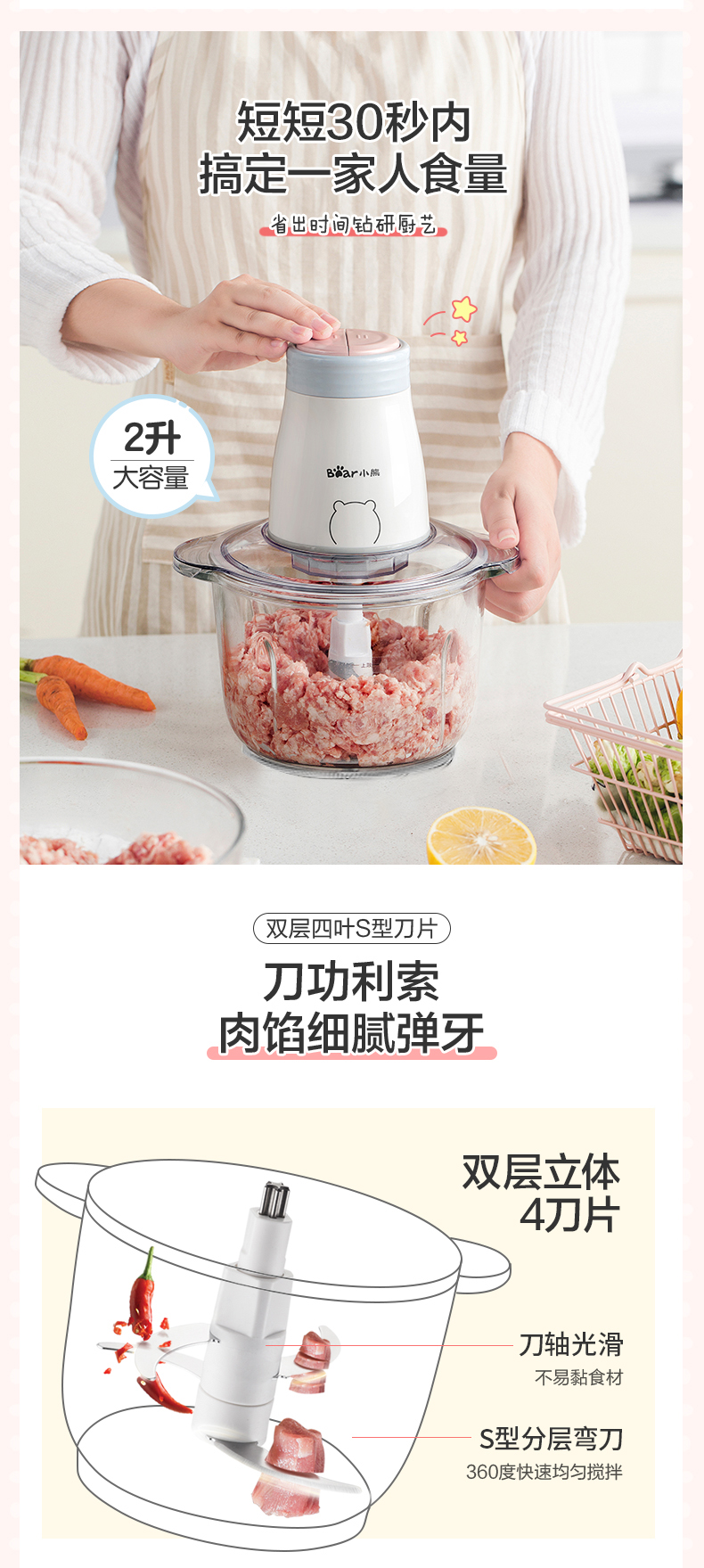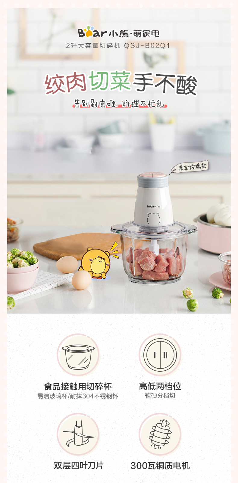 小熊绞肉机家用电动小型料理机多功能打肉馅搅拌机碎肉机蒜泥神器
