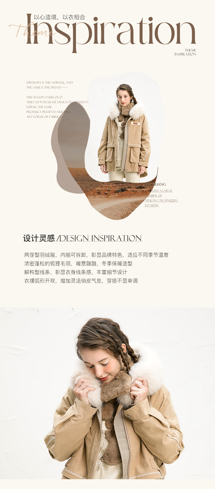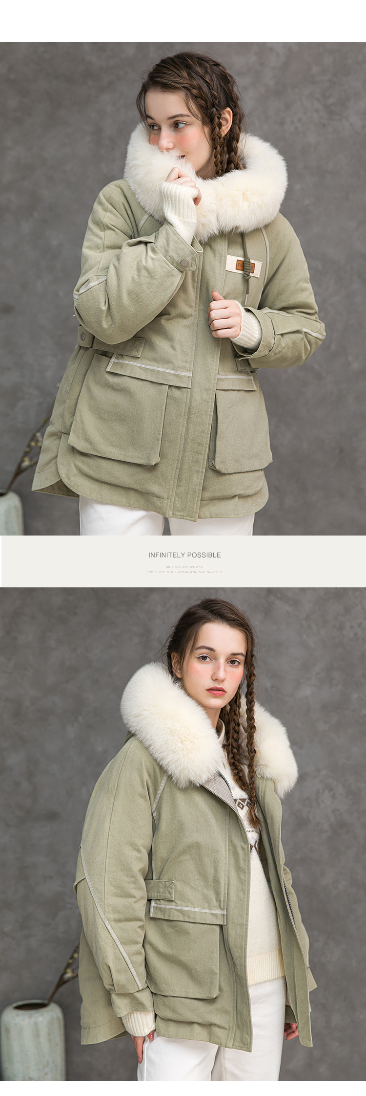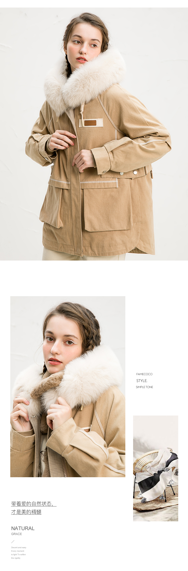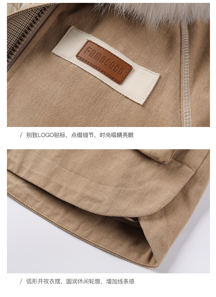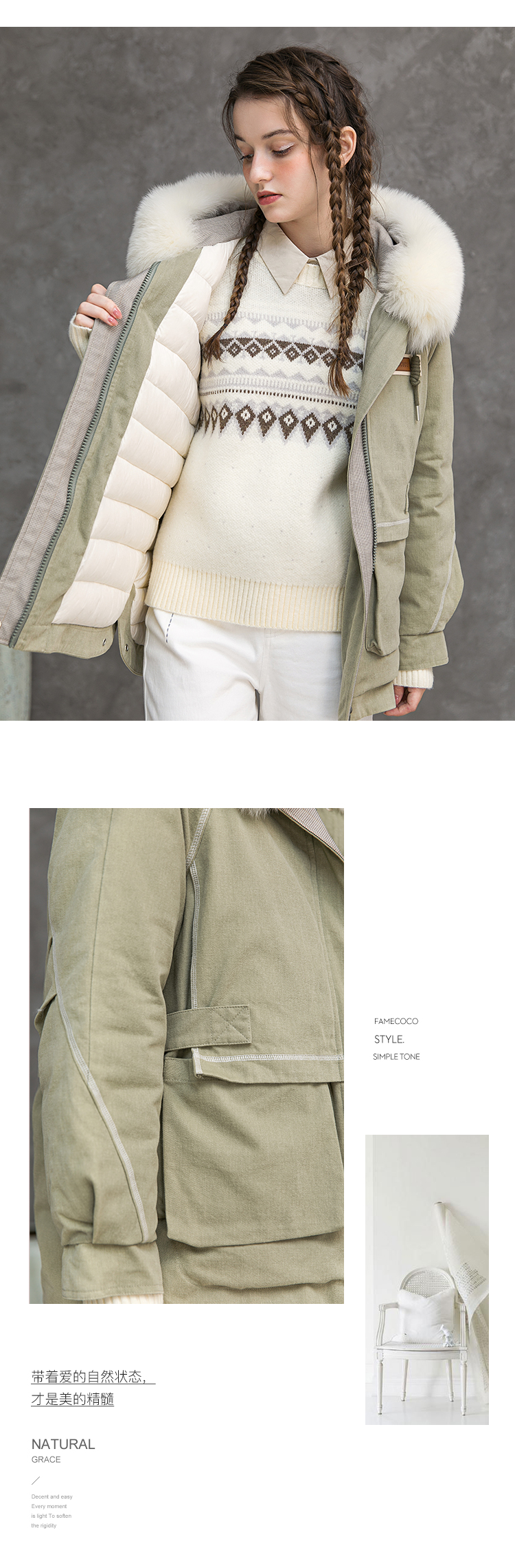 famecoco范可儿大毛领派克服女冬季品牌工装羽绒服中长款女士外套F218AD004