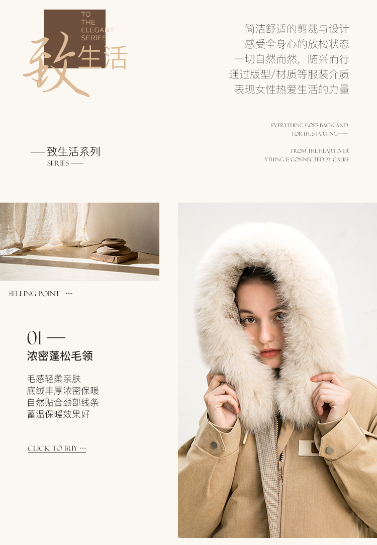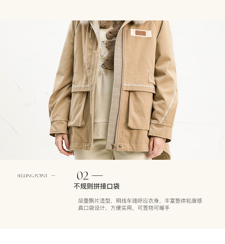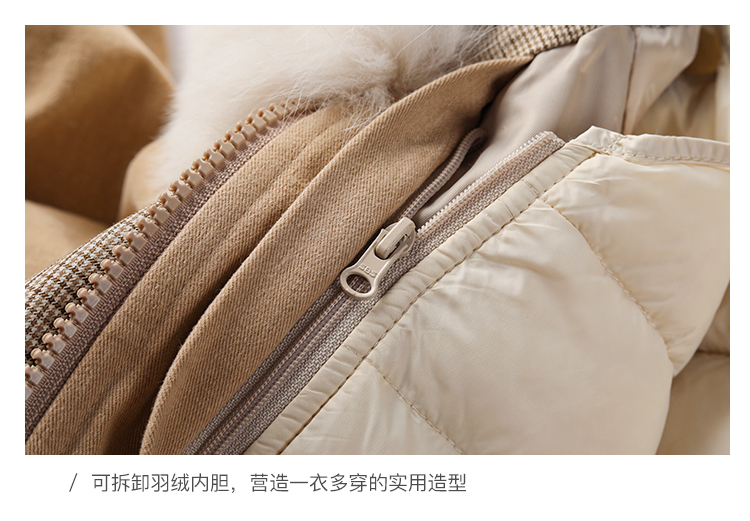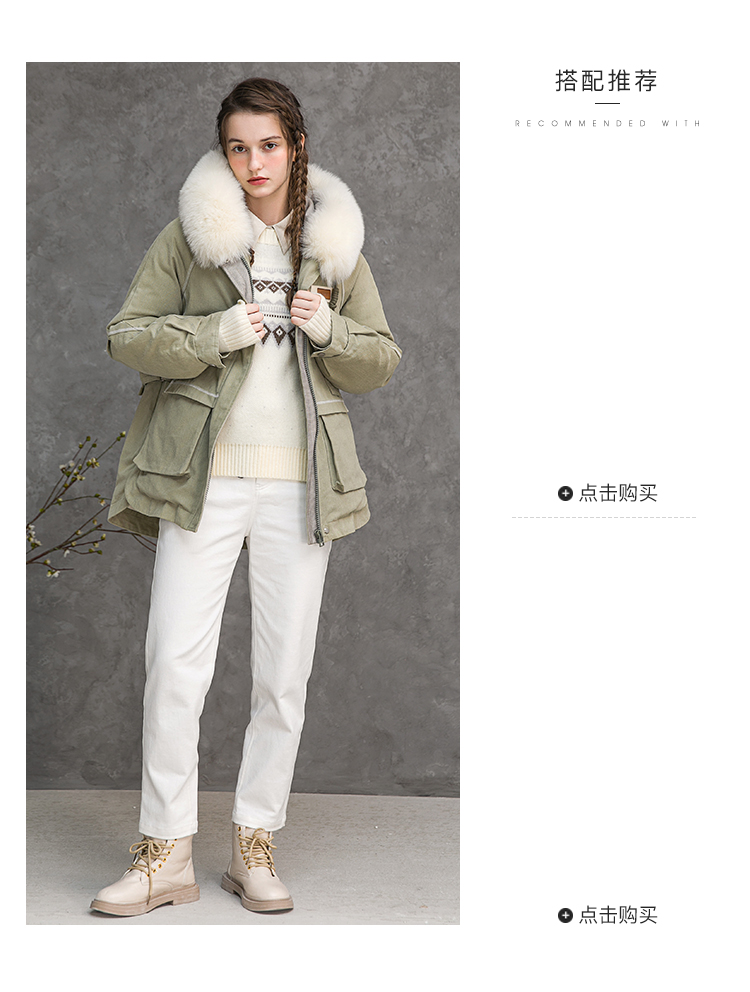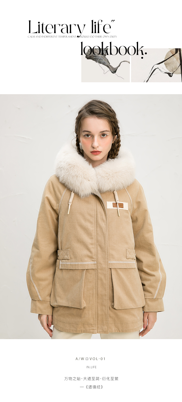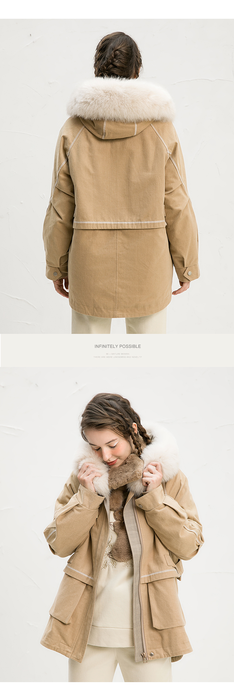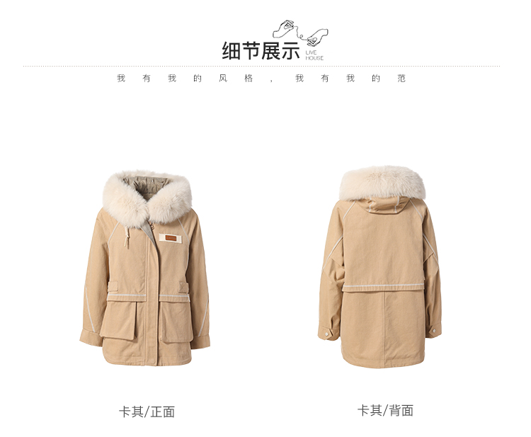 famecoco范可儿大毛领派克服女冬季品牌工装羽绒服中长款女士外套F218AD004
