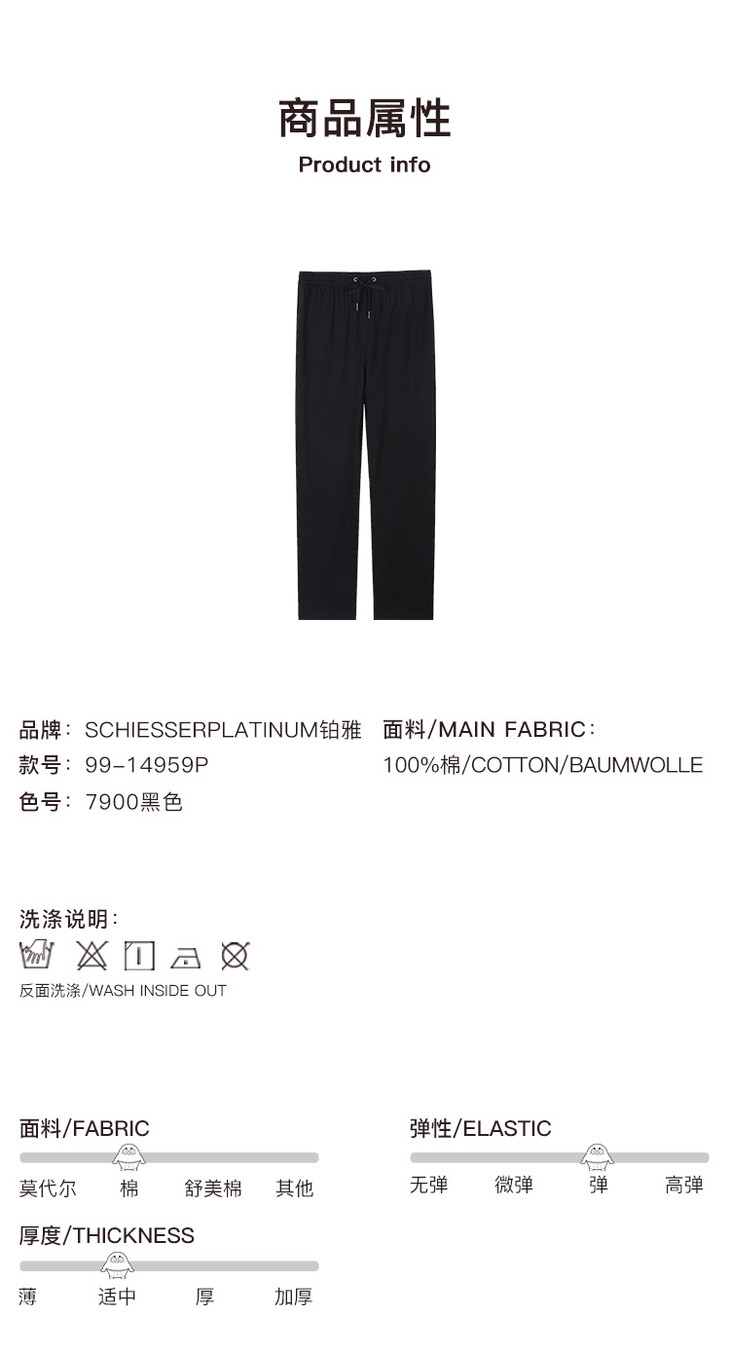 【80S100%丝光棉】SCHIESSER/舒雅铂雅男士全棉纯色家居长裤99/14959P