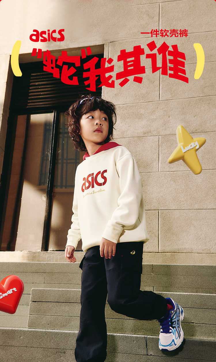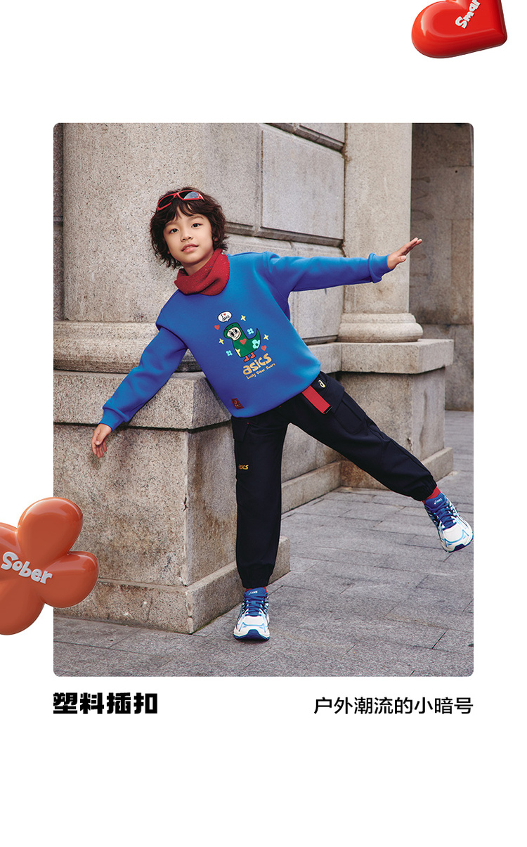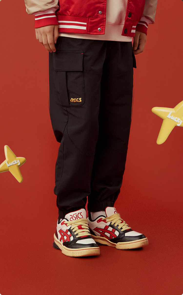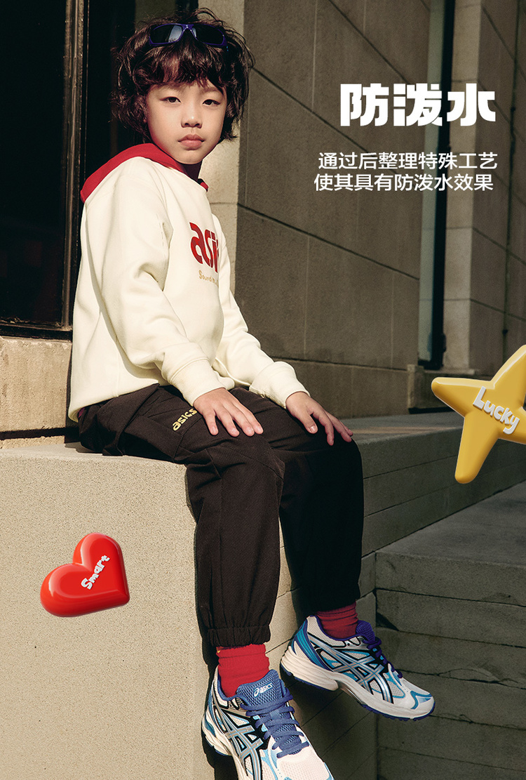 【新年限定】Asics/亚瑟士童装儿童新年裤子可调节工装裤磨毛保暖