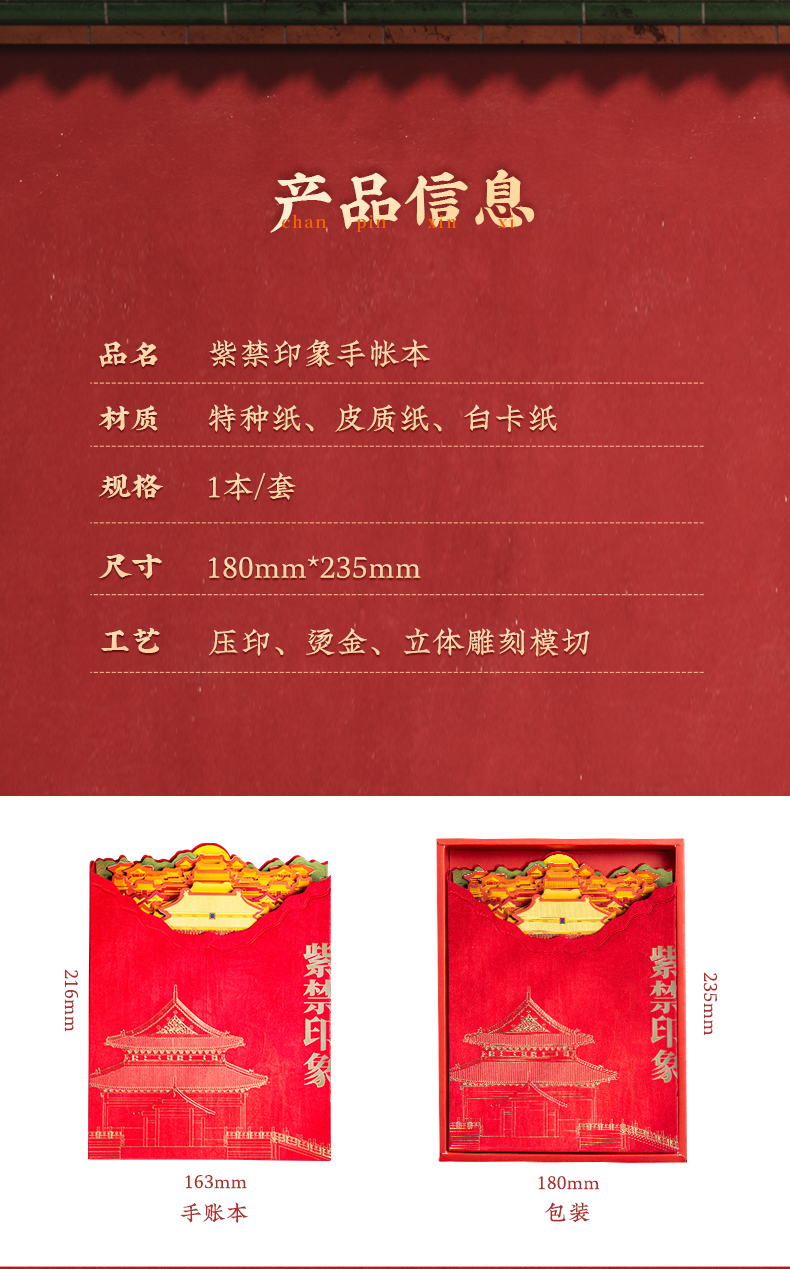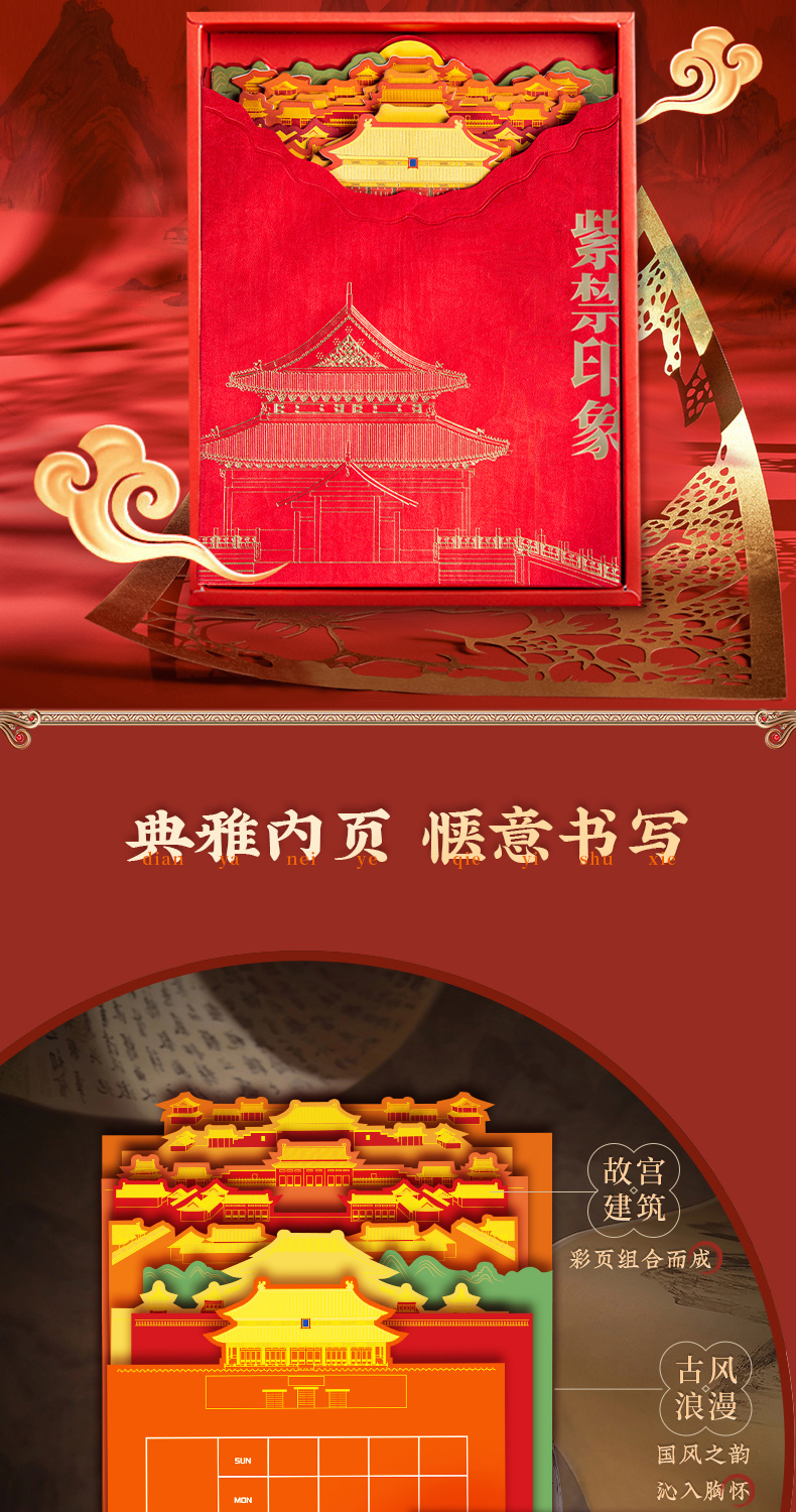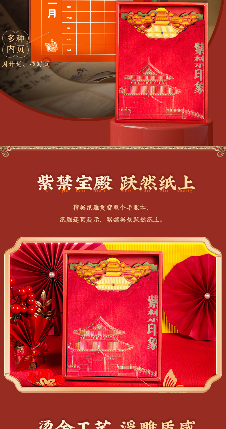 故宫文具紫禁印象练习笔记本创意国潮月历立体纸雕手账本