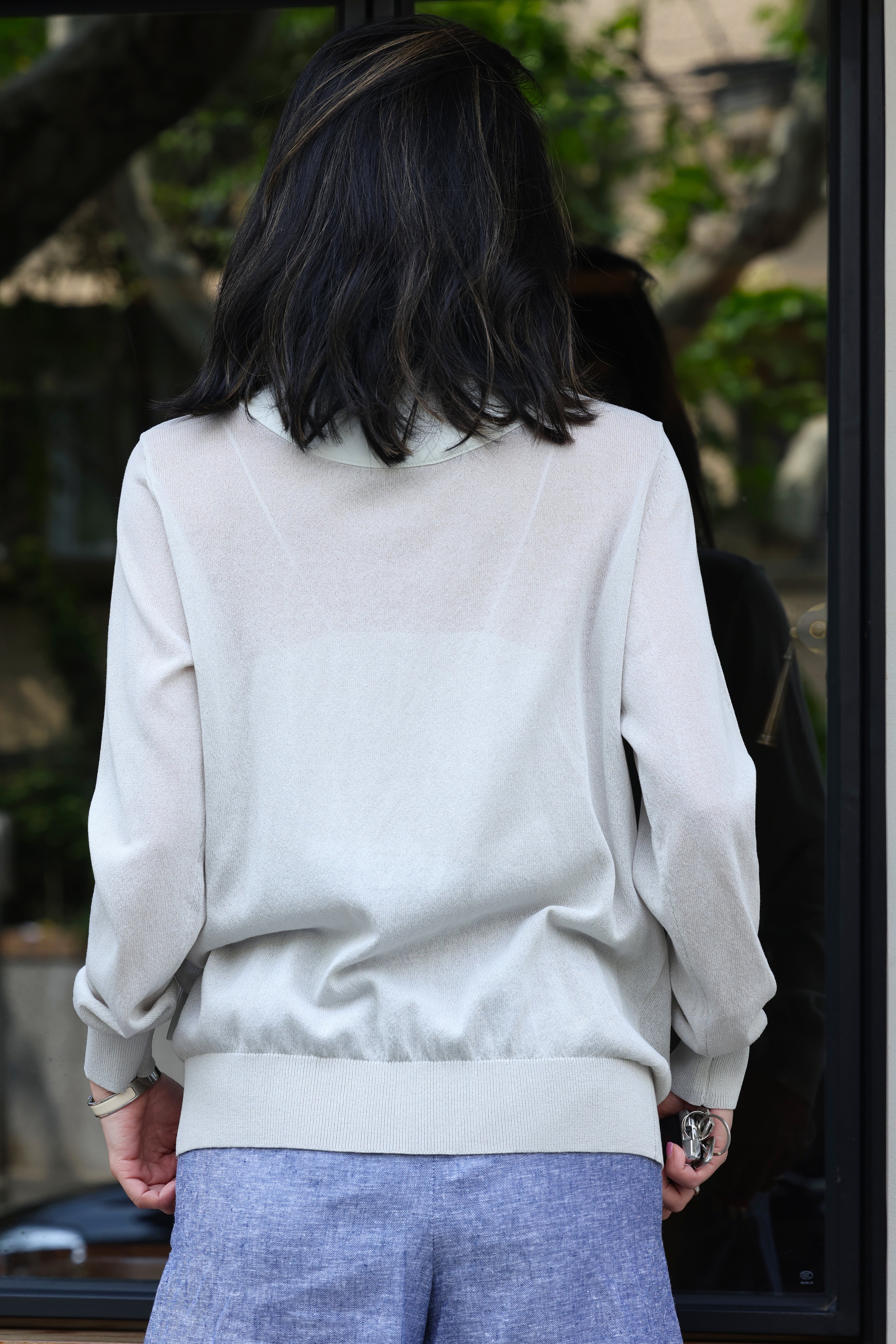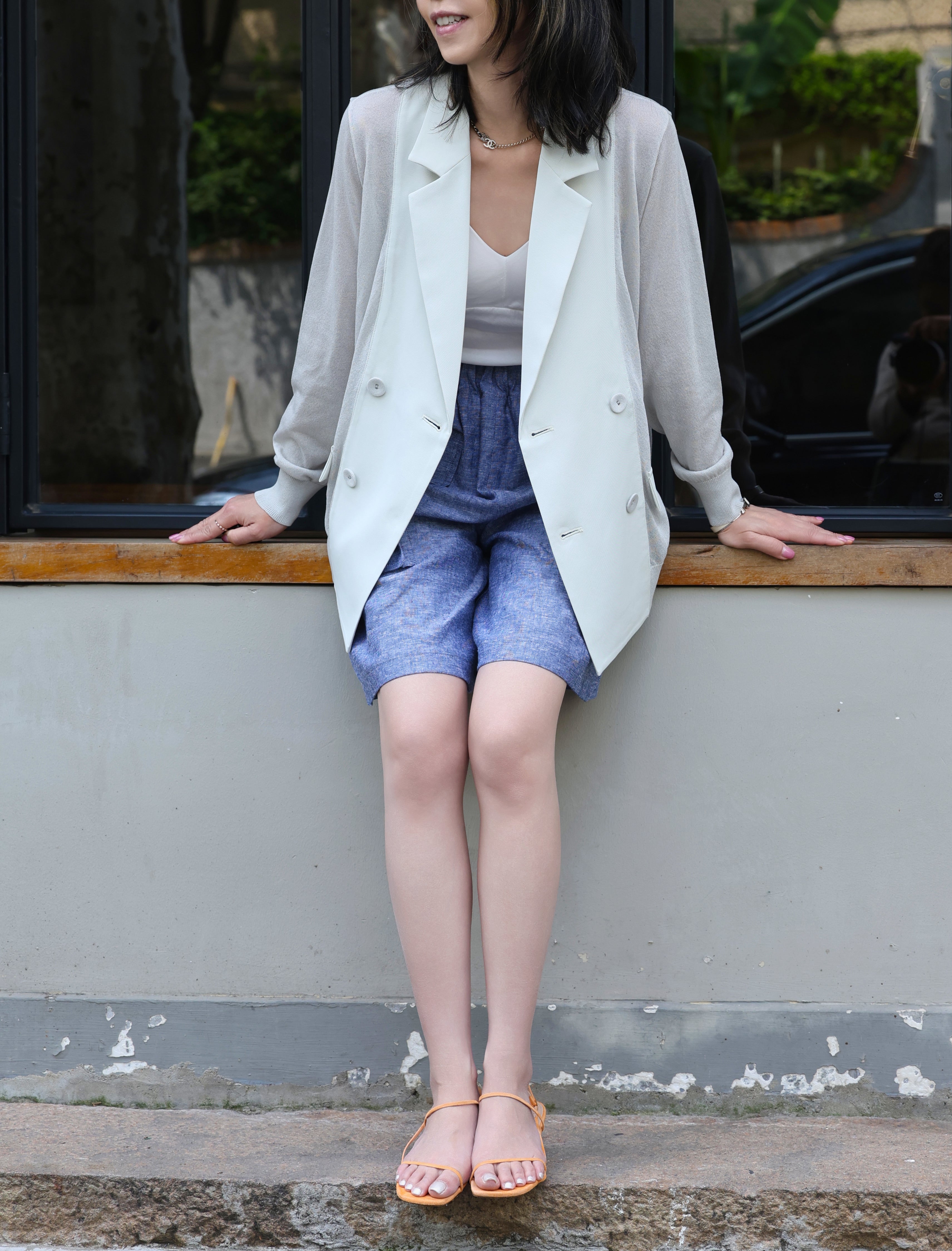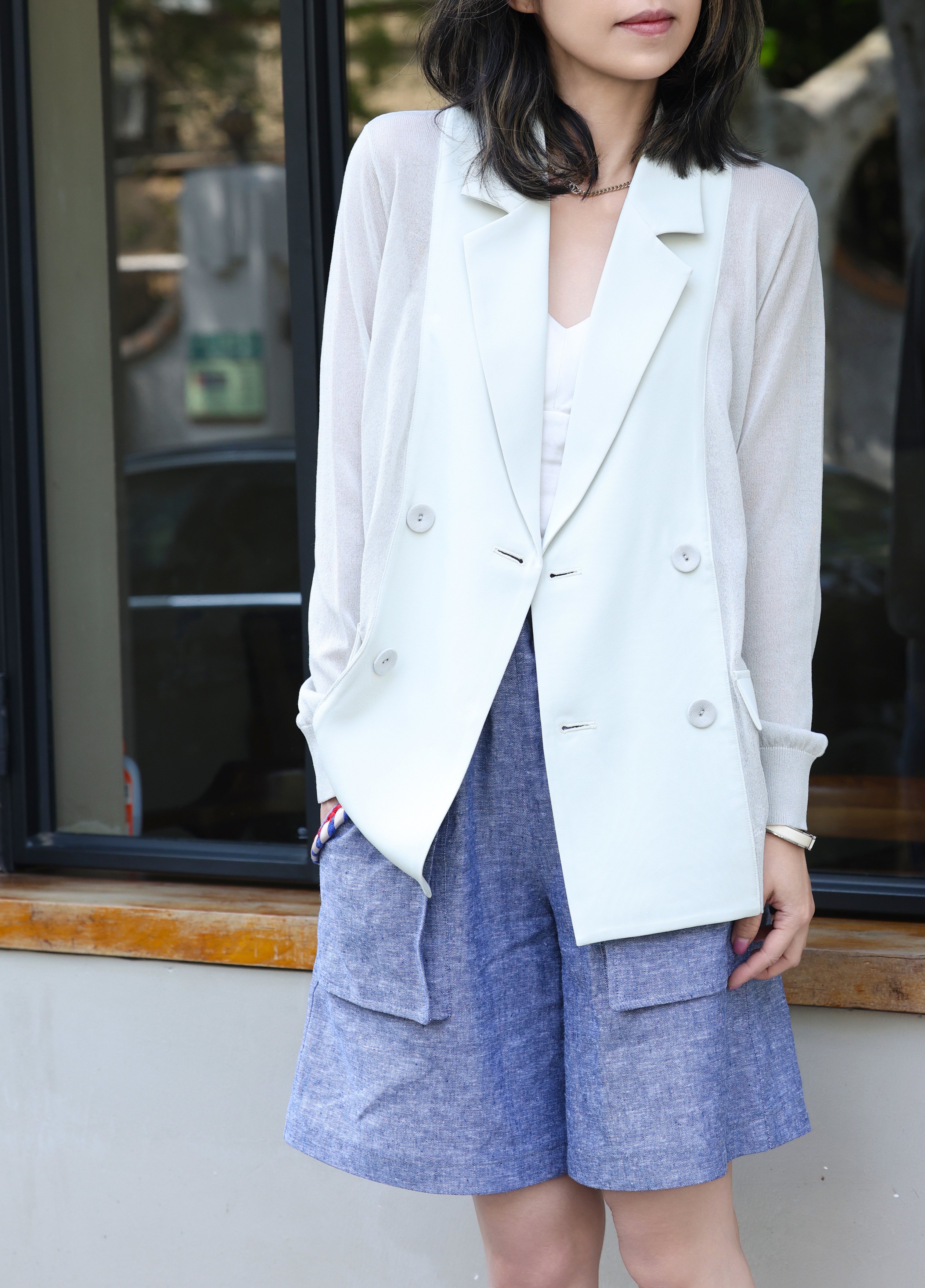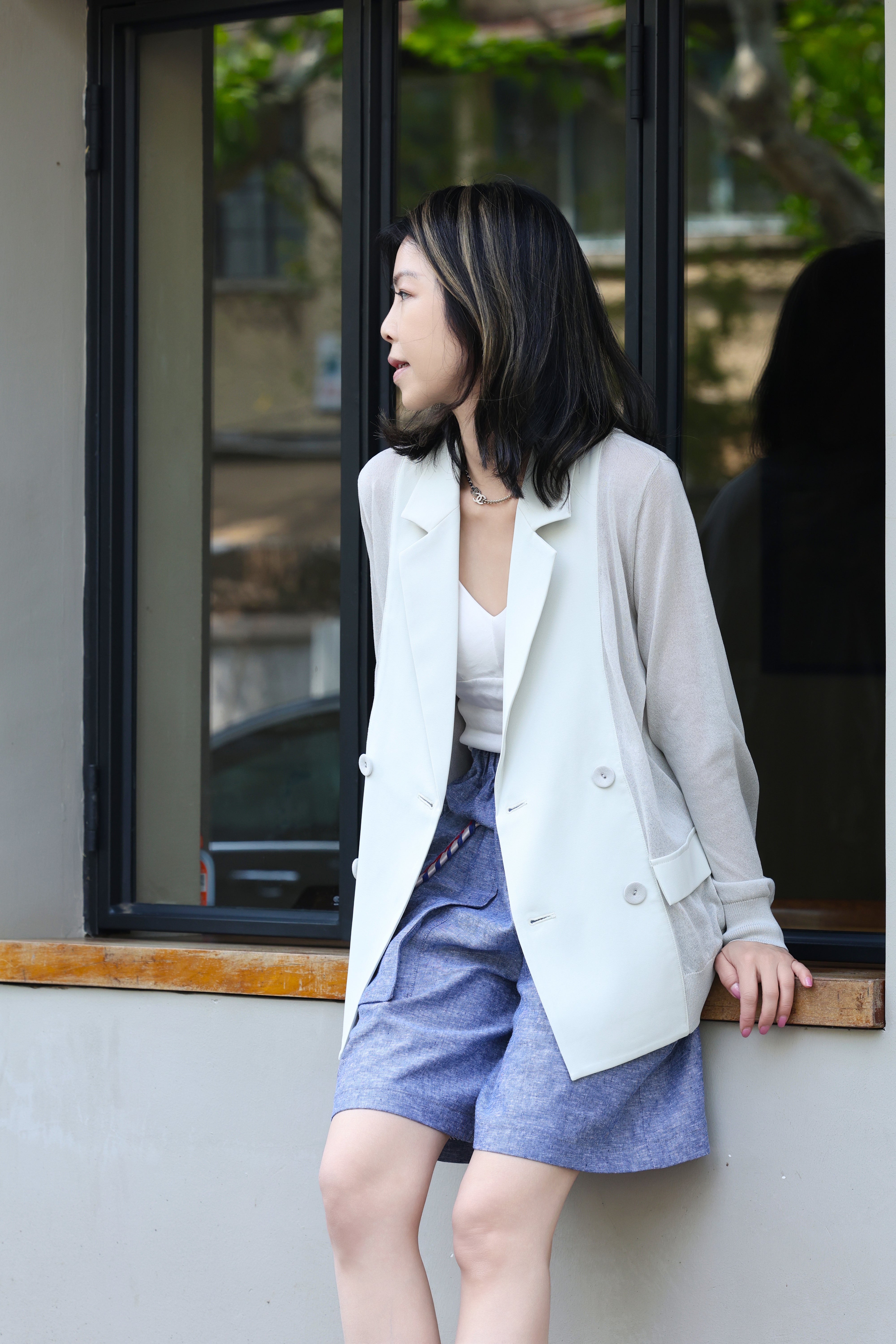 TYNVIE 轻质雪纺针织撞色西装式开衫 - 灰色
