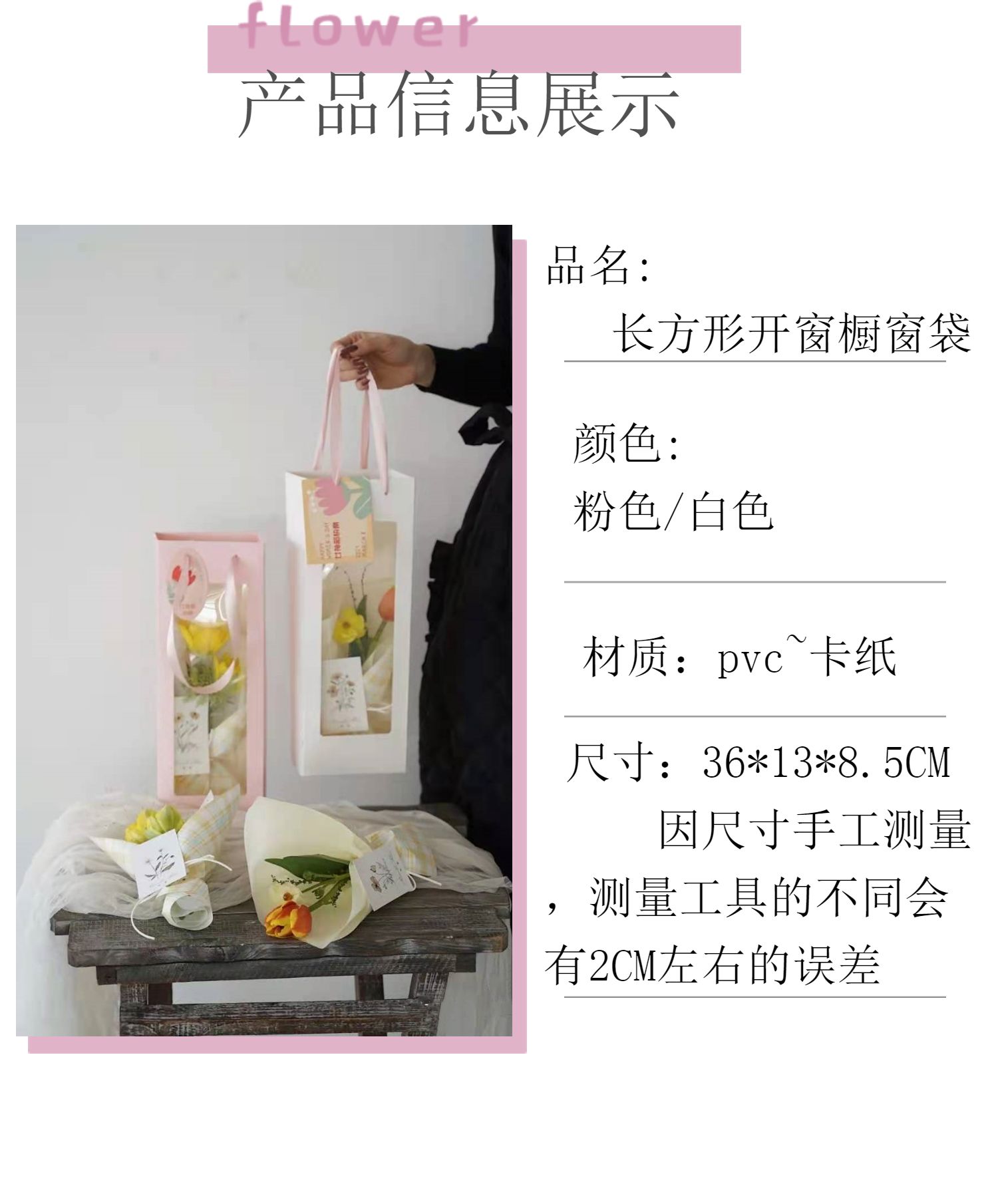 【教师节小花束】长条手提橱窗袋(10个 /包)36*13*8.5cm