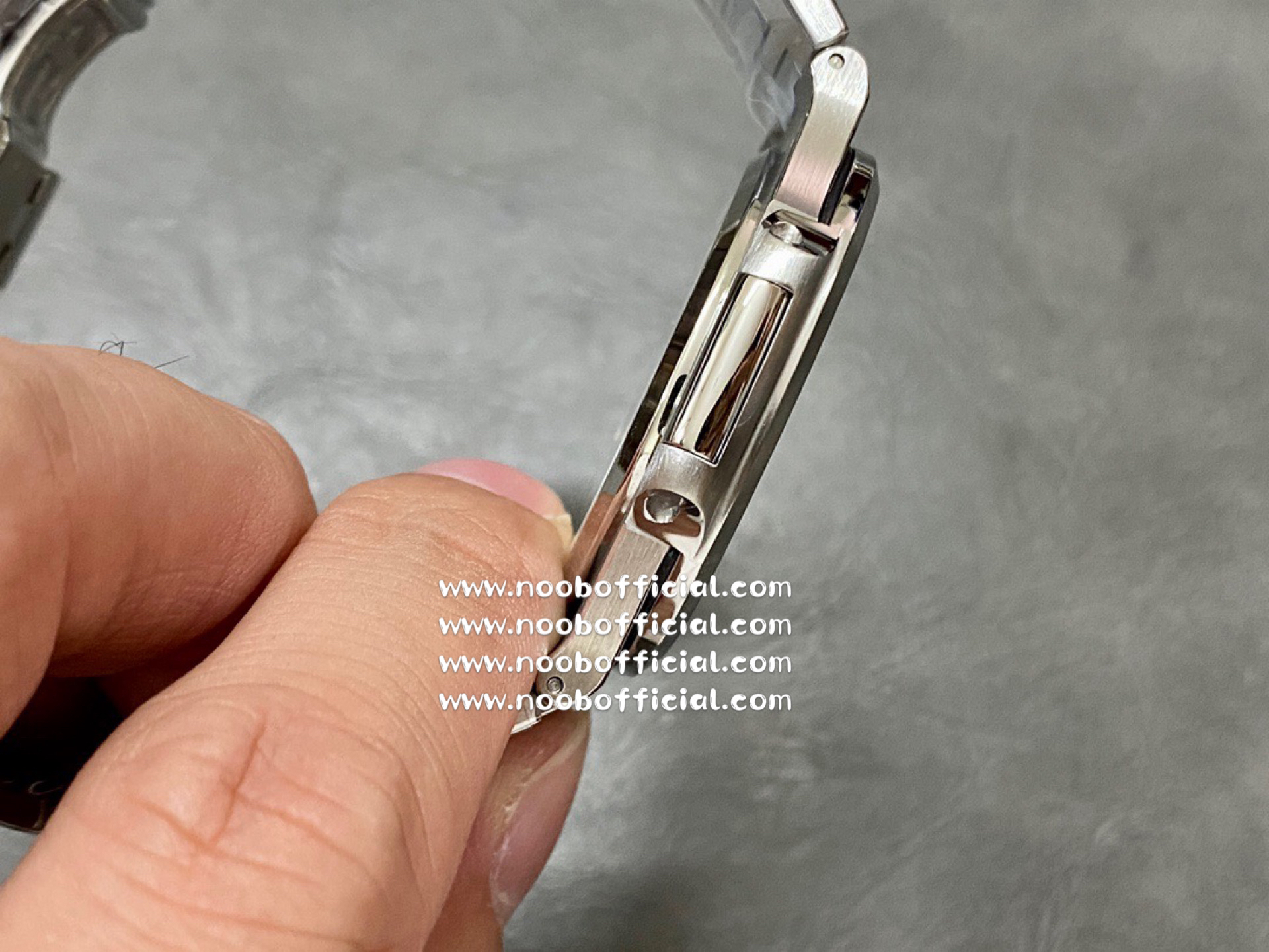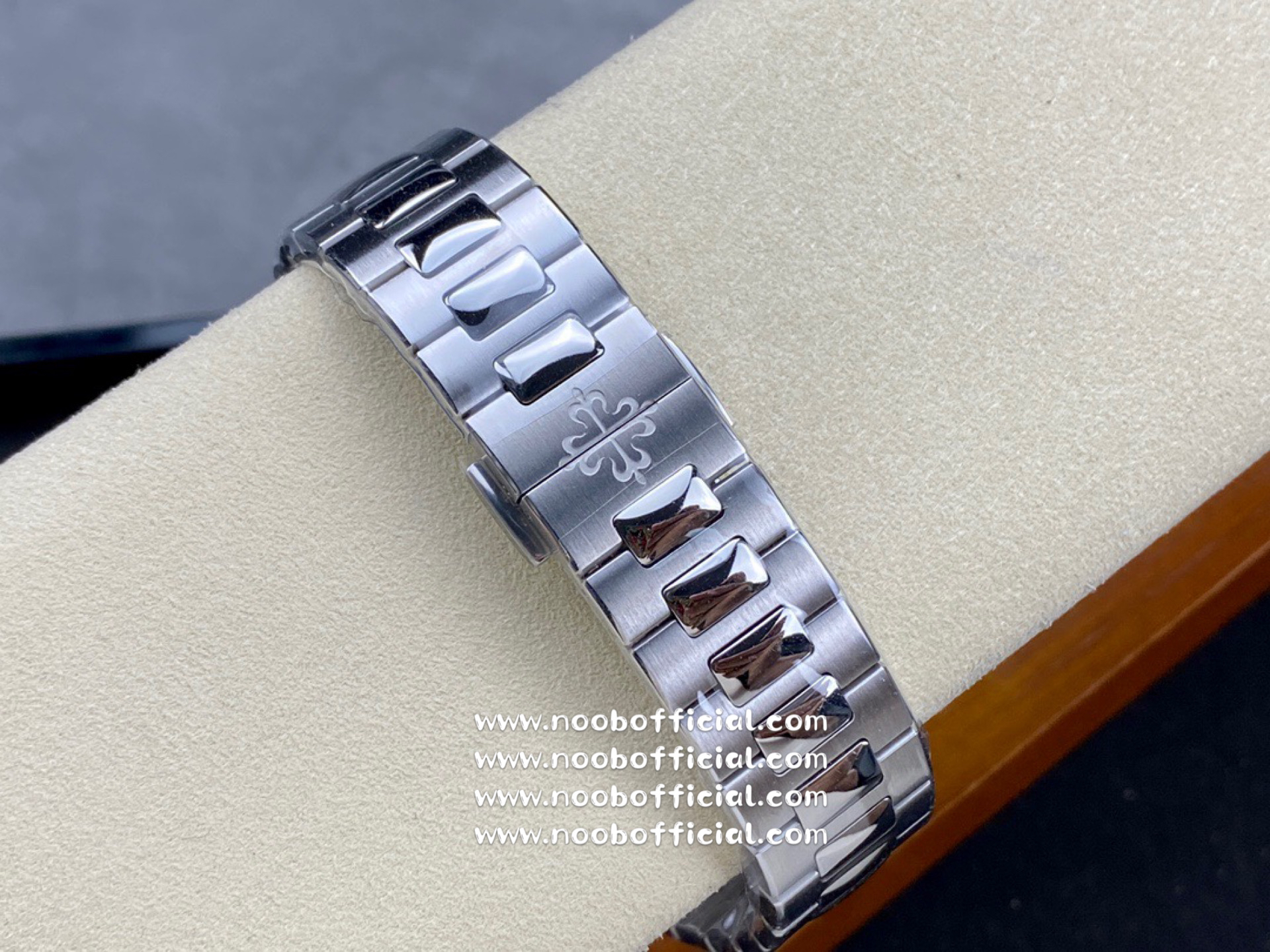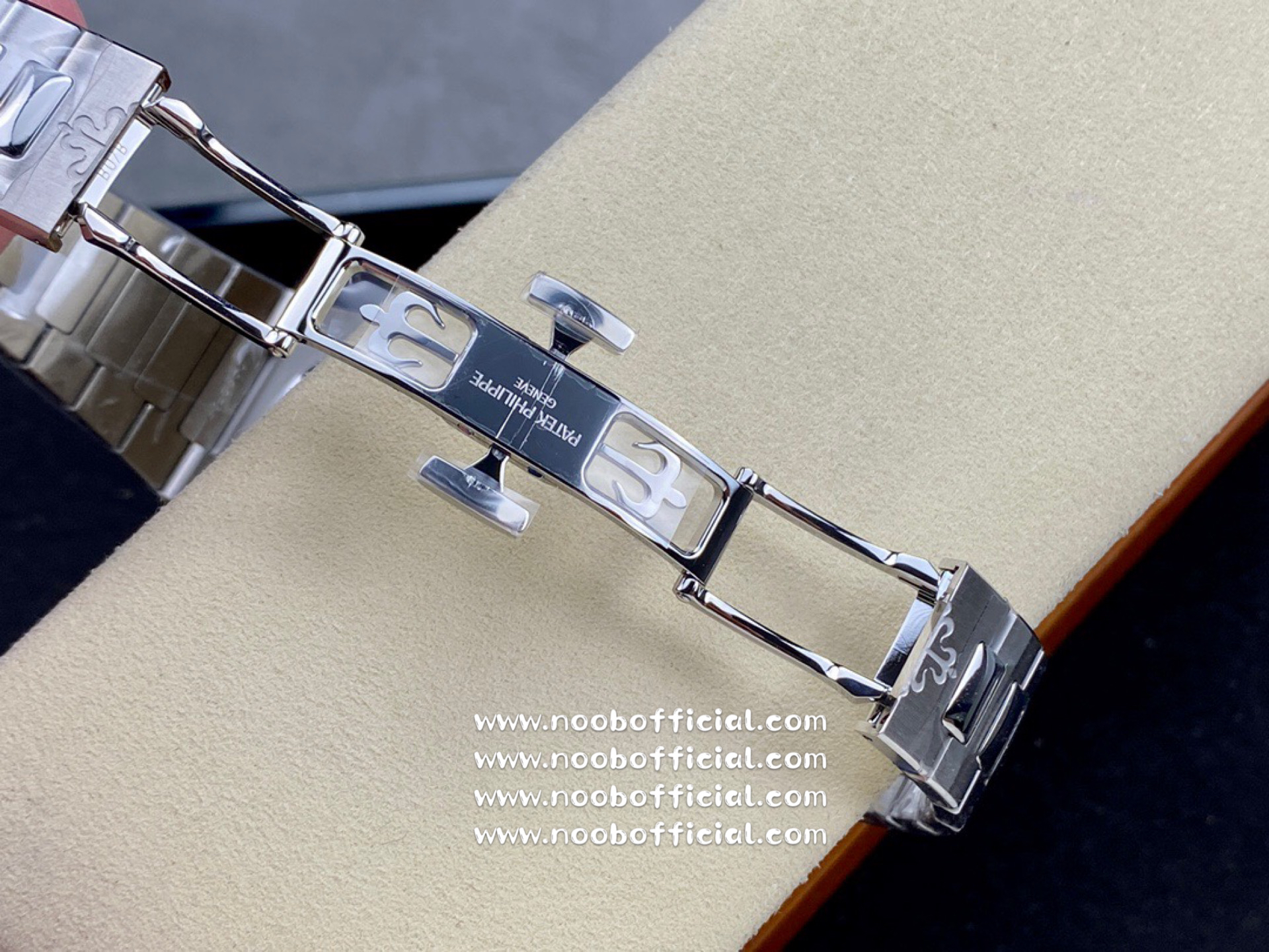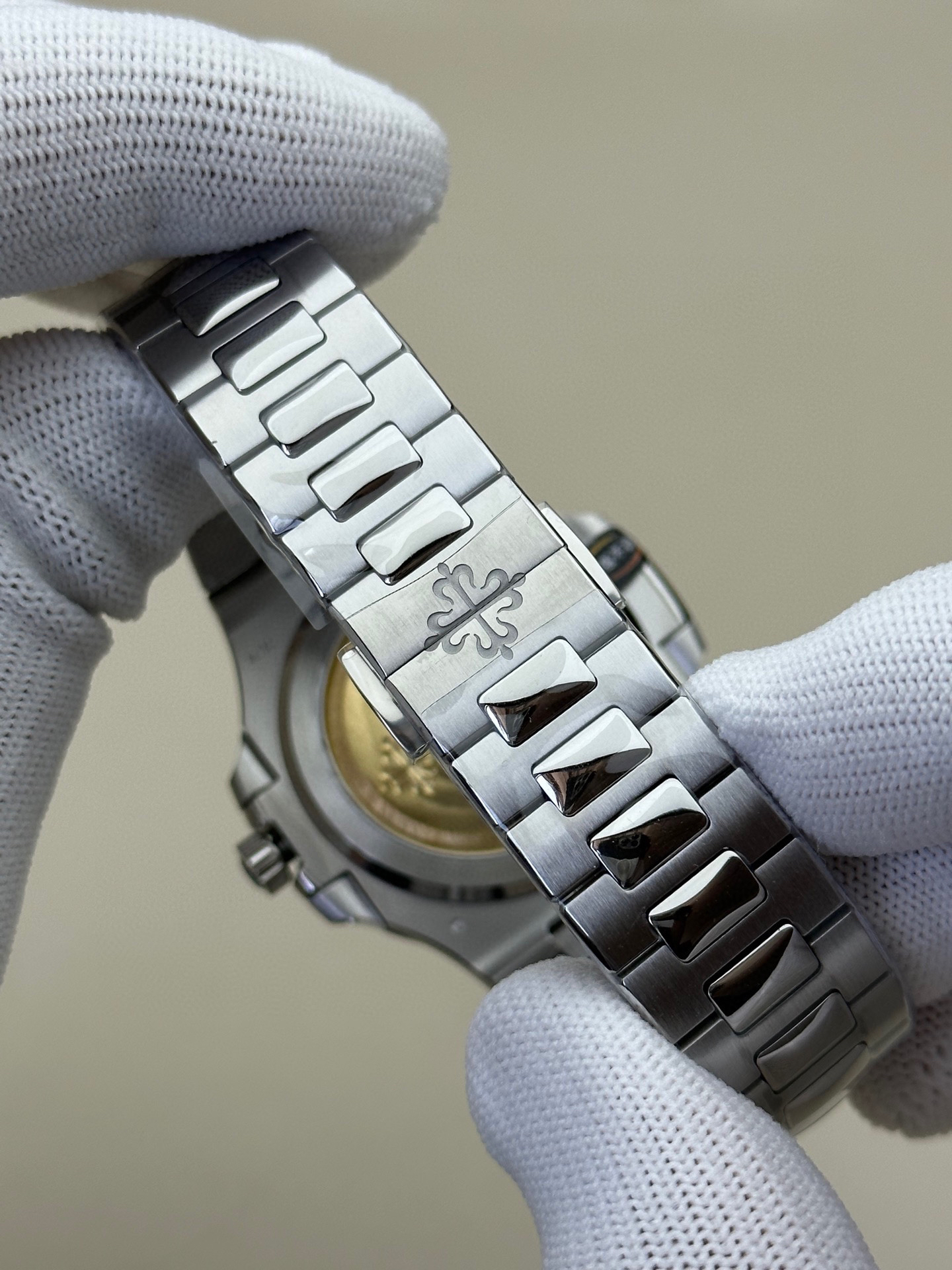 PPF全新开模的41MM尺寸,与正品一致的"两件式"表壳为一体成型的表壳与底盖,传承了PPF以往Nautilus的风格,采用锻纹修饰和抛光工艺处理,经过多层打磨修饰出来的层次分明,1:1还原了正品每个细节。最大亮点是采用PP专利安全折叠式表扣,并配备全新调节装置,操作便捷,安全可靠,可将表链延长2至4MM,日常佩戴更为舒适。