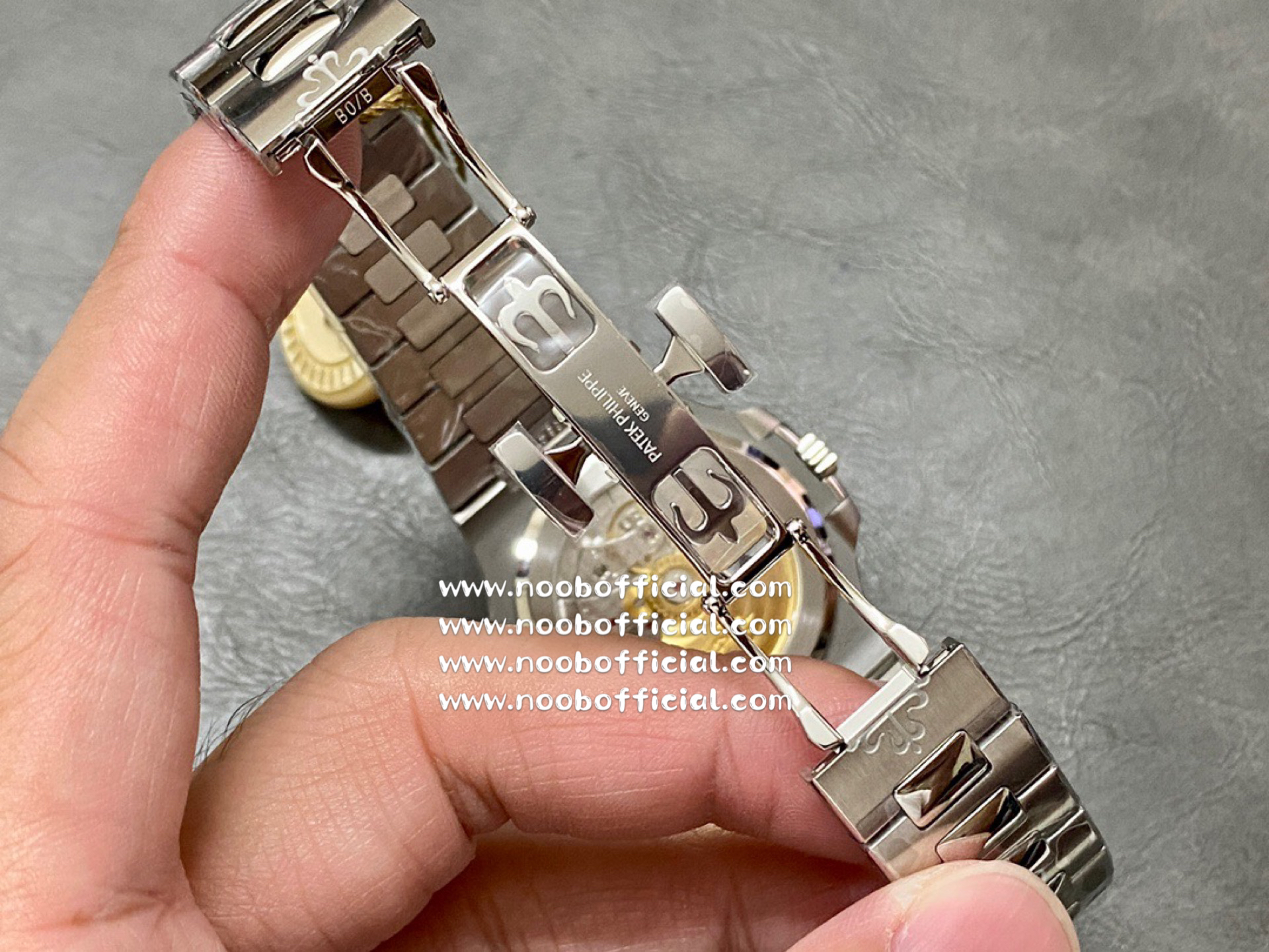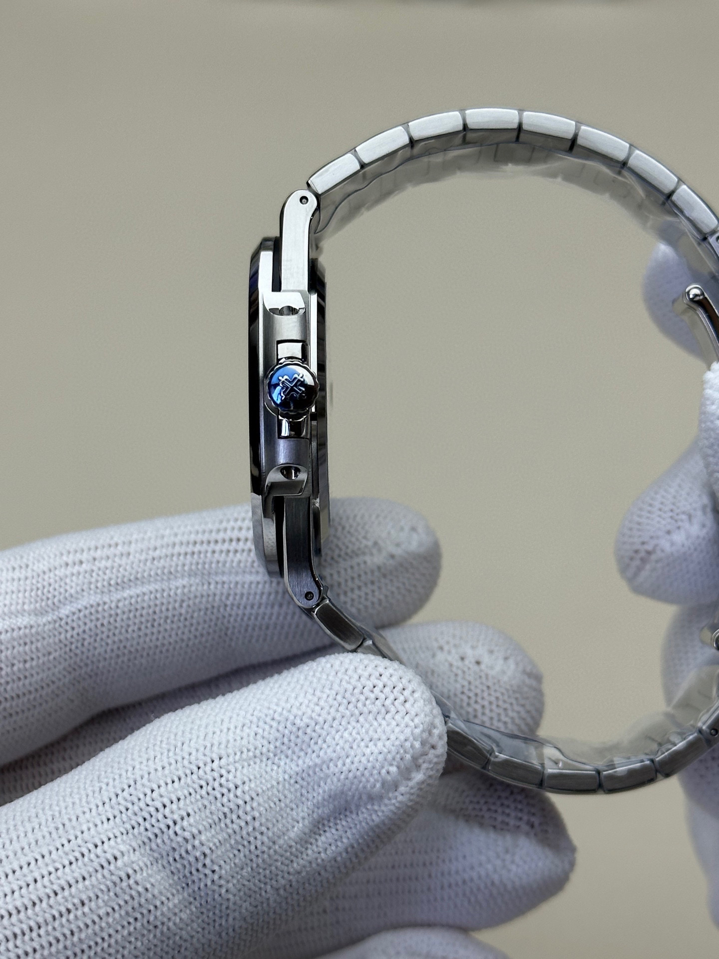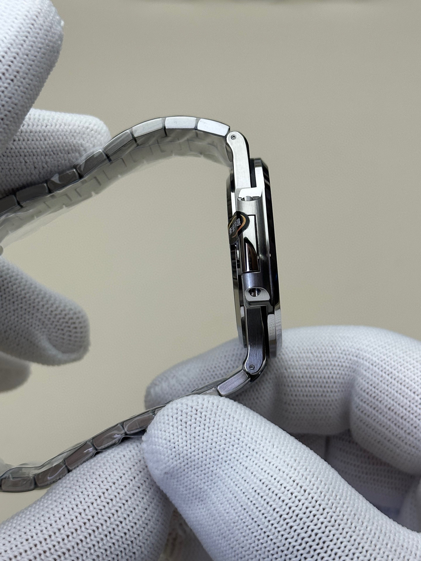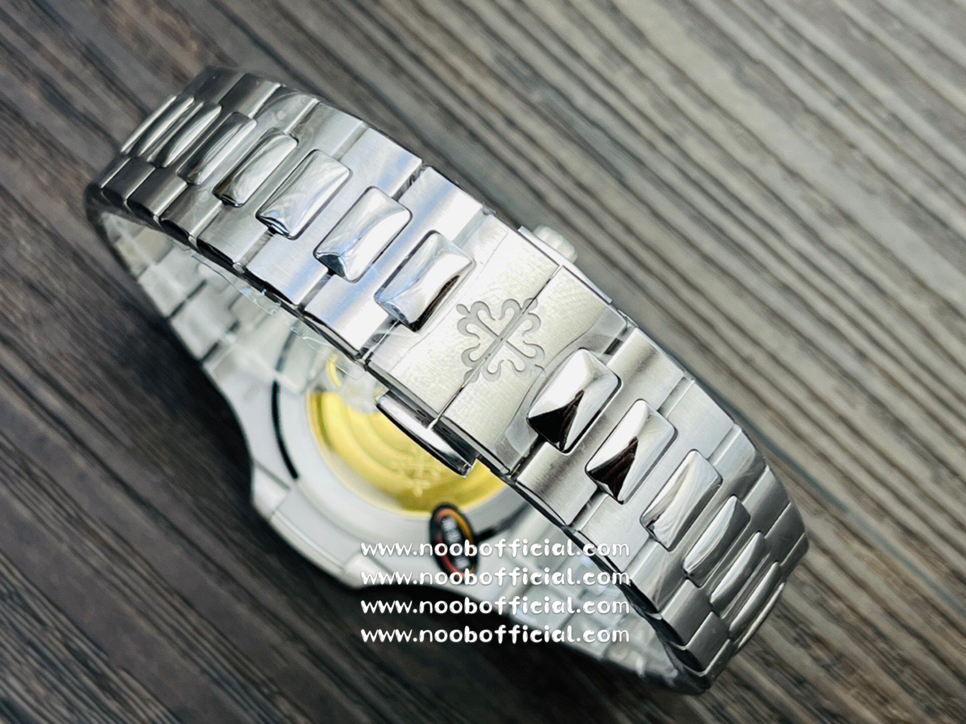 PPF全新开模的41MM尺寸,与正品一致的"两件式"表壳为一体成型的表壳与底盖,传承了PPF以往Nautilus的风格,采用锻纹修饰和抛光工艺处理,经过多层打磨修饰出来的层次分明,1:1还原了正品每个细节。最大亮点是采用PP专利安全折叠式表扣,并配备全新调节装置,操作便捷,安全可靠,可将表链延长2至4MM,日常佩戴更为舒适。