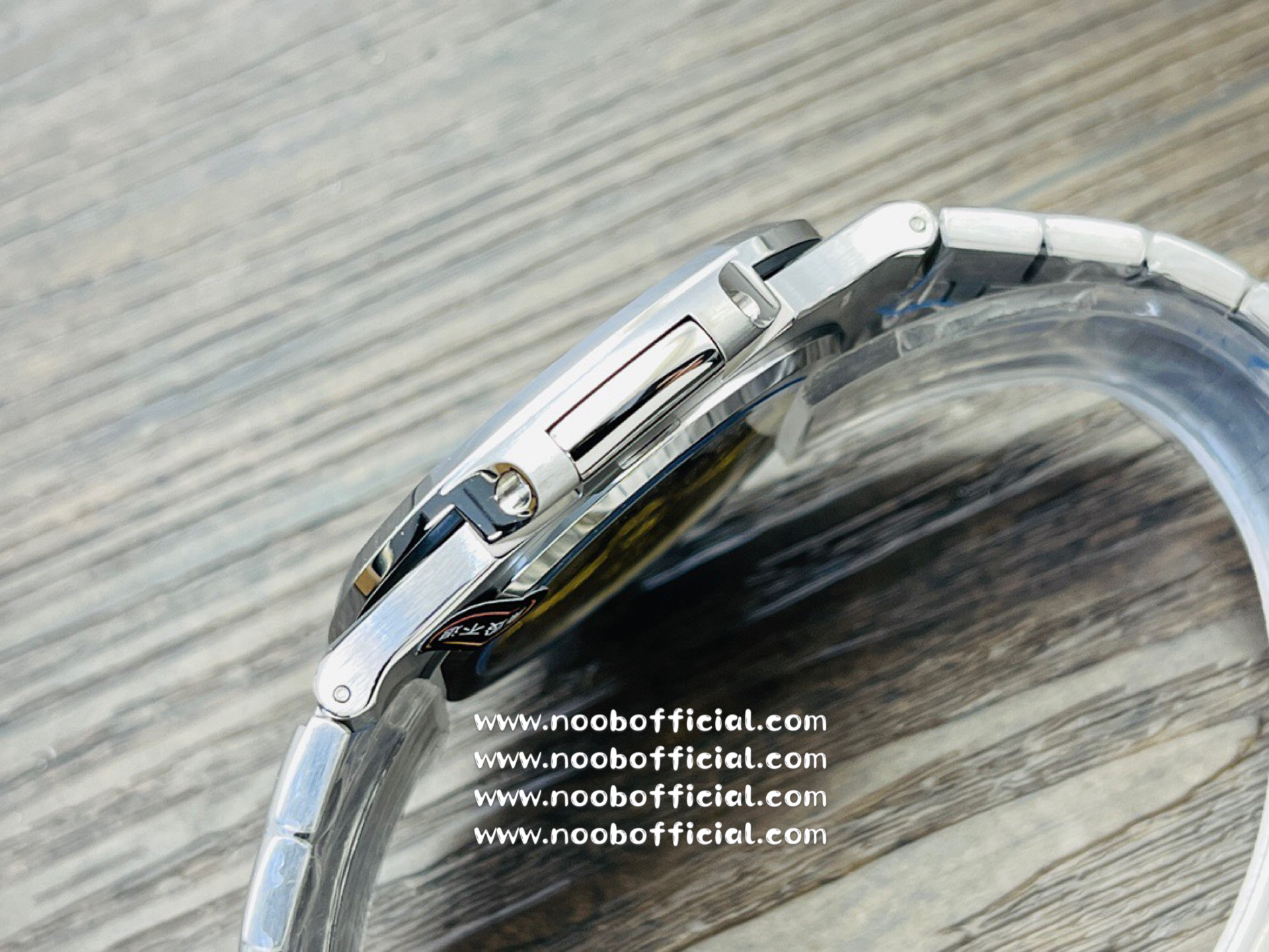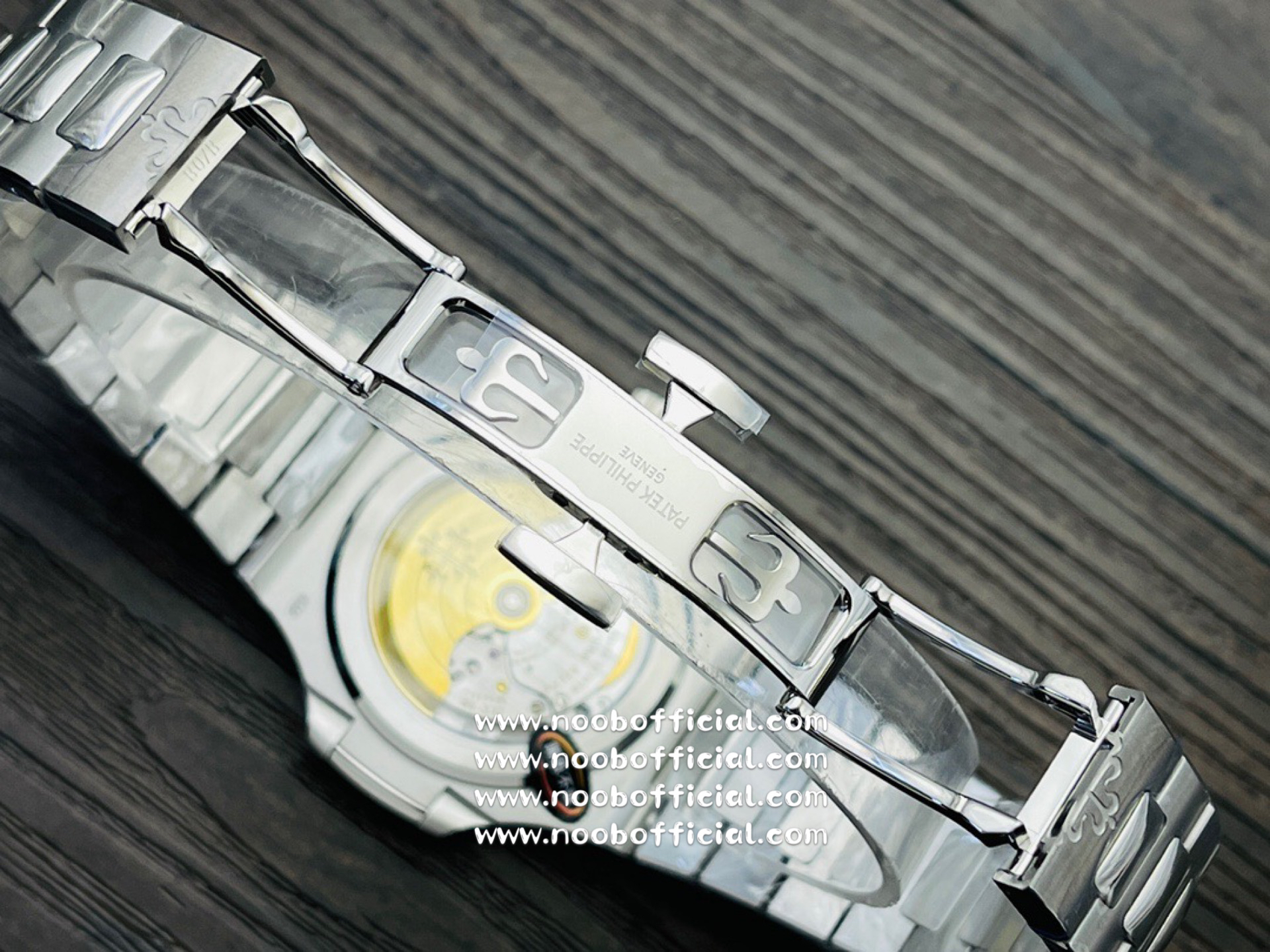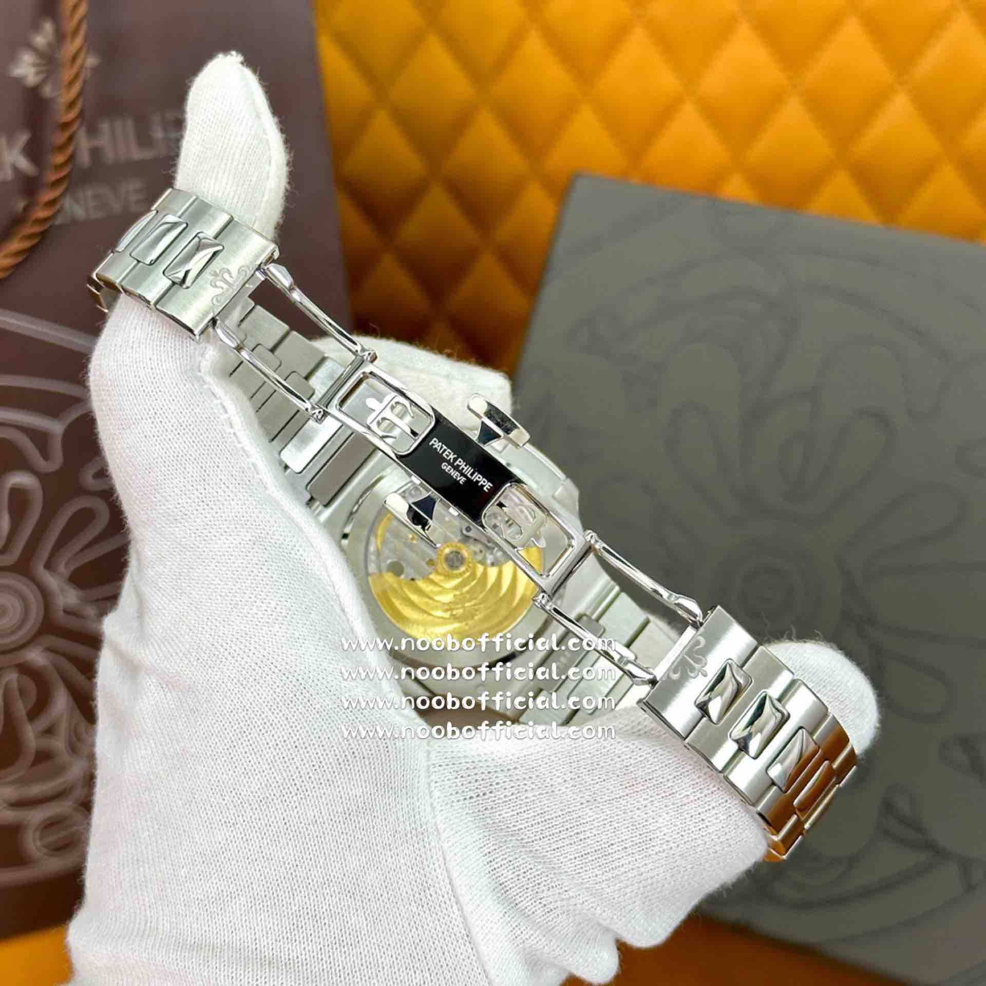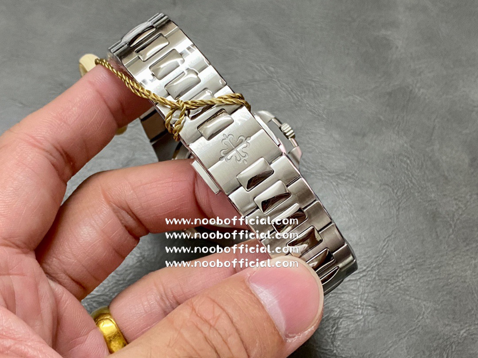 PPF全新开模的41MM尺寸,与正品一致的"两件式"表壳为一体成型的表壳与底盖,传承了PPF以往Nautilus的风格,采用锻纹修饰和抛光工艺处理,经过多层打磨修饰出来的层次分明,1:1还原了正品每个细节。最大亮点是采用PP专利安全折叠式表扣,并配备全新调节装置,操作便捷,安全可靠,可将表链延长2至4MM,日常佩戴更为舒适。