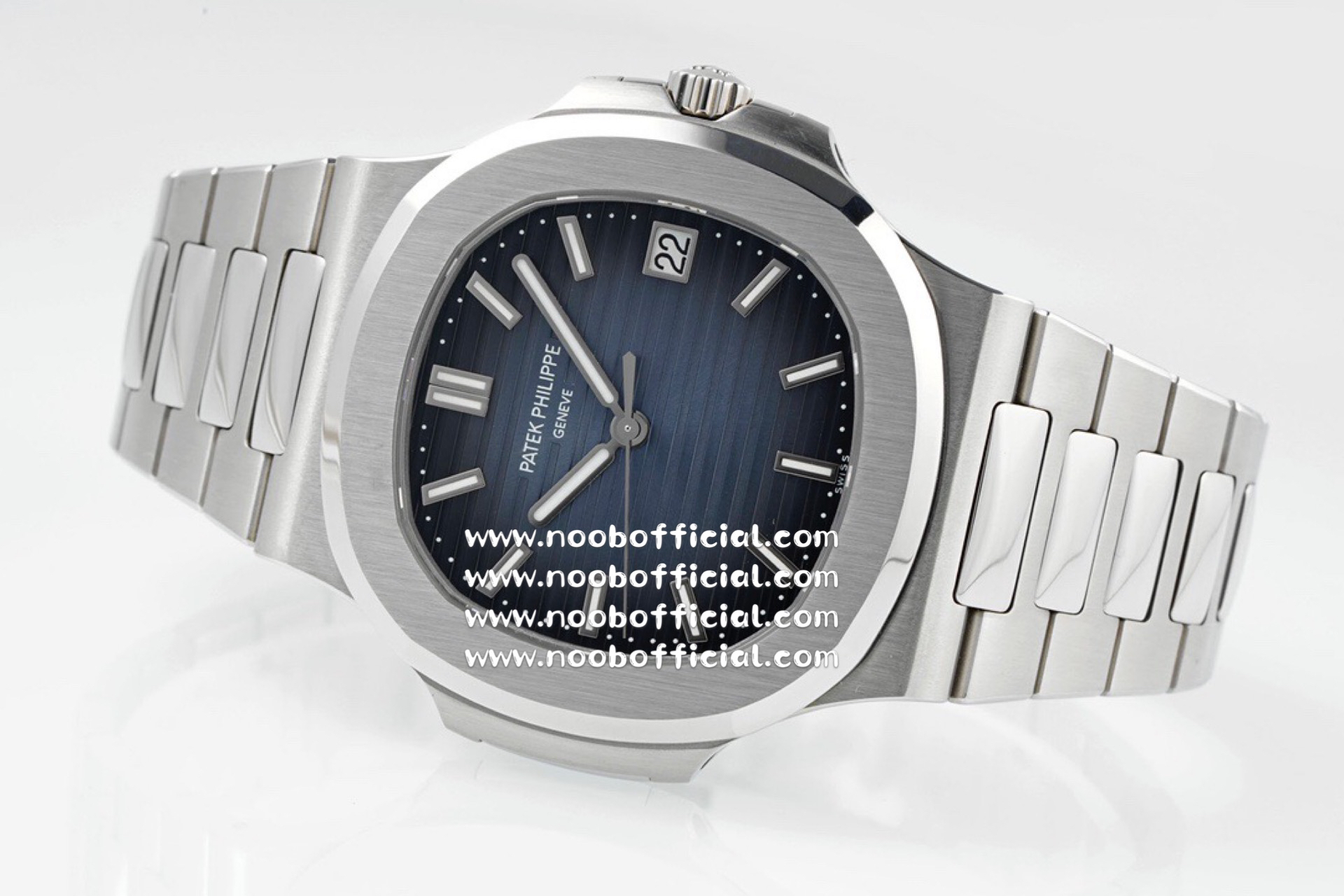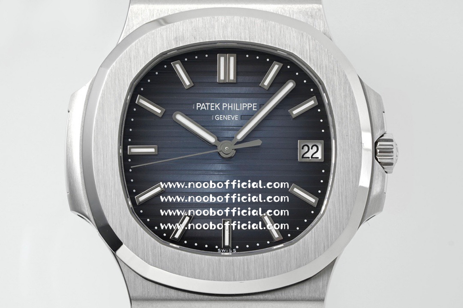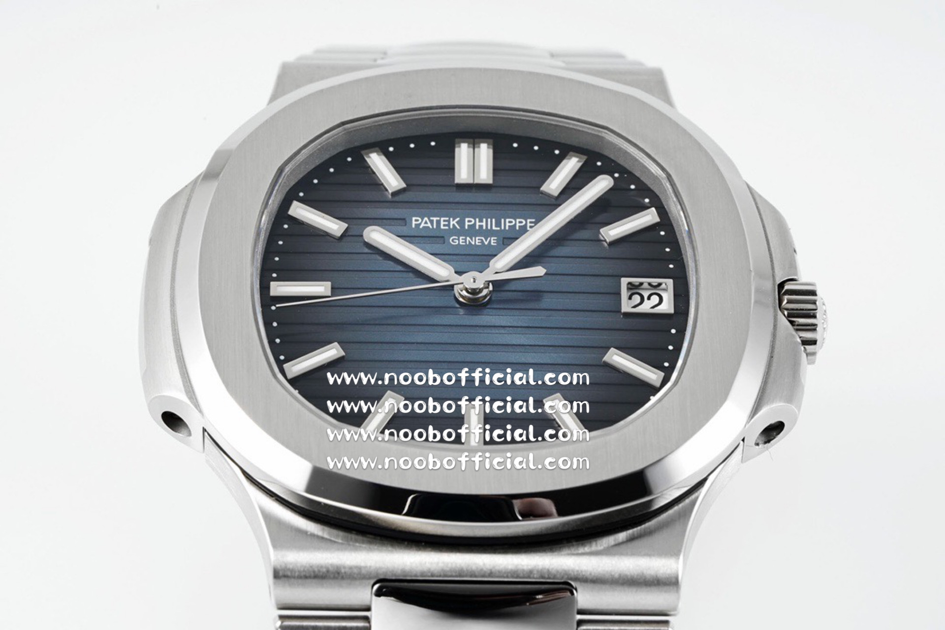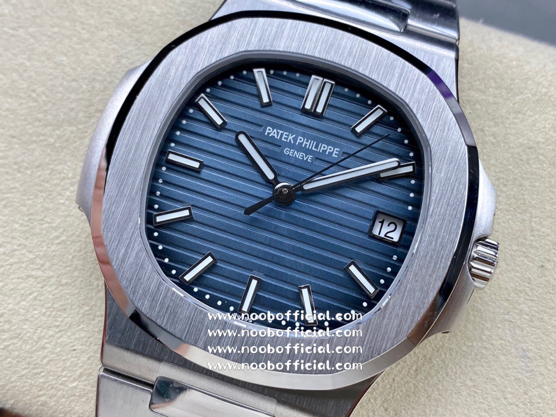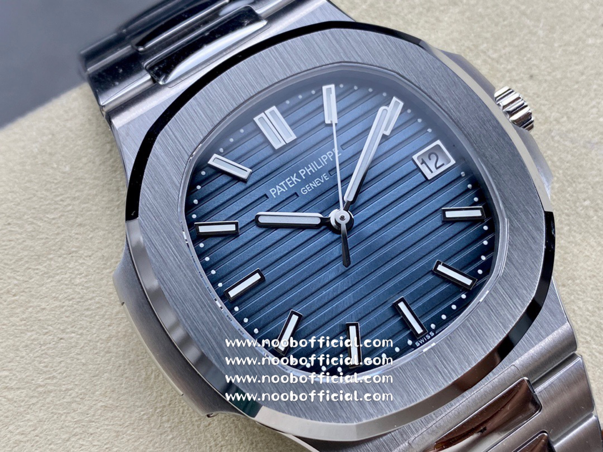5811 G搭配蓝色日辉纹表盘,表盘边缘呈黑色渐变效果。与5711不同的是水平横纹法浮雕图案在LOGO处进行了截断,而且横纹的宽窄也有细微变化。鹦鹉螺标志性的覆荧光徐层的金质立体时标和棒状指针则升级了超级蓝色夜光,3点钟位置的日历窗口增加了金属边框。