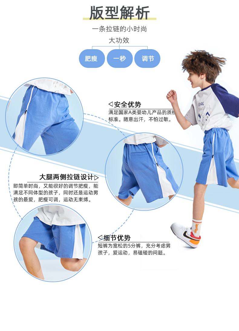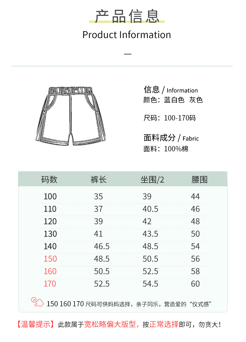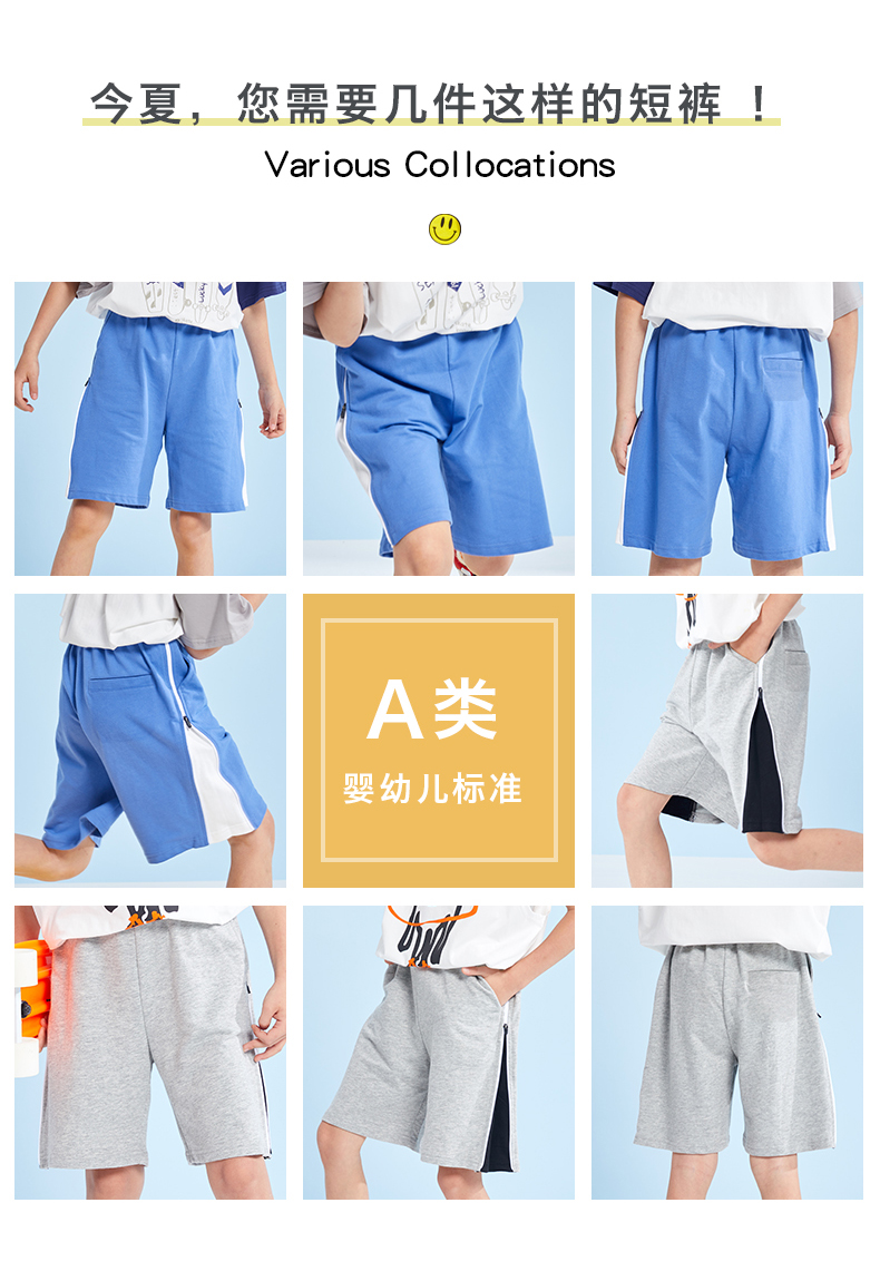 【抄底价清仓】龙之涵 儿童侧缝撞色运动短裤 中大童男款五分短裤 婴幼儿A类标准