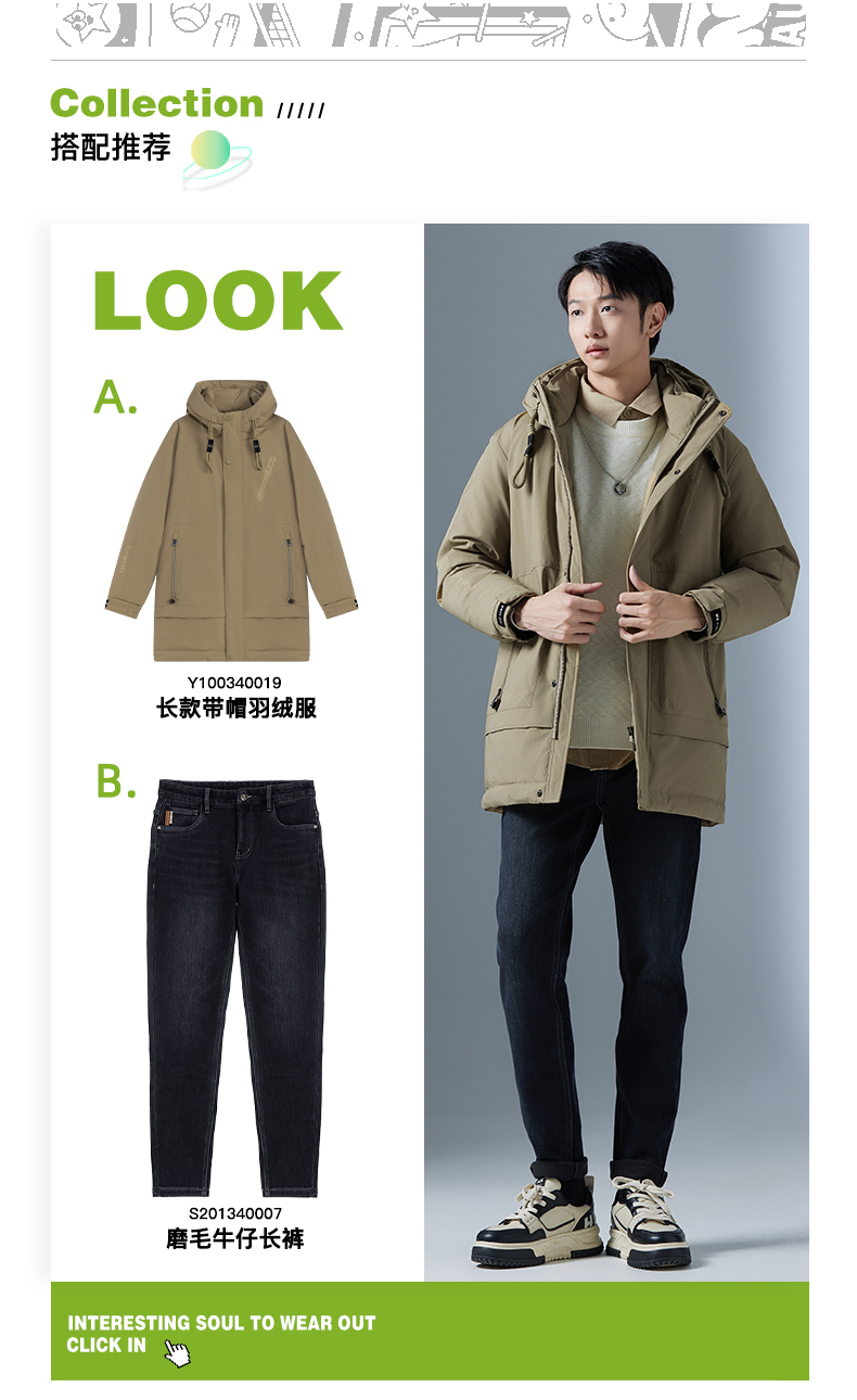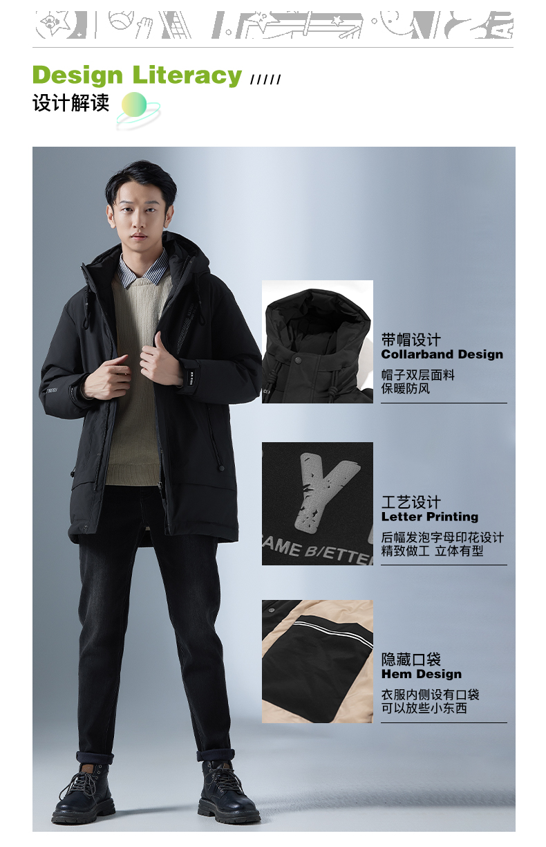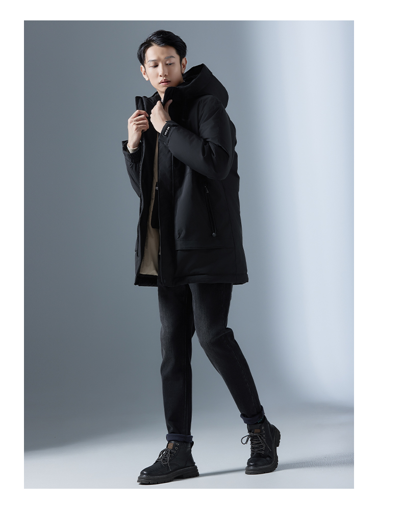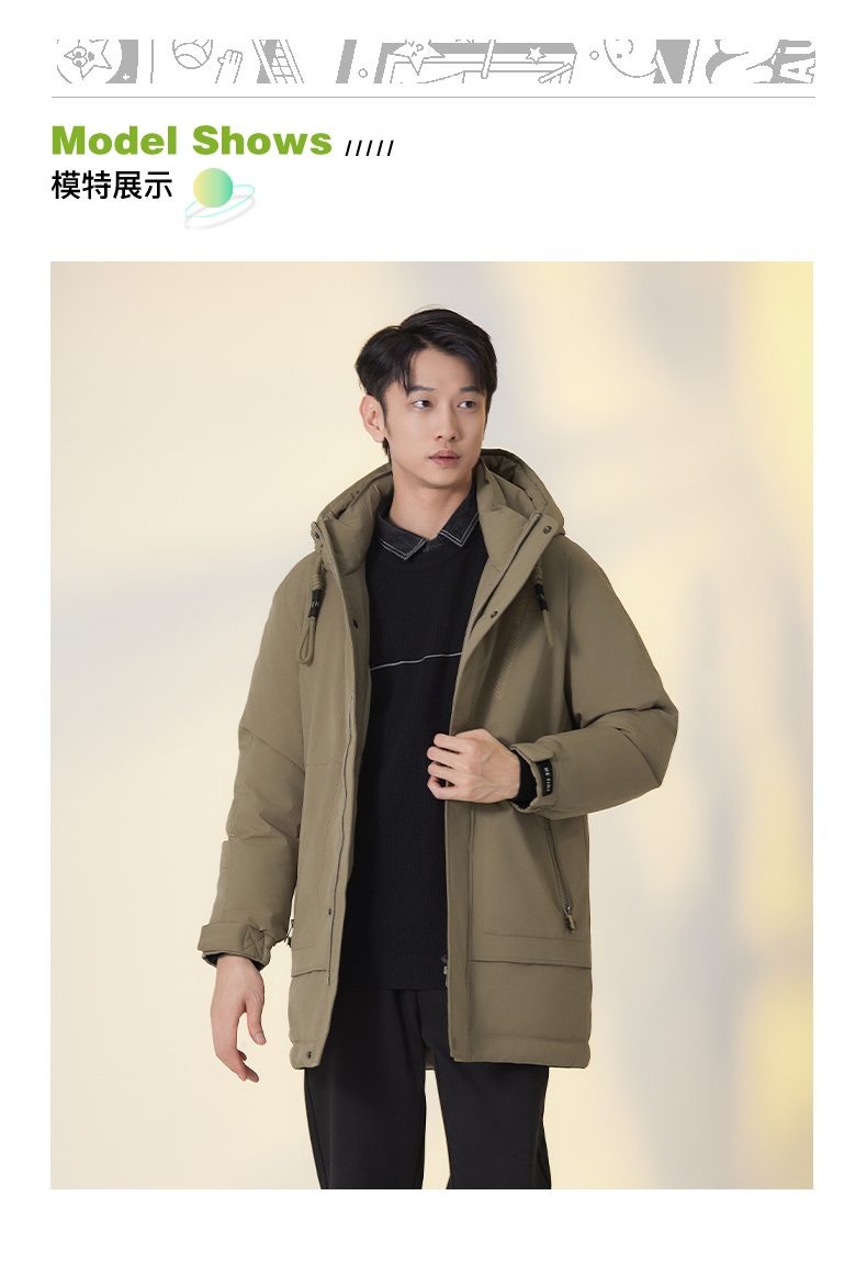 【马国明同款】HXTIDE 冬季长款带帽羽绒服新国标90绒/Y100340019101/02