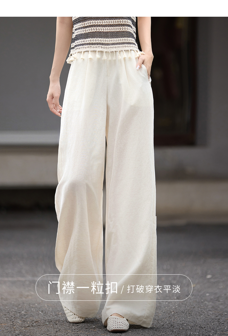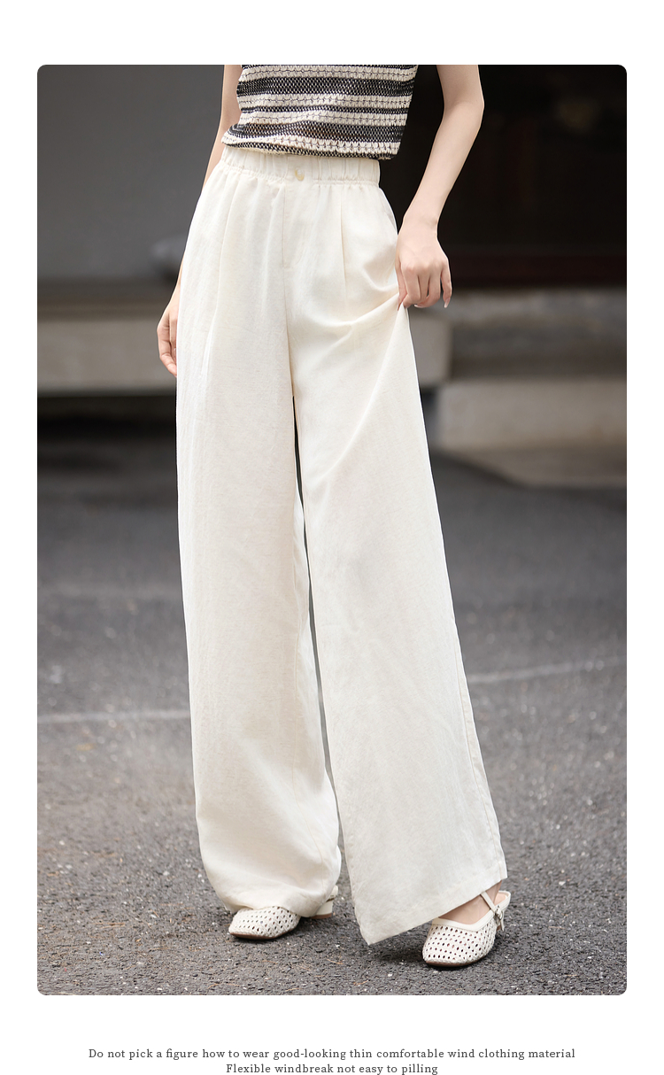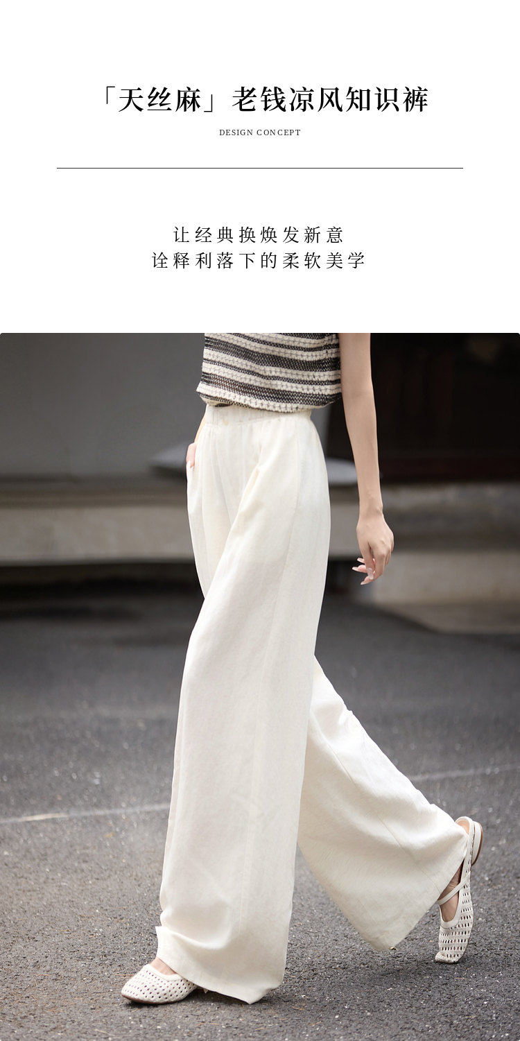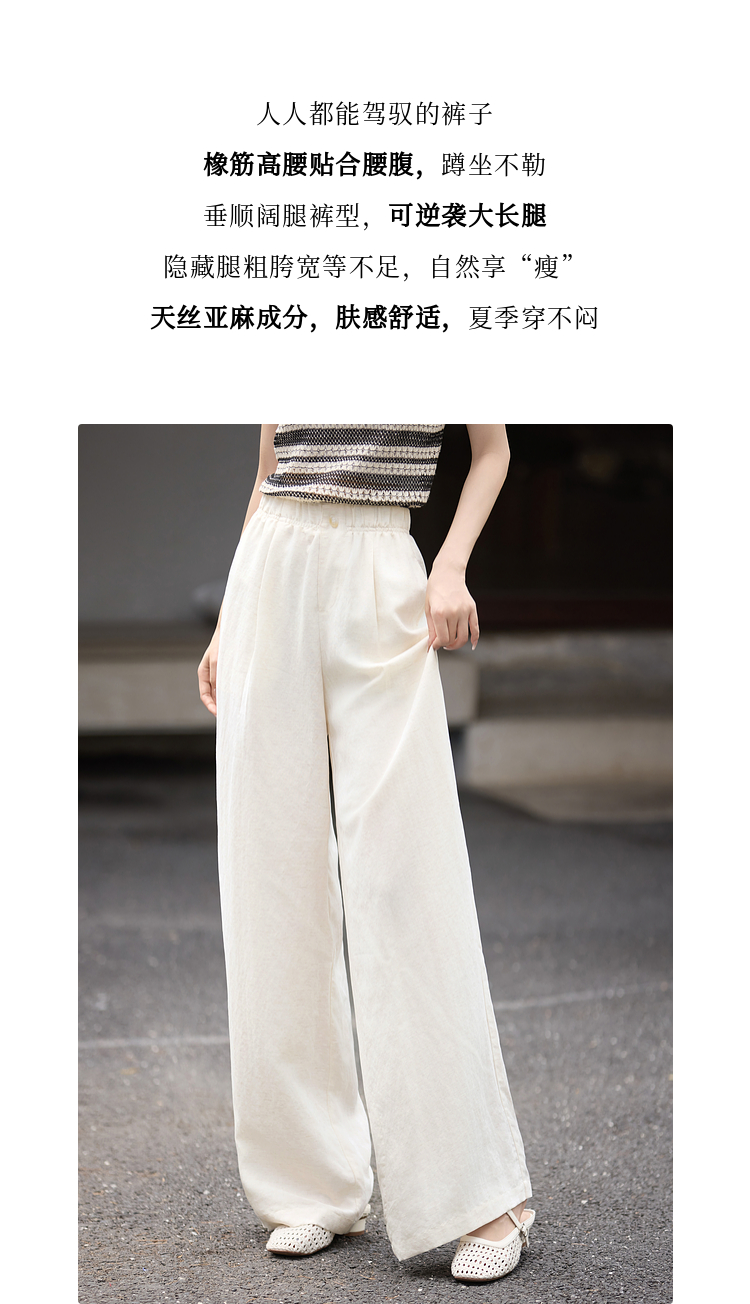 【07/30新品6.5折】熙世界通勤天丝亚麻阔腿裤女夏季薄款高腰宽松休闲直筒白色长裤子