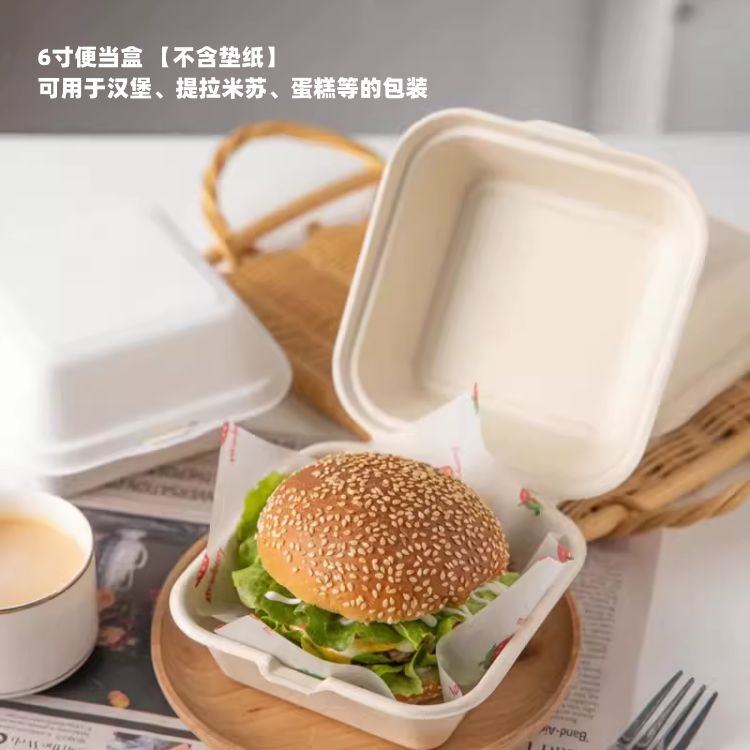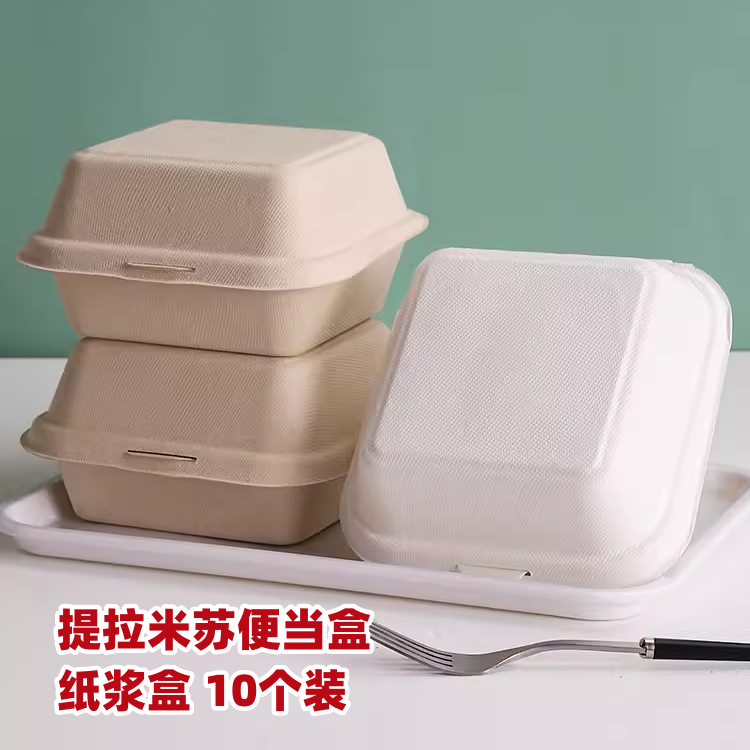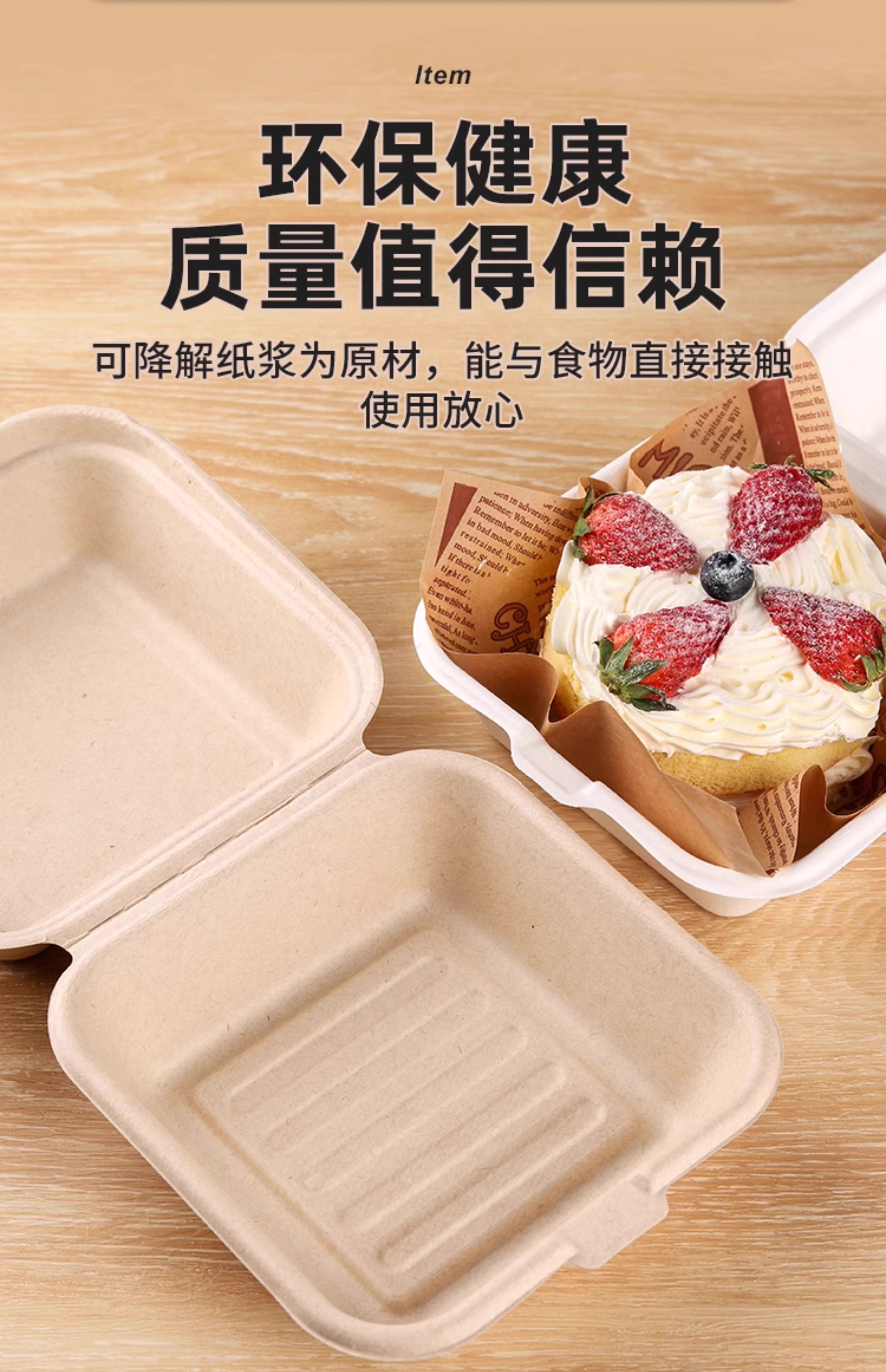 6寸便当盒纸浆盒 提拉米苏盒汉堡蛋糕打包盒 白色/原色包装盒