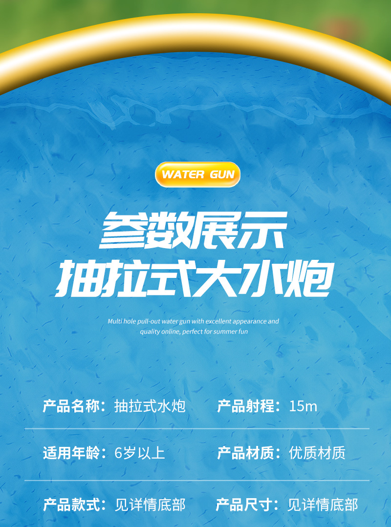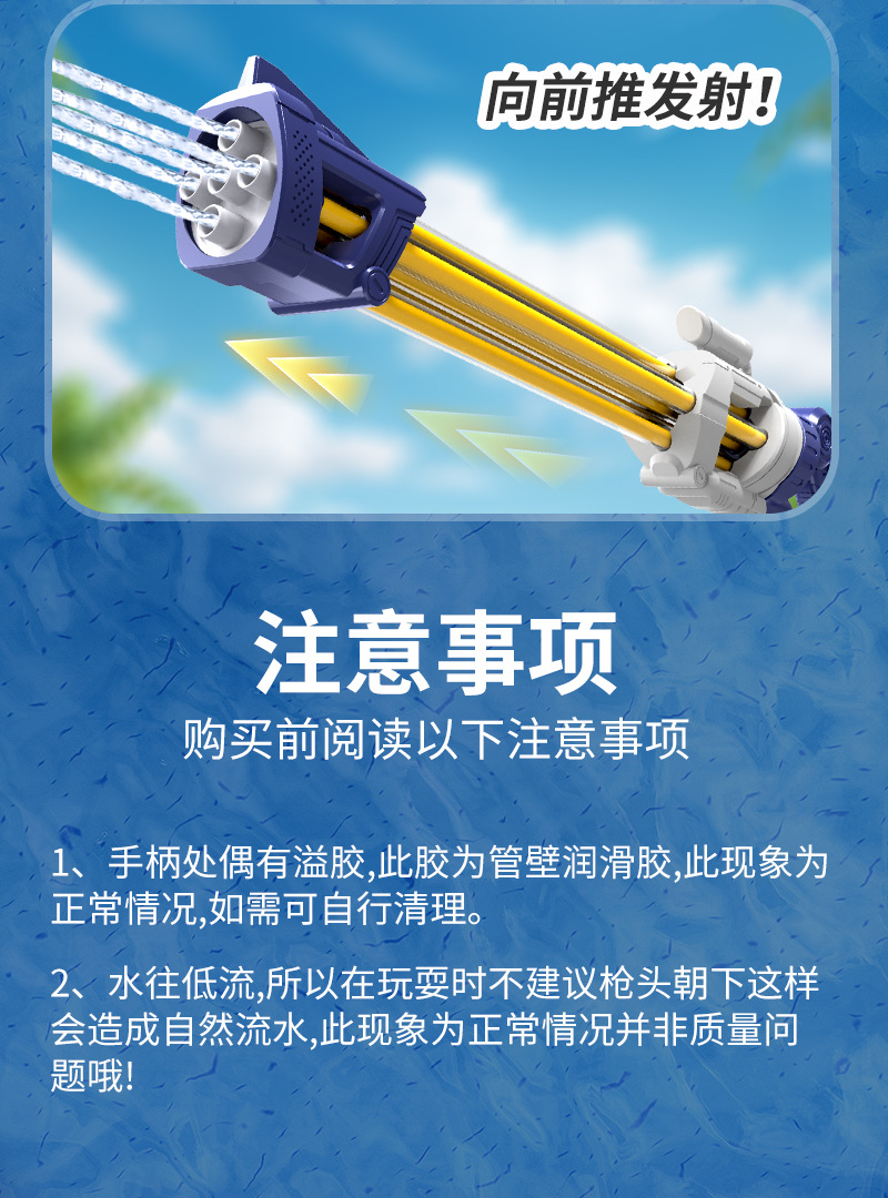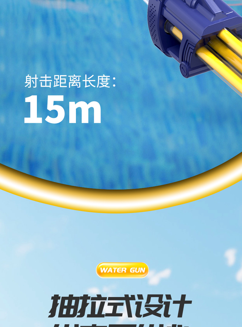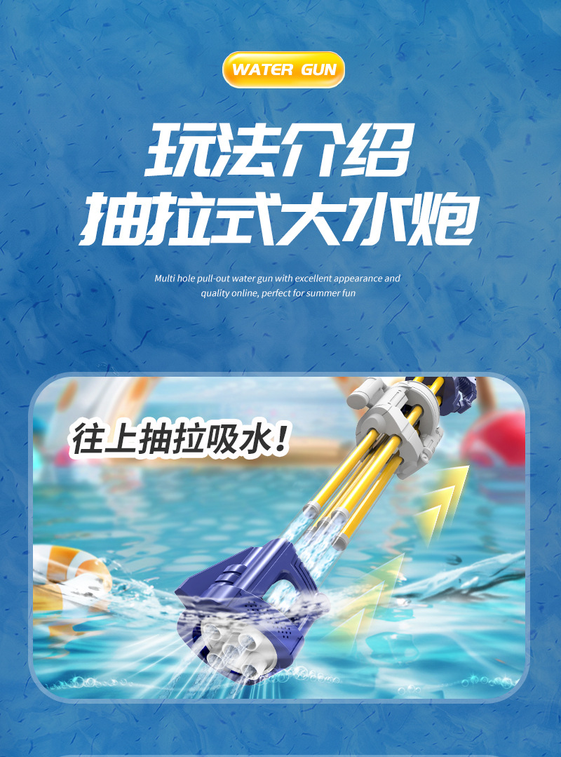 「5管加特林水炮」抽拉水炮儿童玩具大容量抽拉式水枪漂流戏水呲滋水枪水上乐园装备