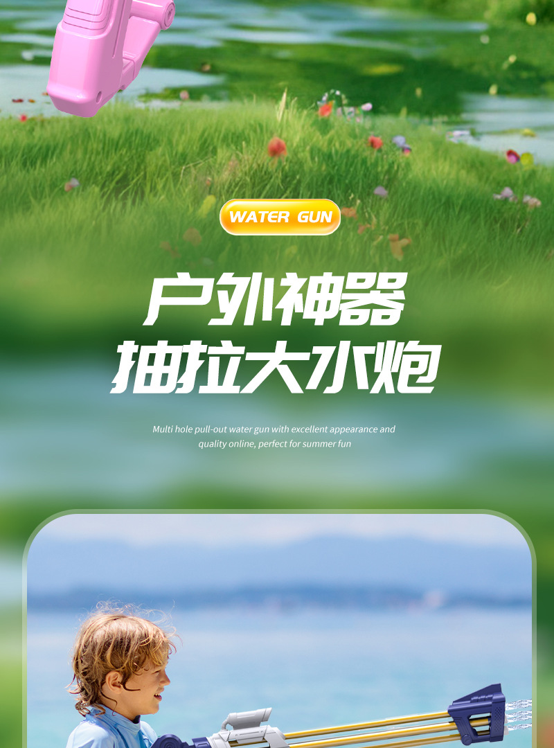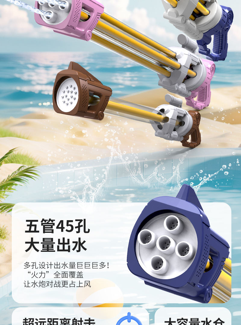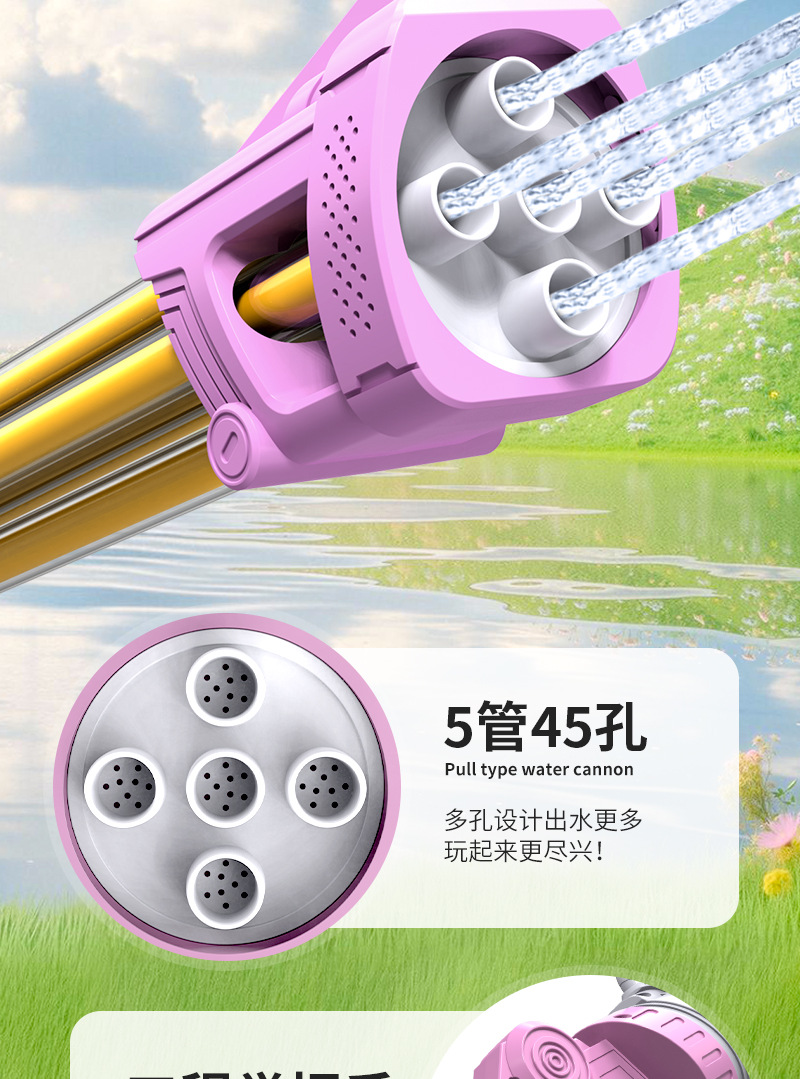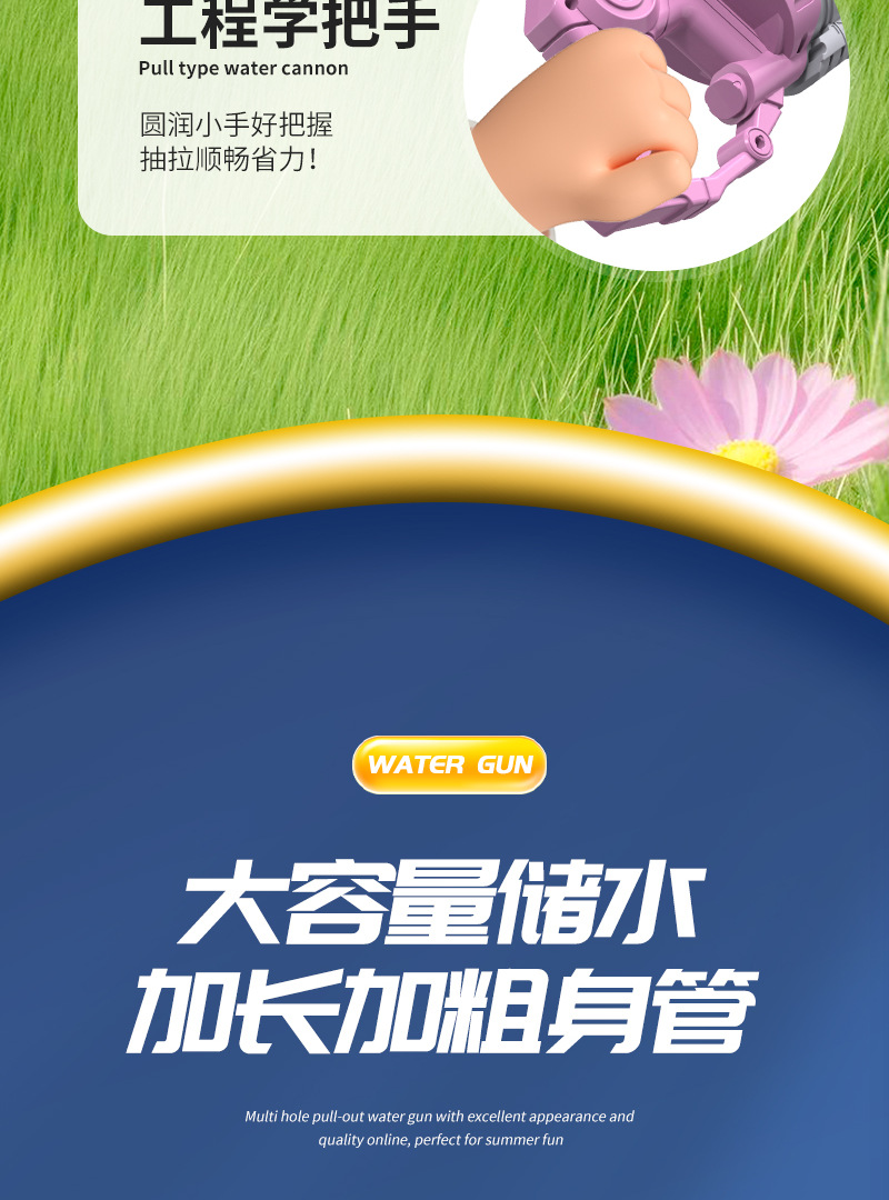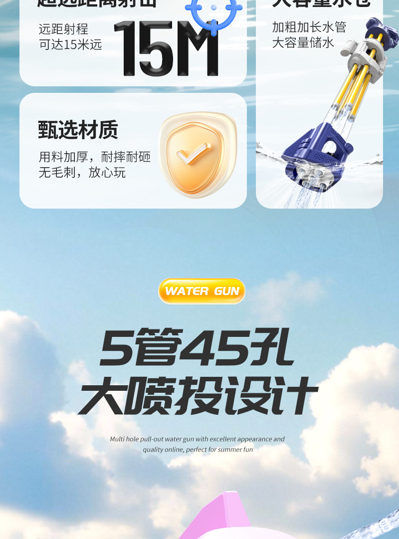 「5管加特林水炮」抽拉水炮儿童玩具大容量抽拉式水枪漂流戏水呲滋水枪水上乐园装备