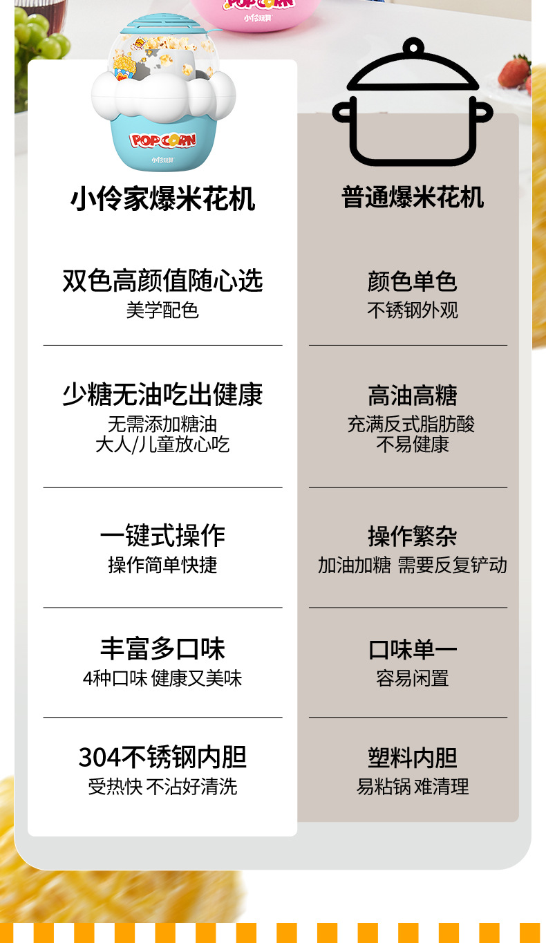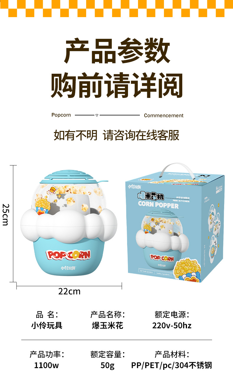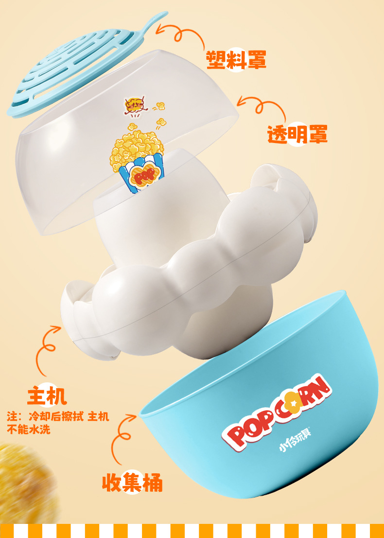 【趣玩爆米 5分钟可做一盘爆米花】小伶玩具儿童可爱迷你爆米花 家用小型电动吹风式膨化机 爆谷过家家玩具