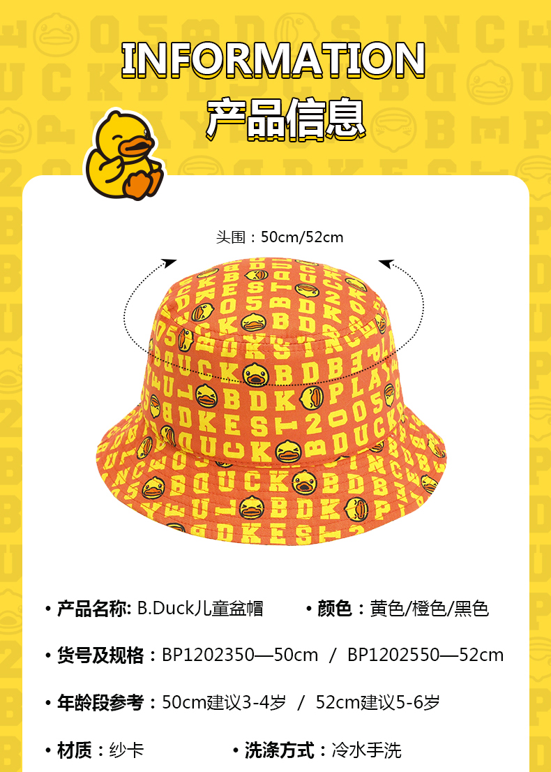 【专柜同款精品】B.Duck儿童渔夫帽防晒帽50cm