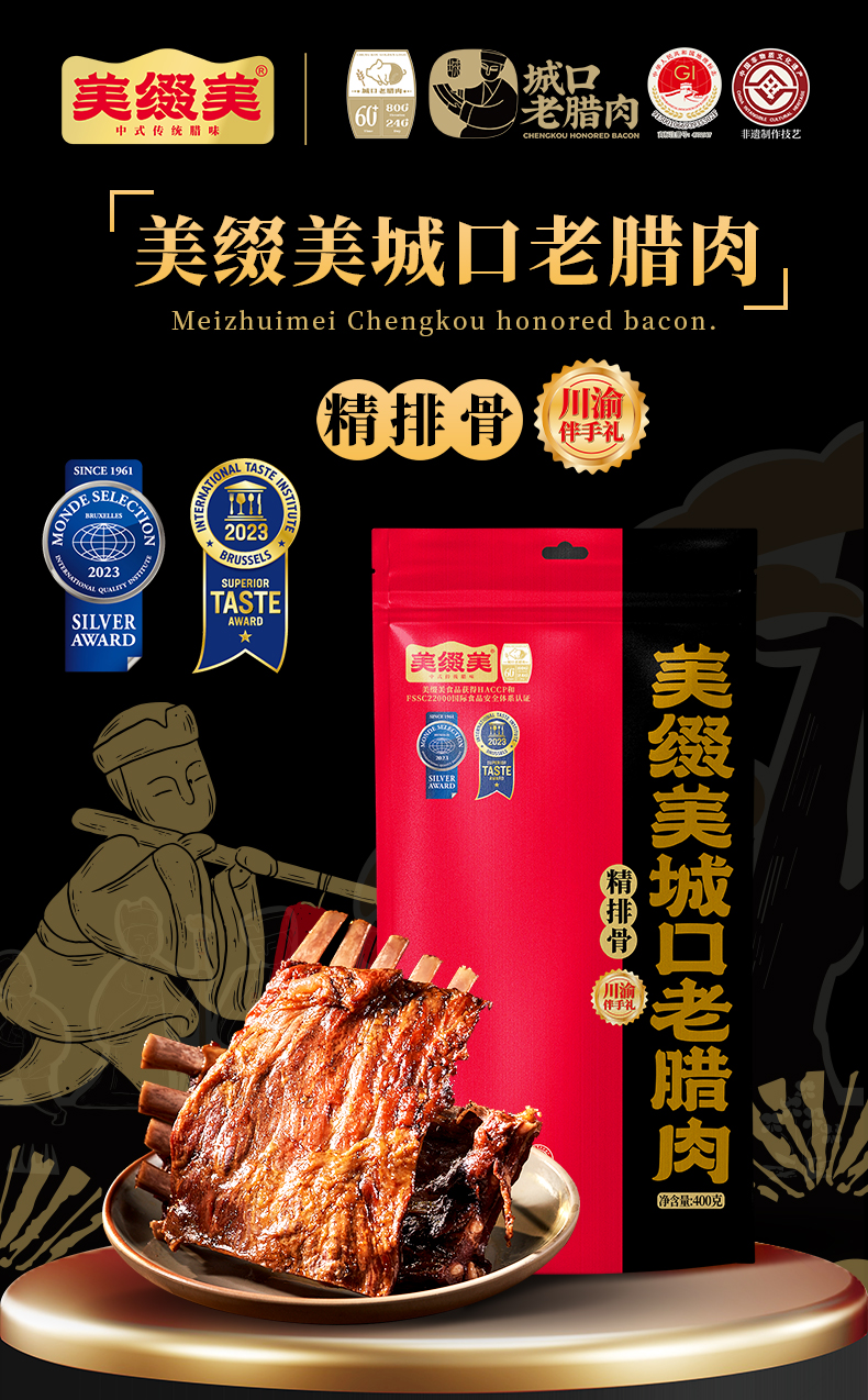美缀美 城口老腊肉(精排骨)400g 地标产品 非遗工艺 农家土猪