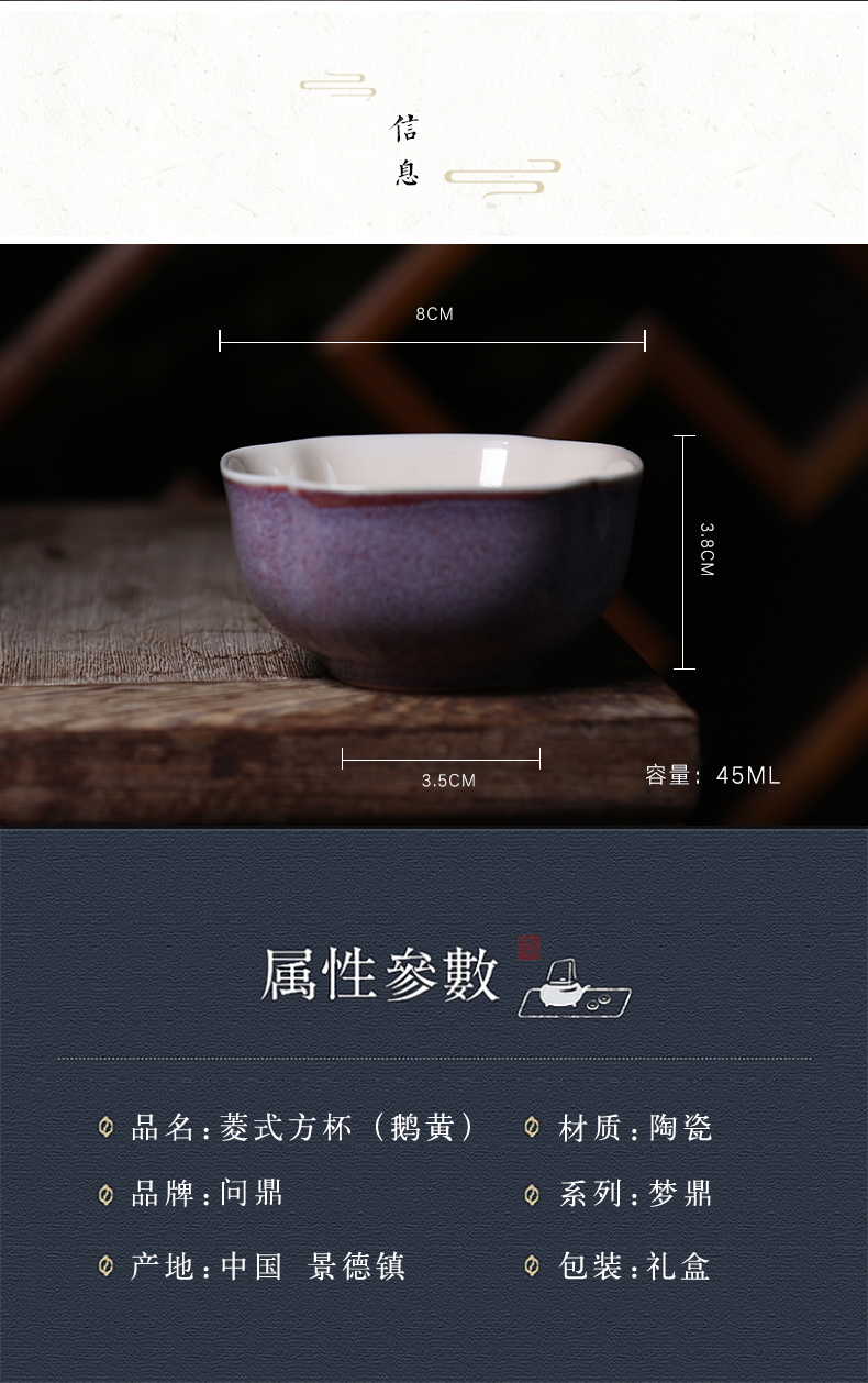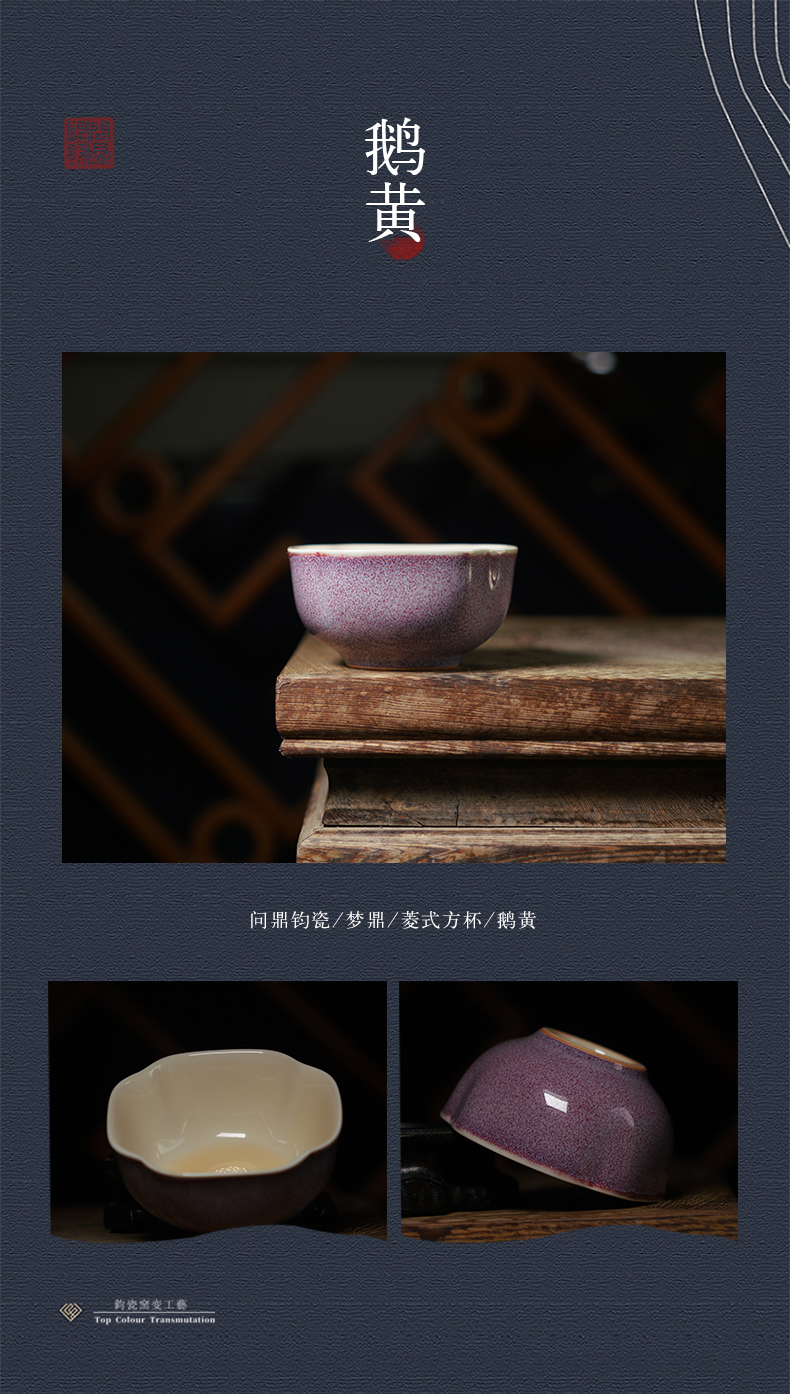 【问鼎钧瓷】鹅黄菱式主人方杯