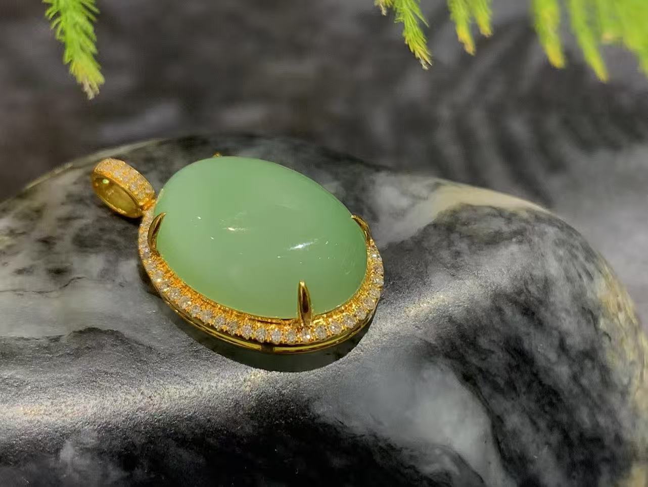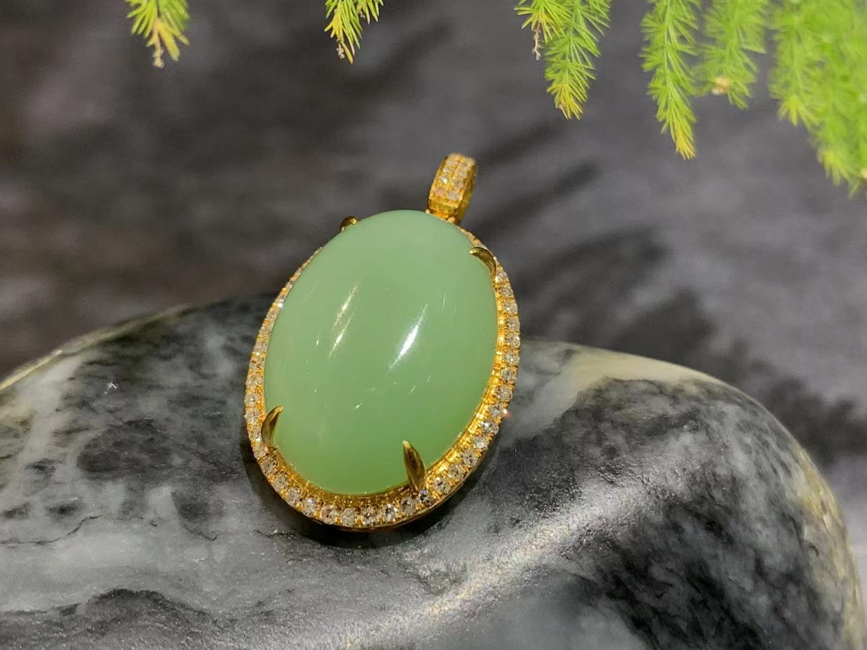 【御珠宫坊】新疆黑羊洞金镶碧玉吊坠