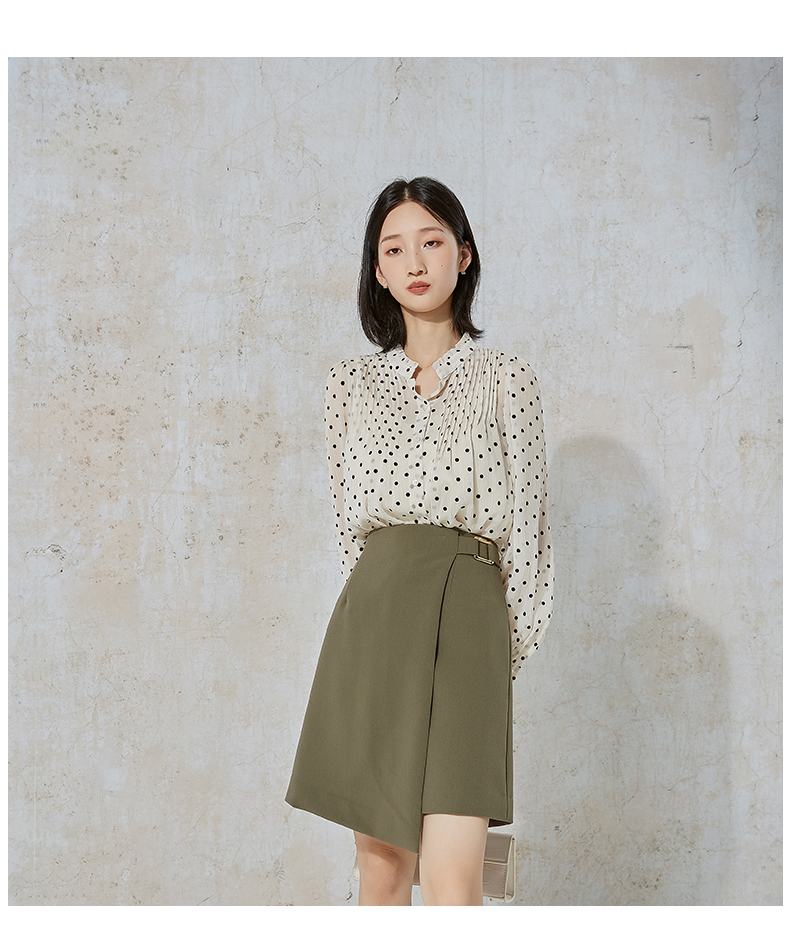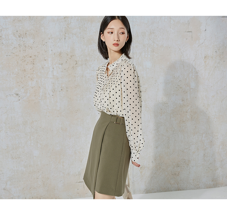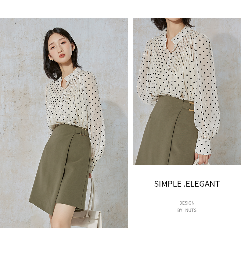 NUTS秋季新款时尚气质通勤风波点长袖衬衫女231013075B