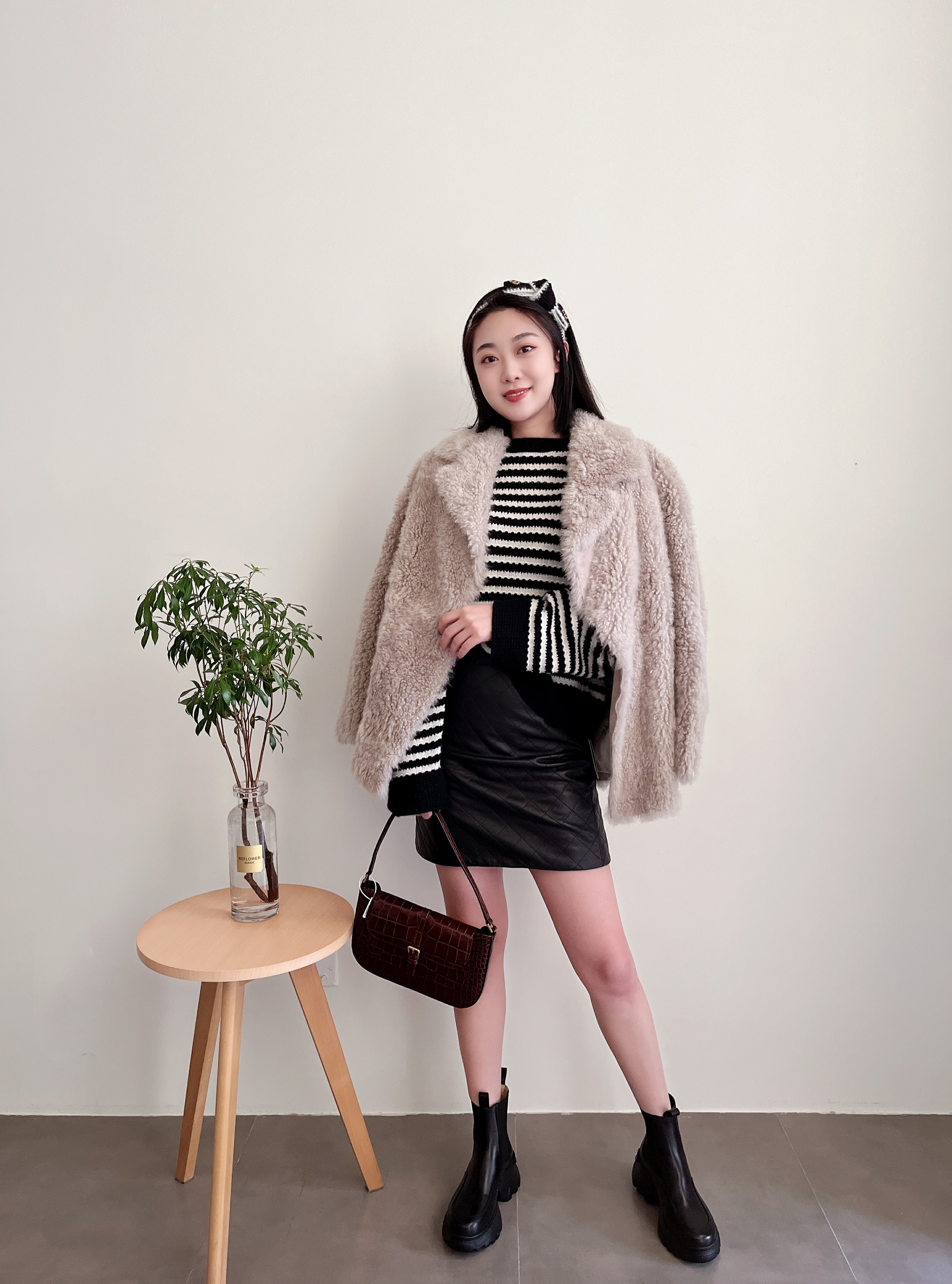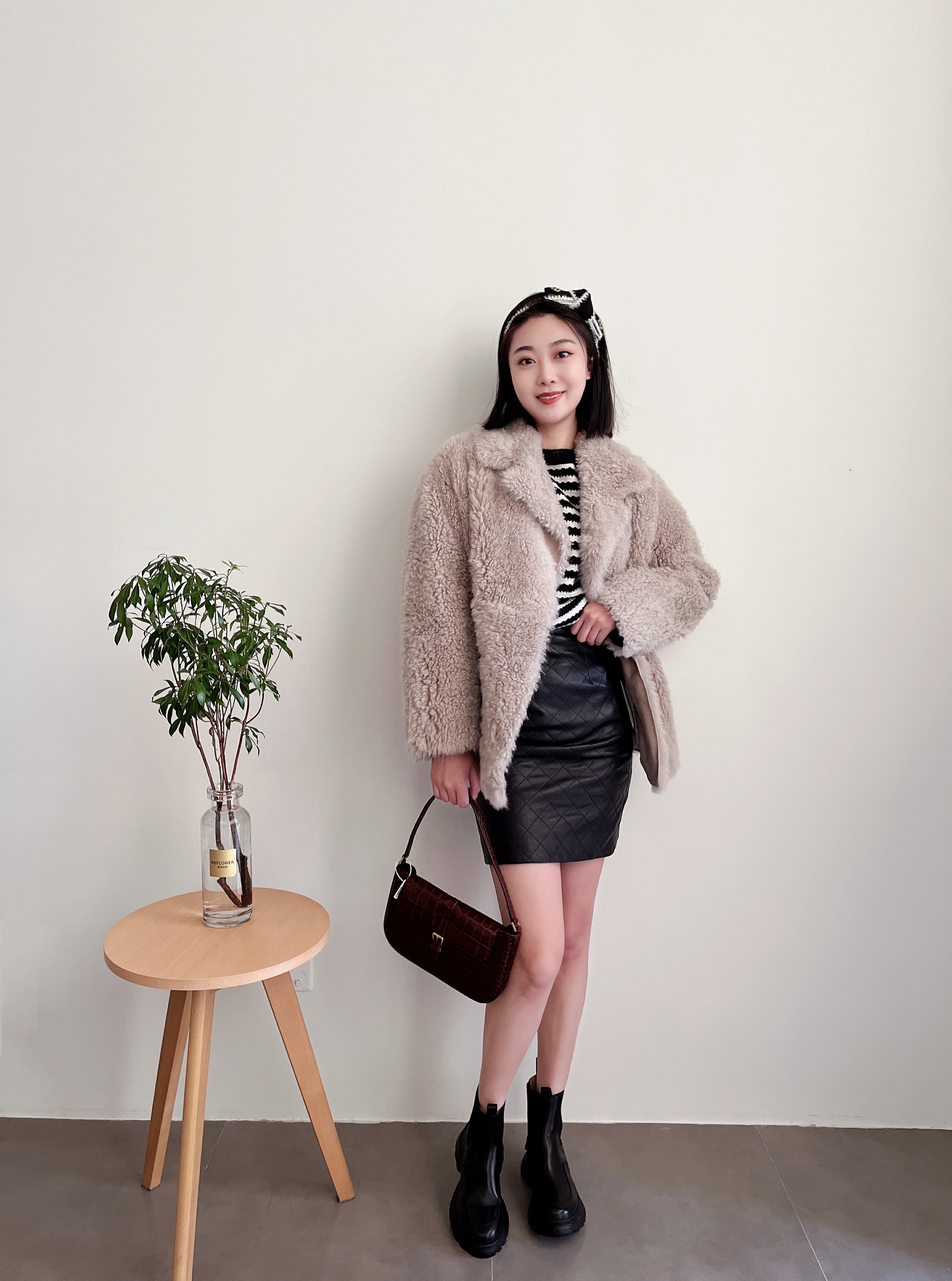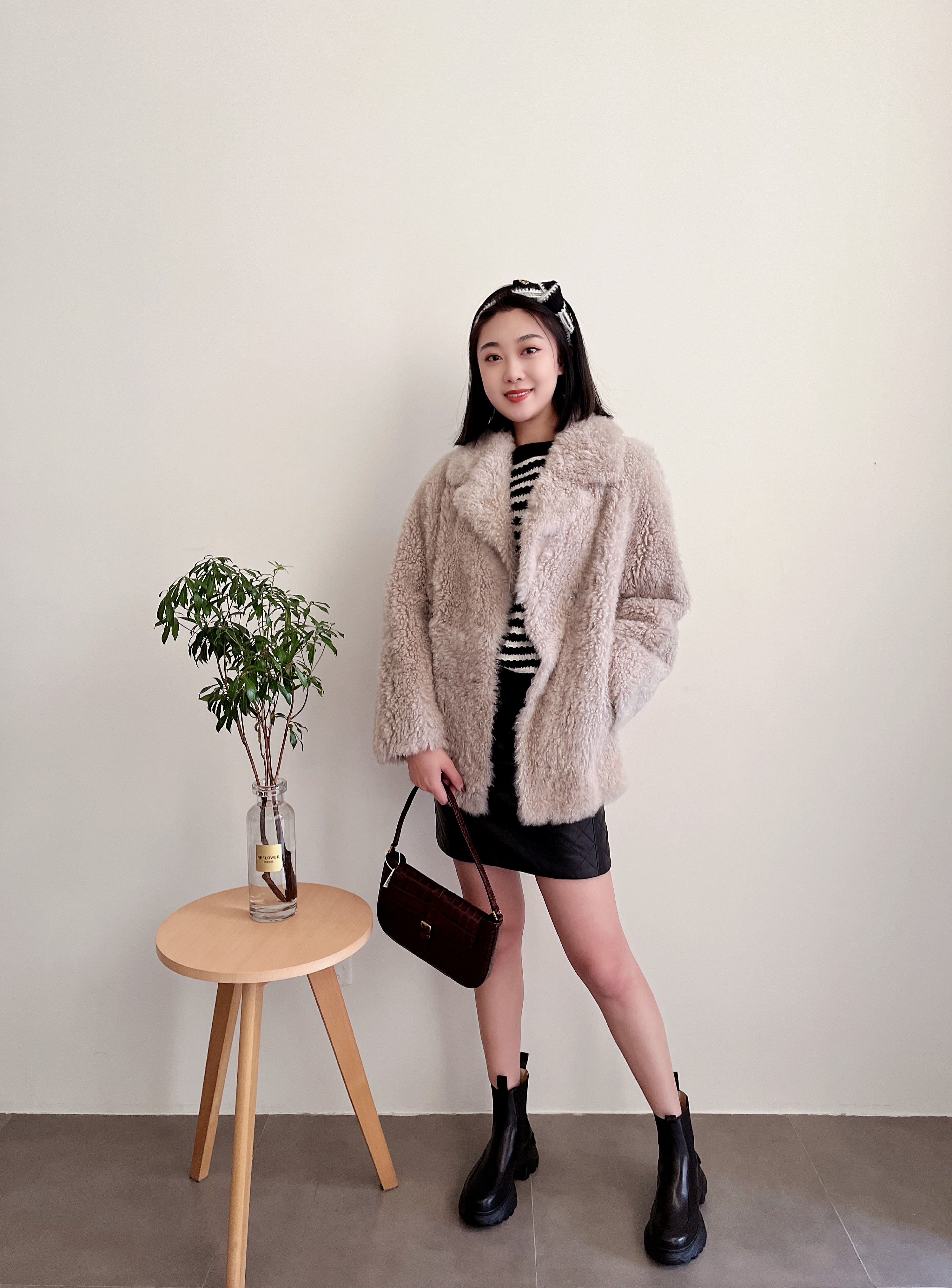 皮毛一体西装领皮草外套