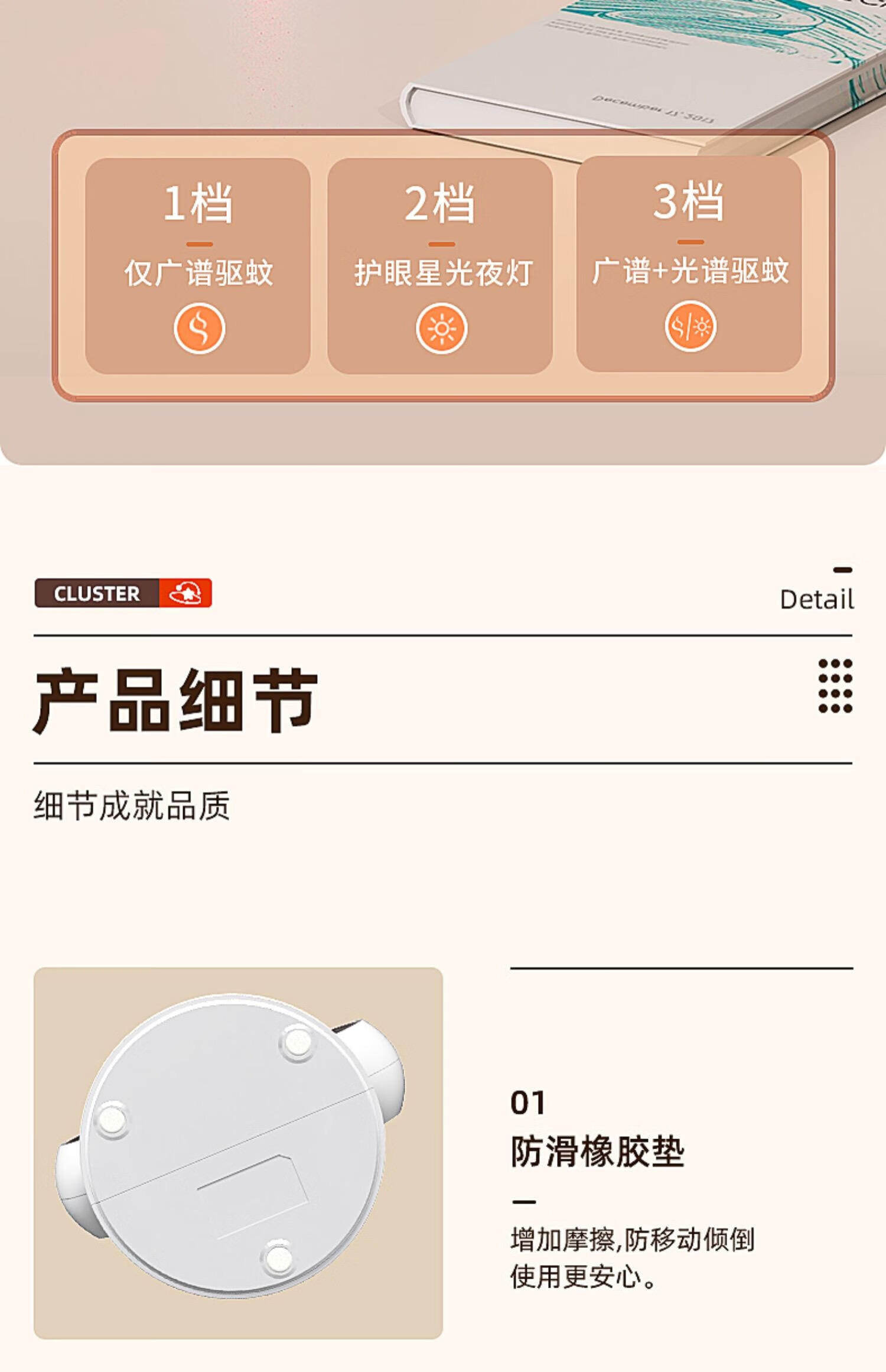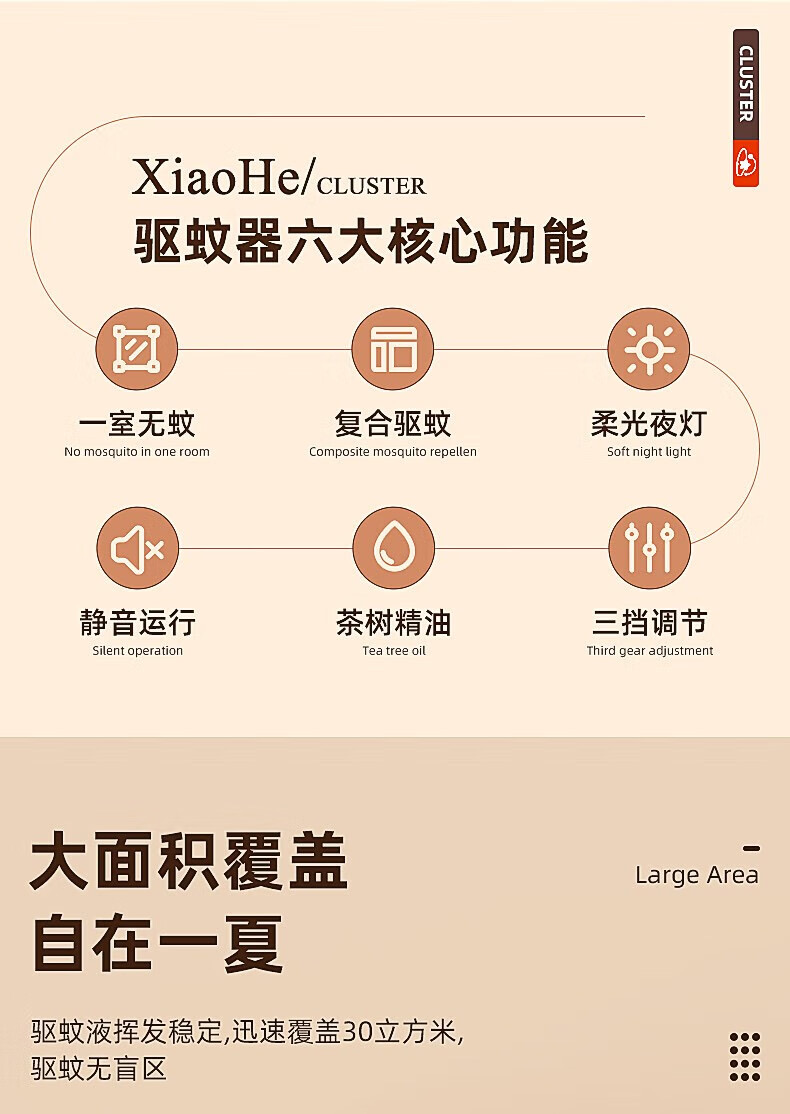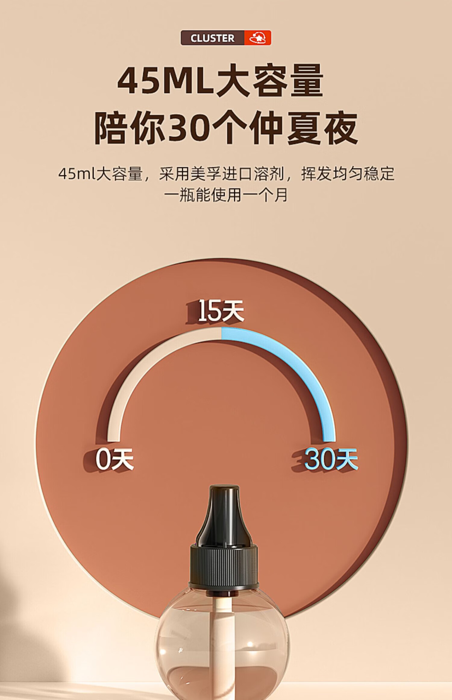 小禾星团瓶家用电热蚊香液婴儿孕妇电蚊香防蚊子插电小夜灯驱蚊器 白色