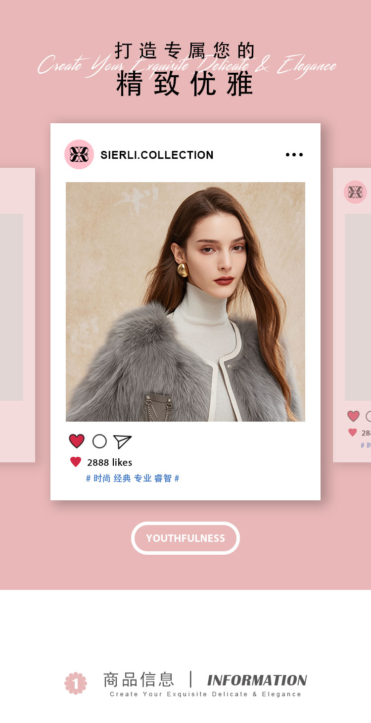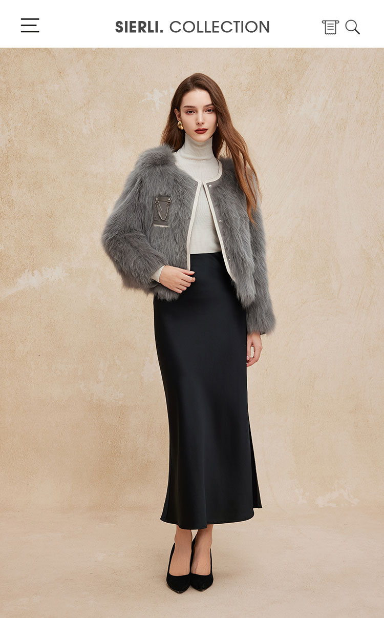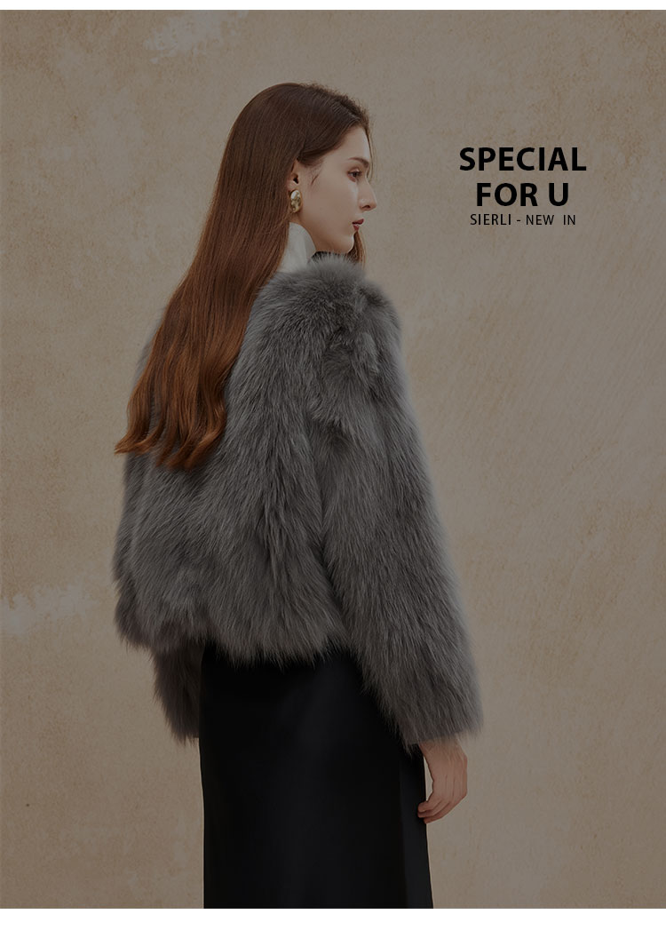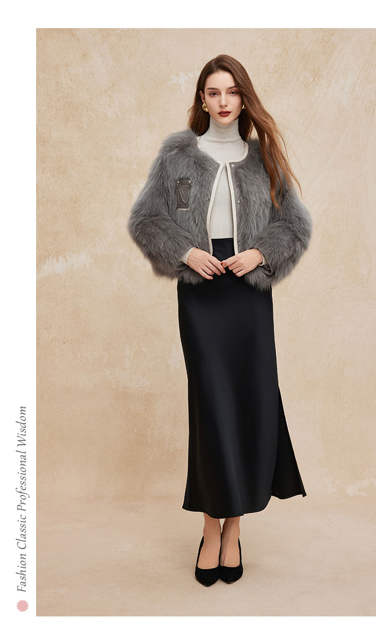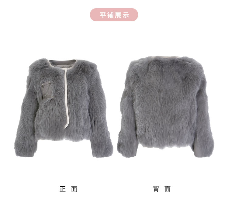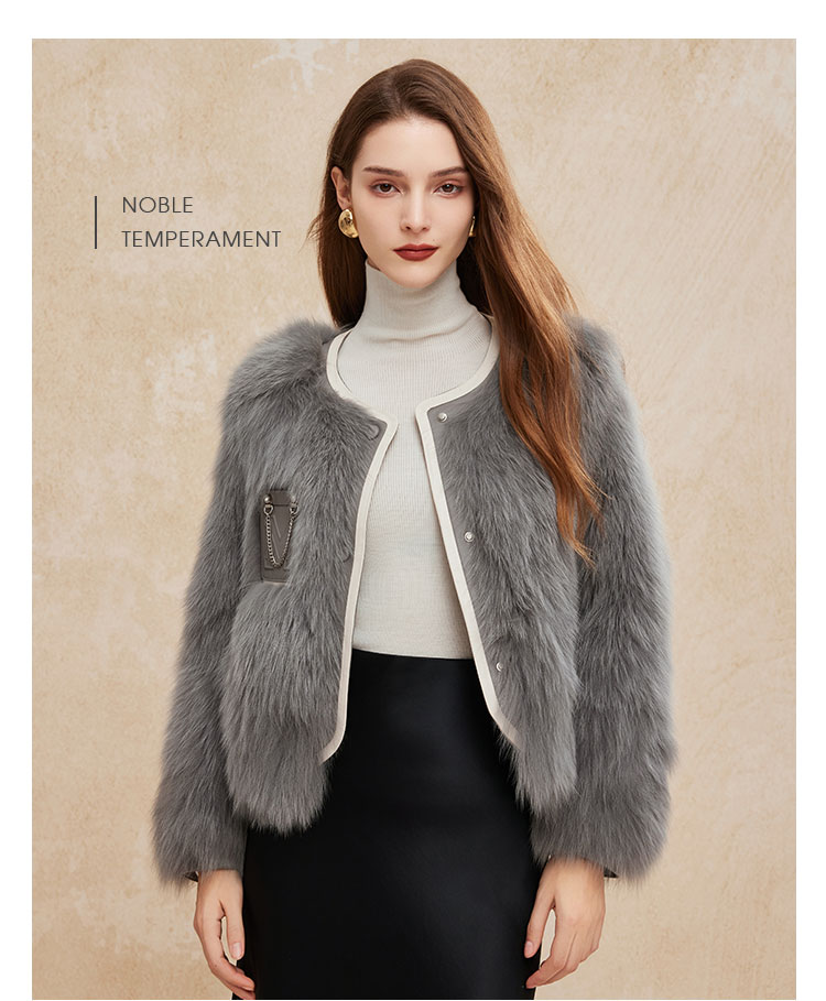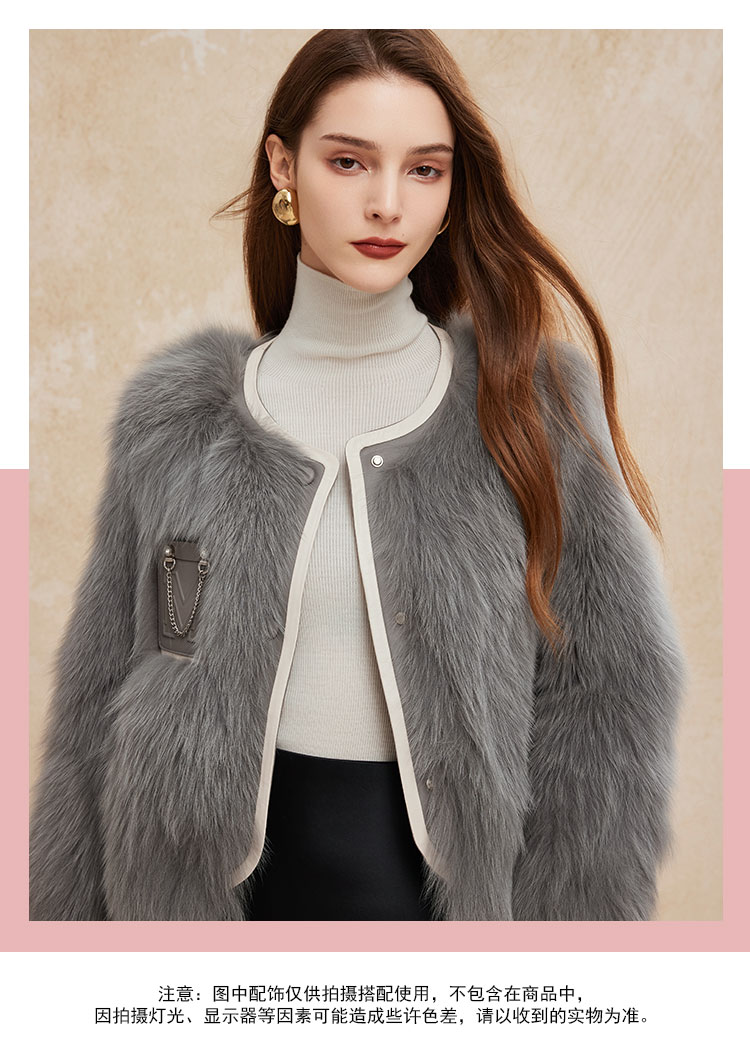 PP612斯尔丽24新款名媛气质狐狸毛小香风拼接绵羊皮撞色口袋减龄皮草