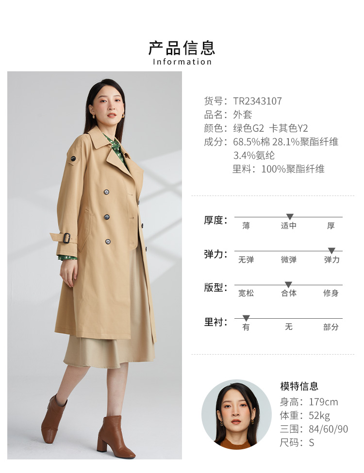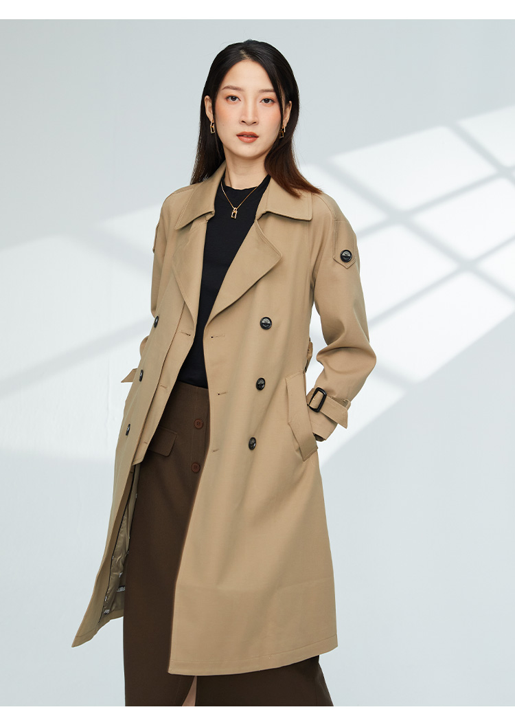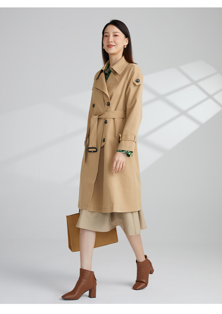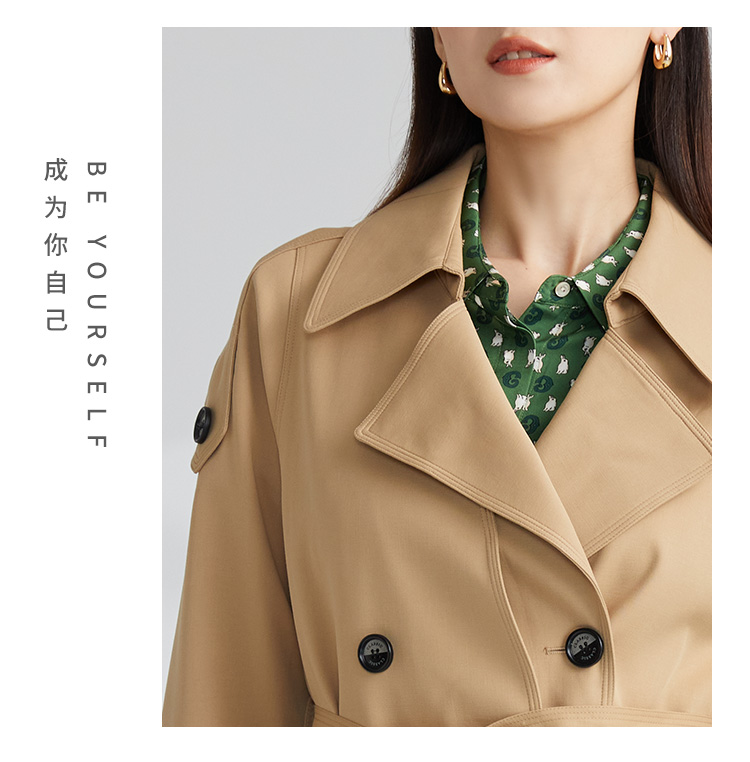 VIVIAN LIU薇薇安刘TR2343107秋女装新款小翻领英伦风双排扣风衣