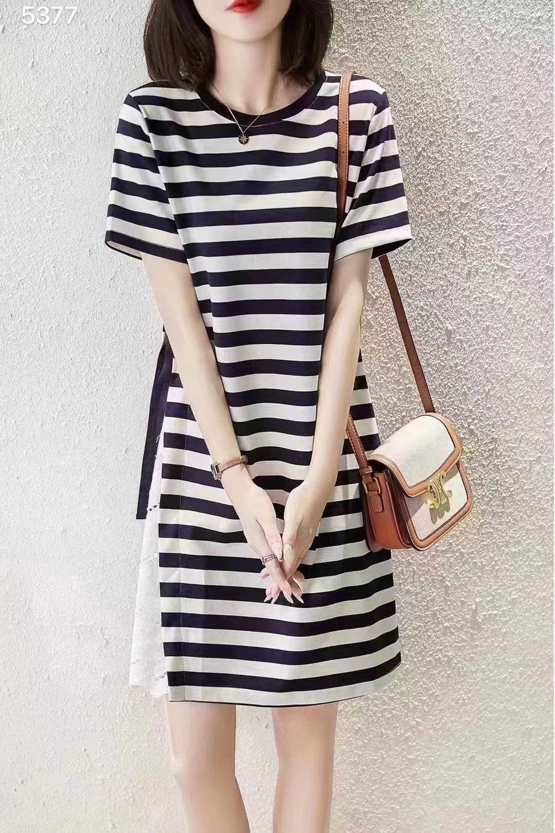 5377# 针织侧开叉拼绣花连衣裙 自带中性气质,这裙子通过不同面料的大胆碰撞搭配帅气与柔情相融,甜美又硬朗。 尺码: M-L
