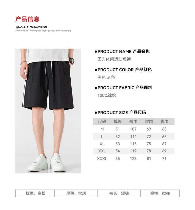 回力短裤男士夏季新款潮牌宽松休闲条纹沙滩裤美式透气运动五分裤