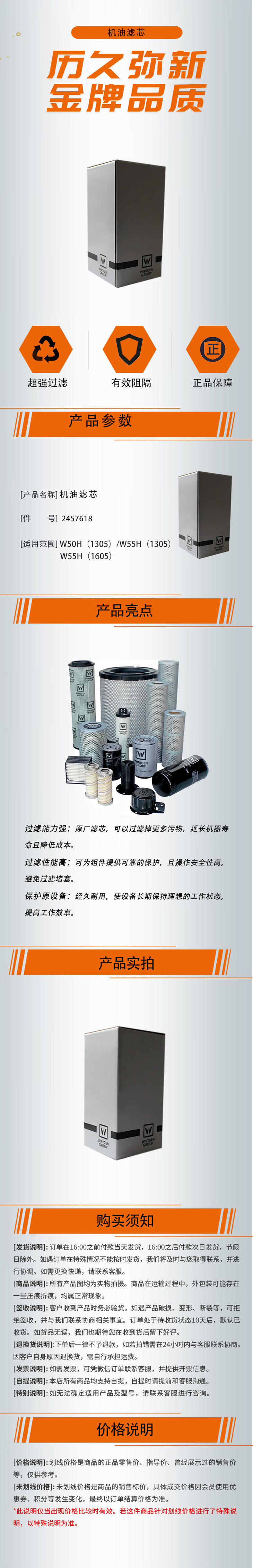 【机油滤芯2457618】 适用于W50H(1305)/W55H(1305)/W55H(1605)