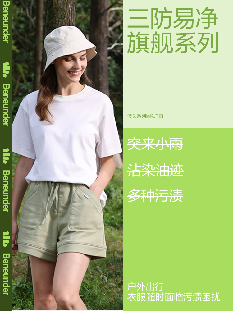 蕉下澄久系列圆领T恤 短袖t恤女短袖女情侣装夏季打底衫女防水拒油抗污易洗柔软舒适男女同款澄久圆领T恤 蓝烟灰L