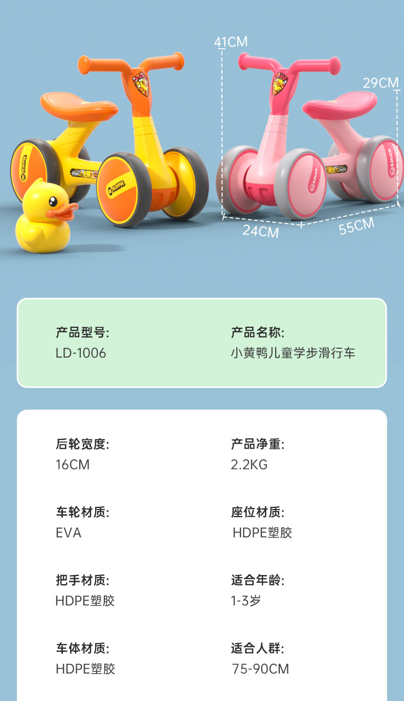 Luddy/乐的 B.Duck小黄鸭联名款儿童学步车1006 10-36个月