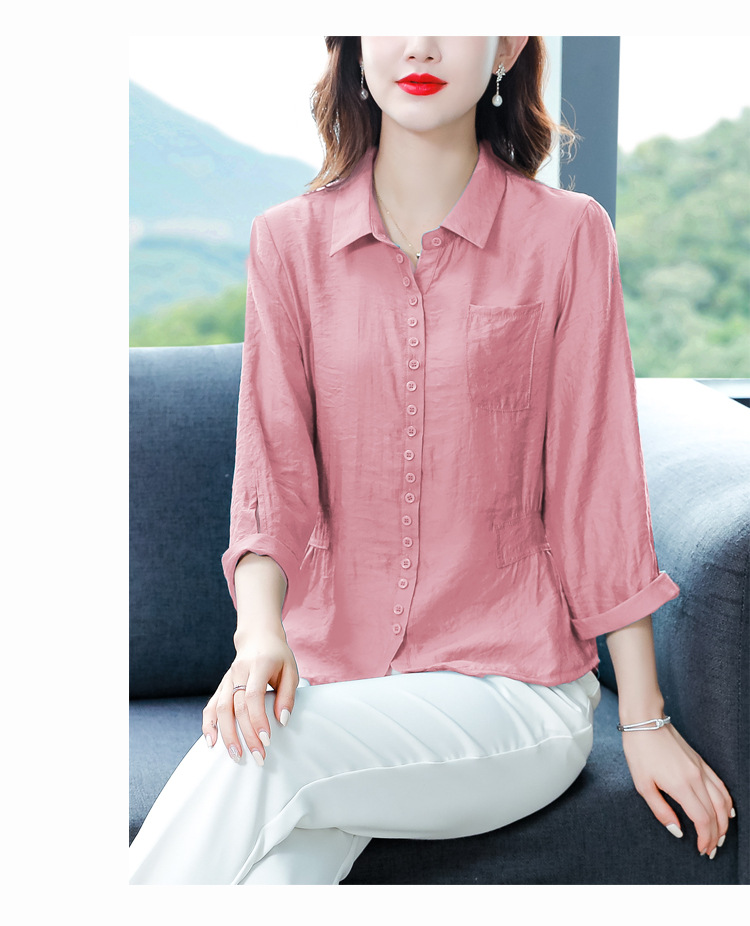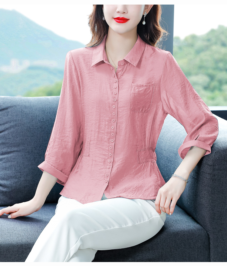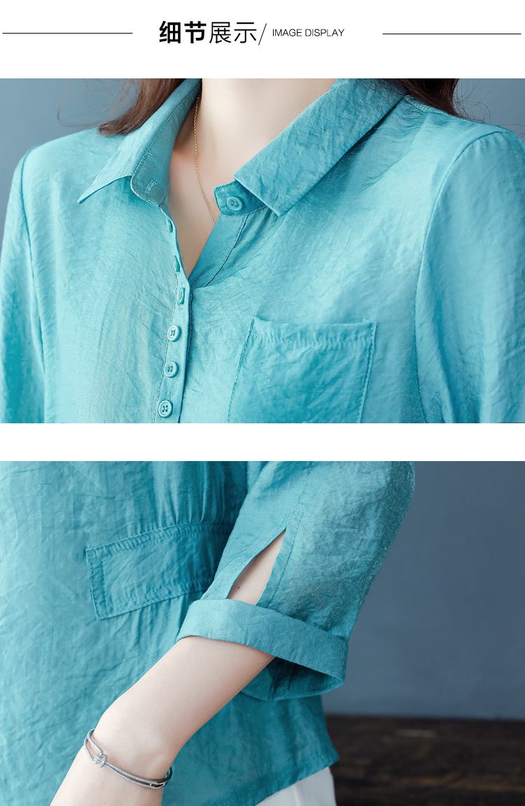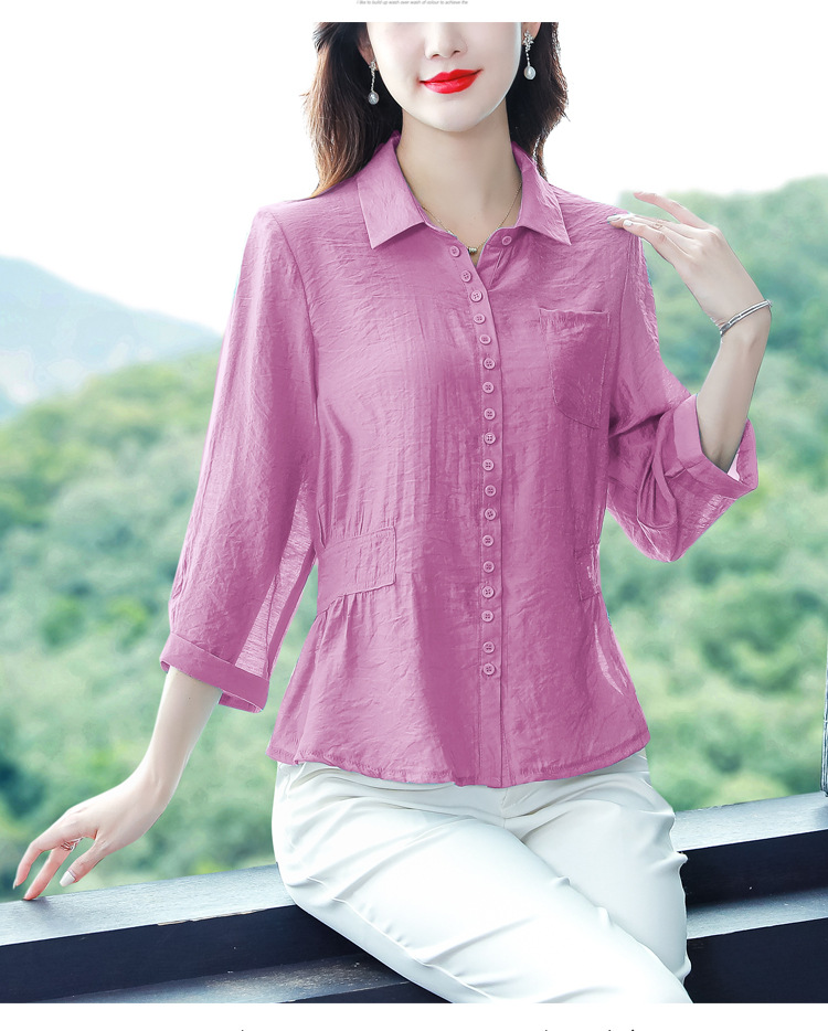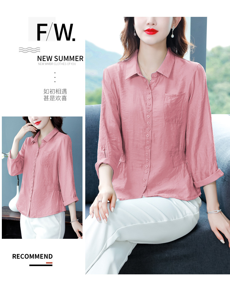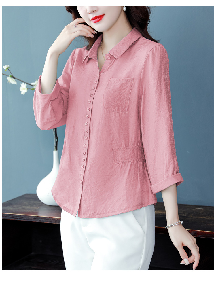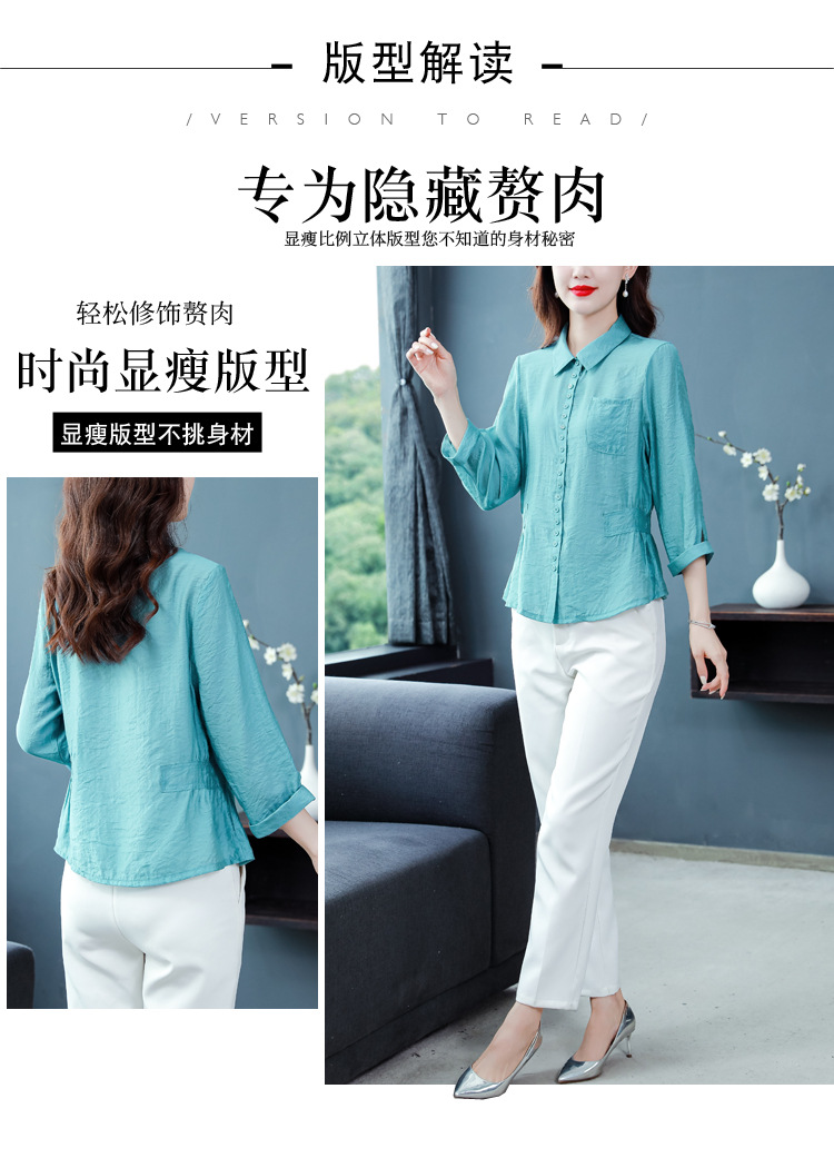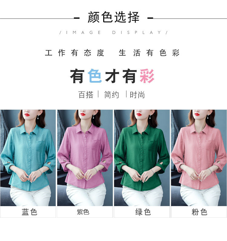 九分袖棉麻上衣,收腰显瘦宽松时尚百搭衬衣KQL-C22N9397