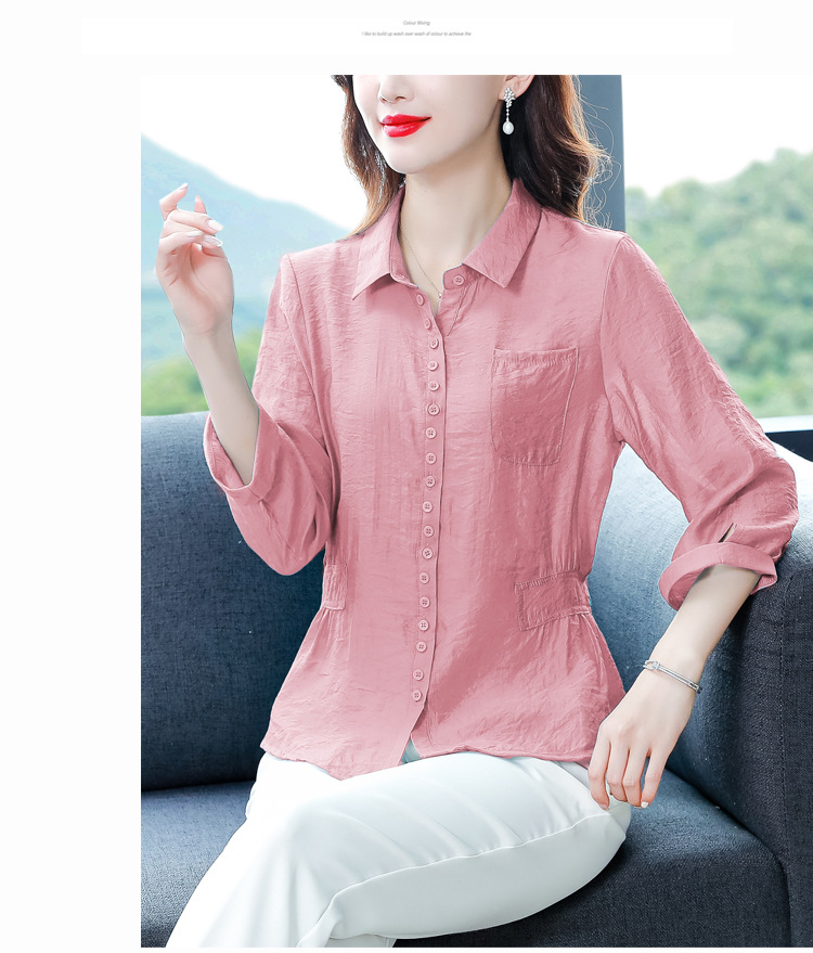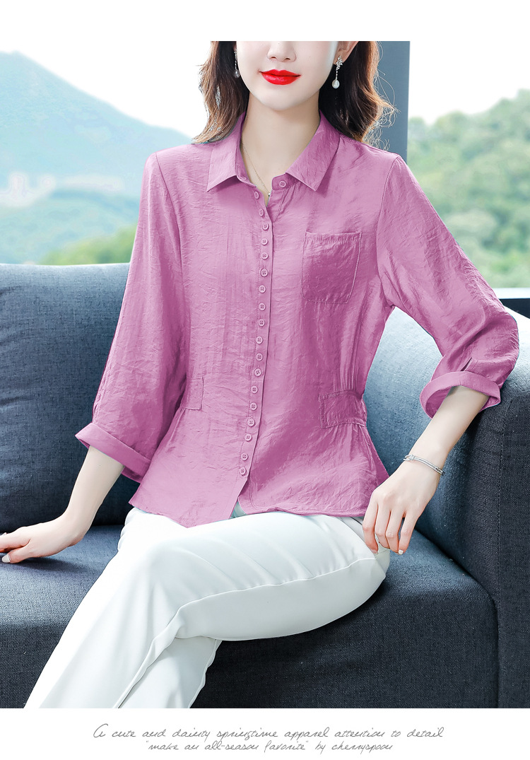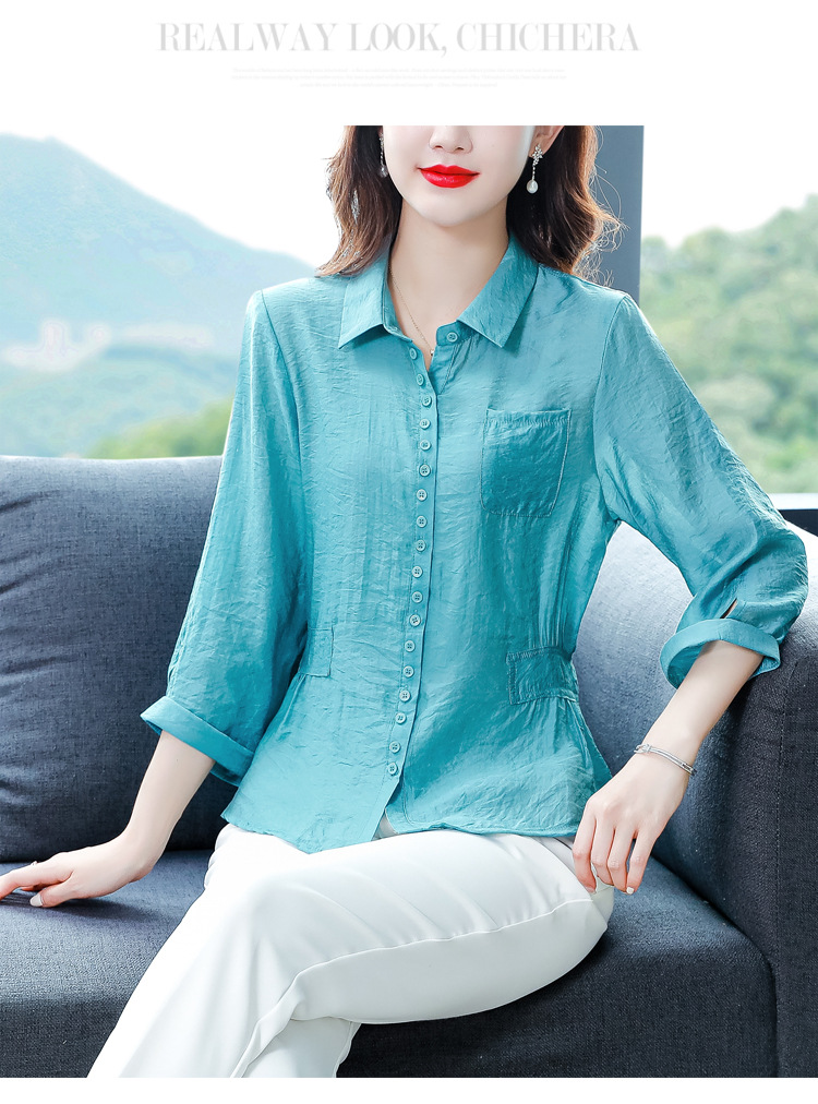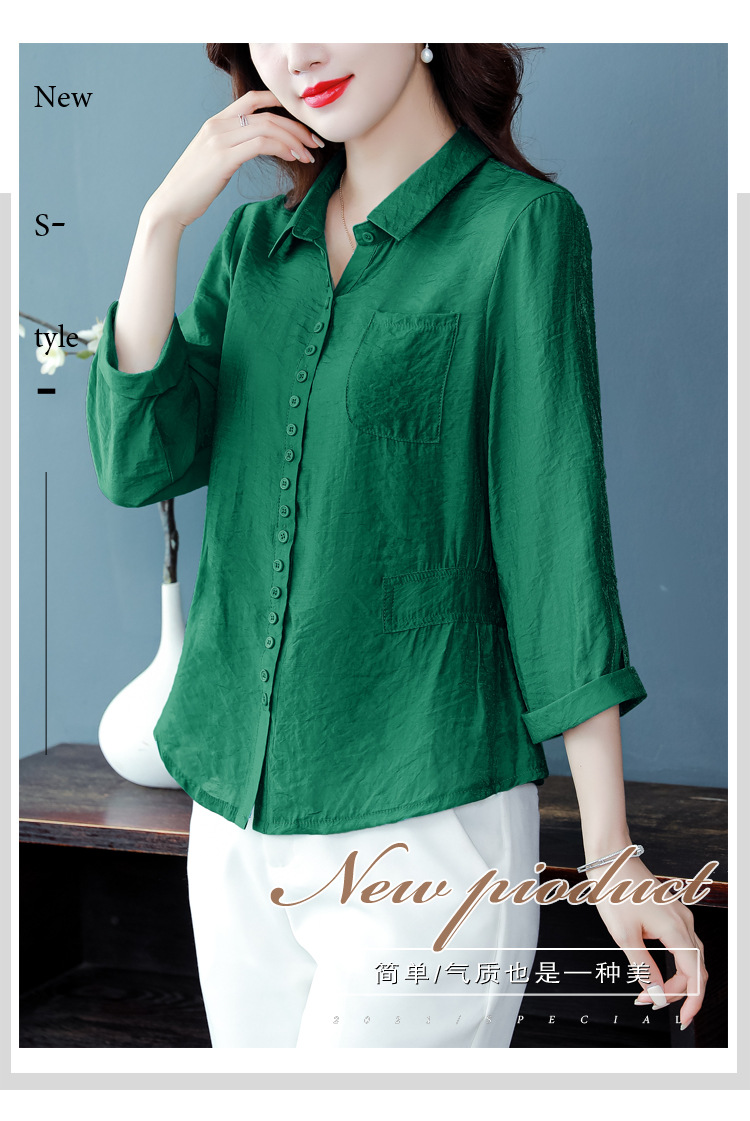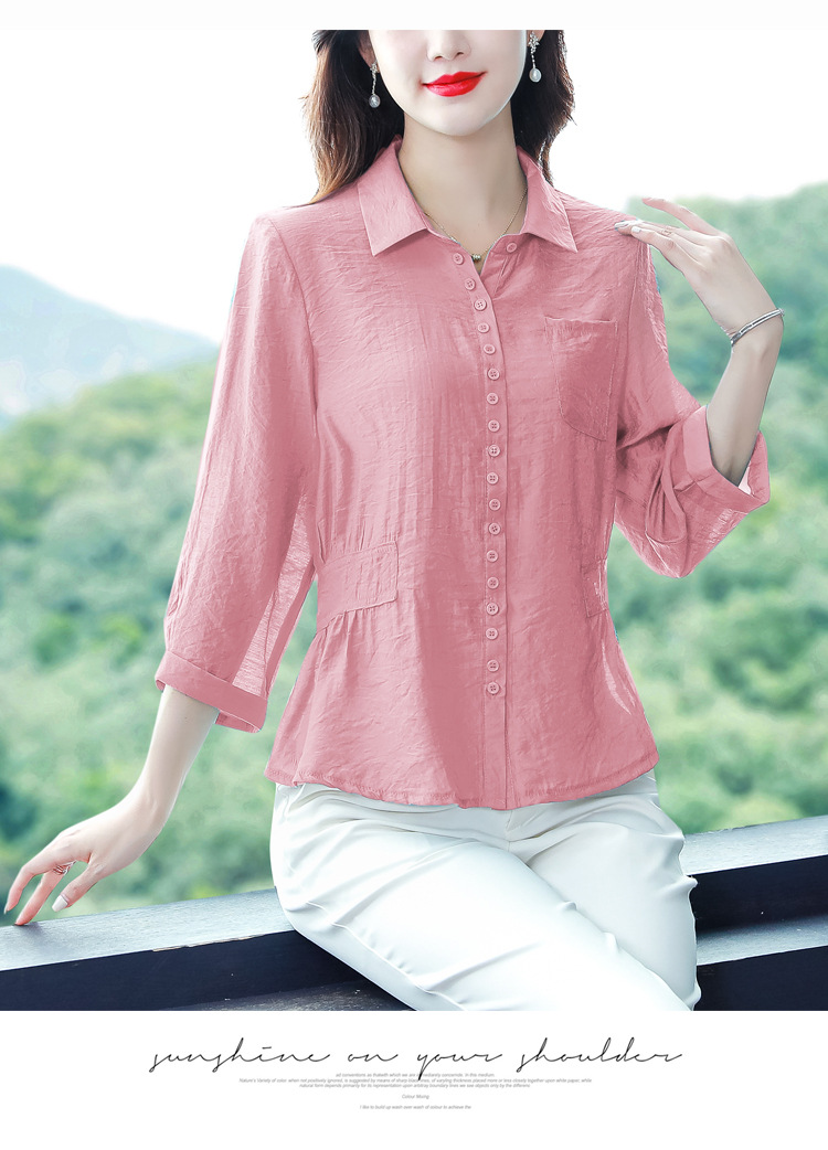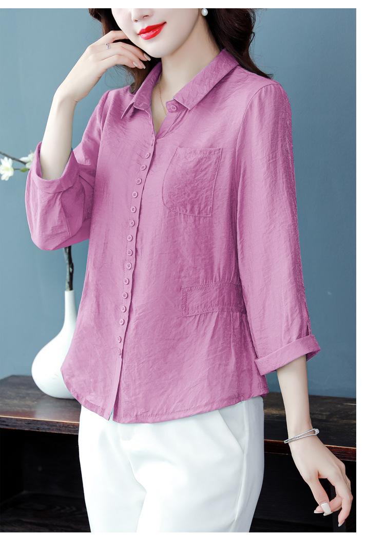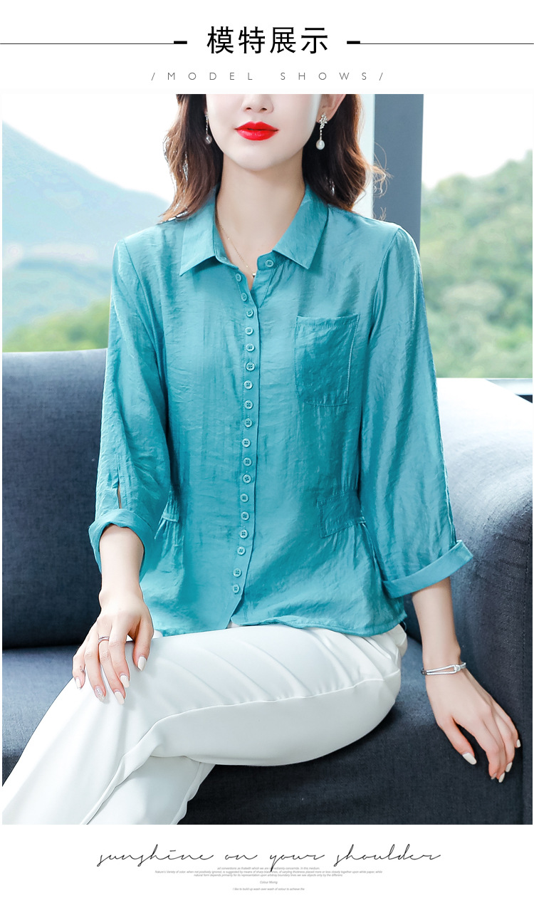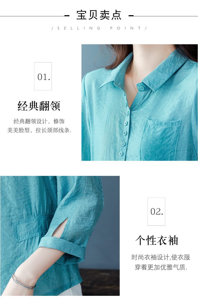 九分袖棉麻上衣,收腰显瘦宽松时尚百搭衬衣KQL-C22N9397