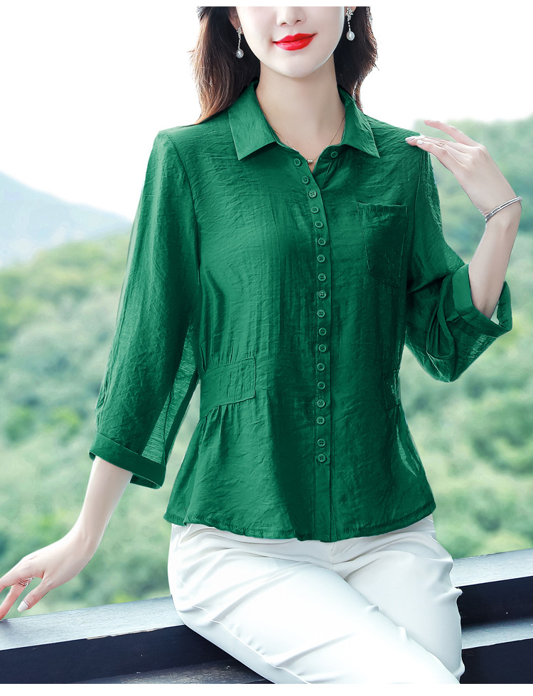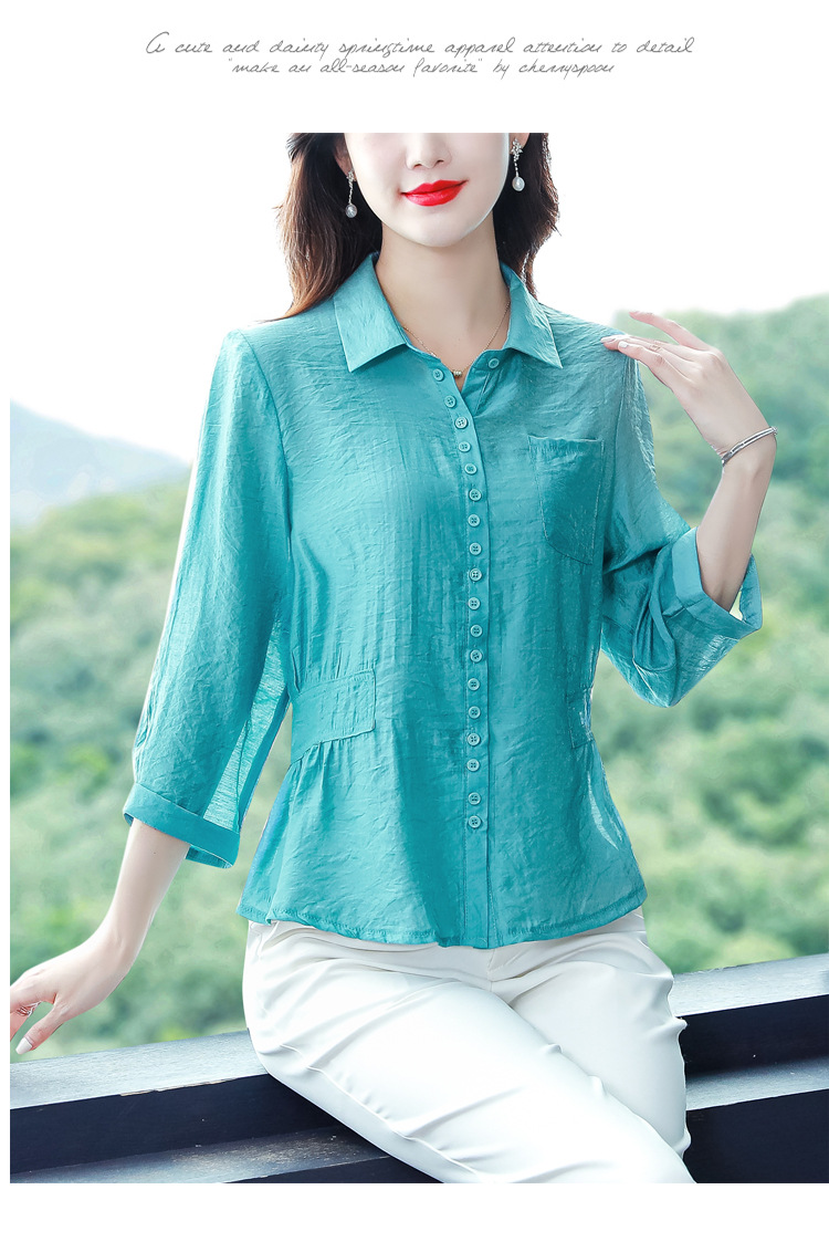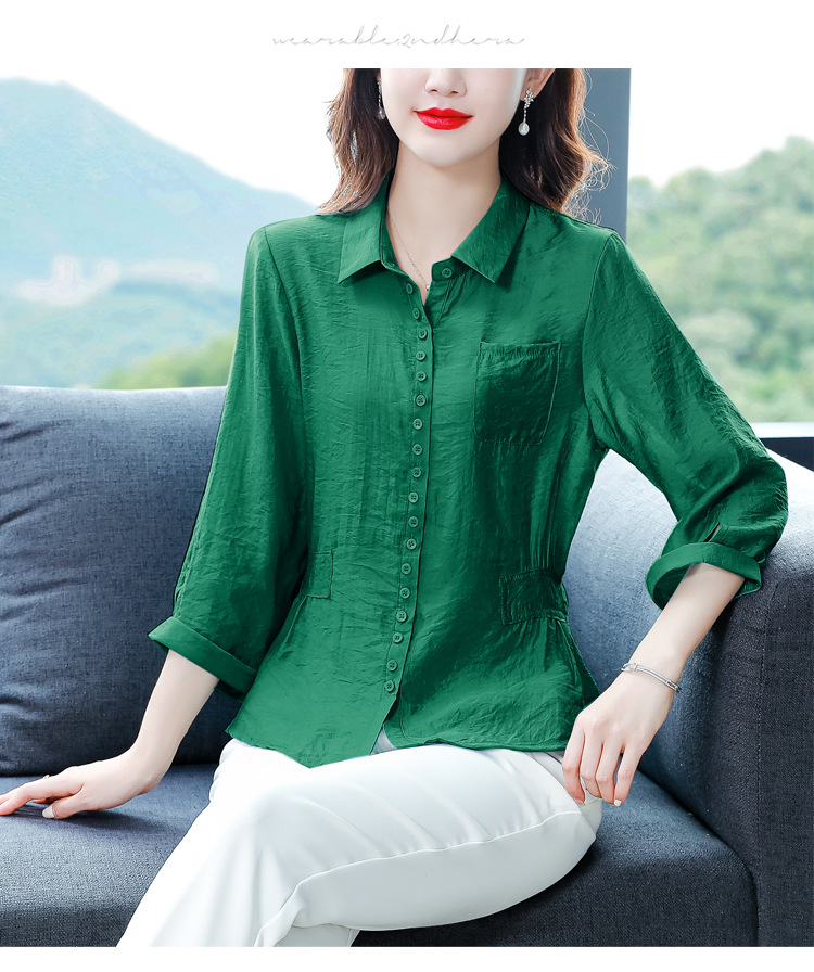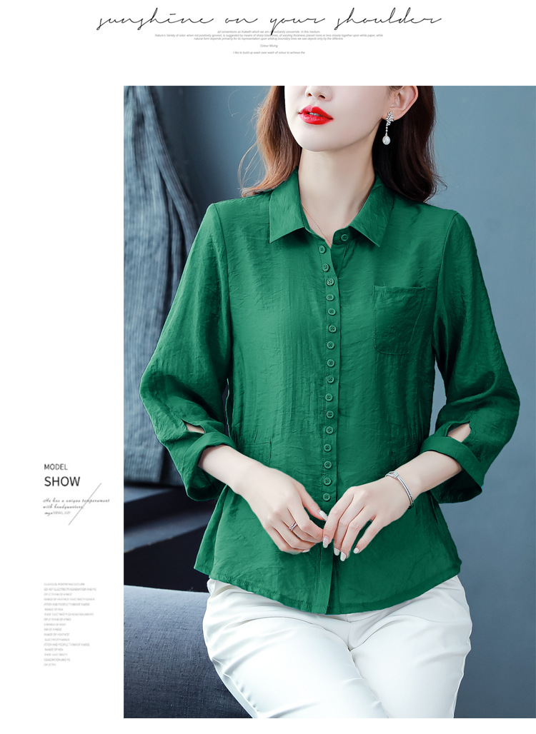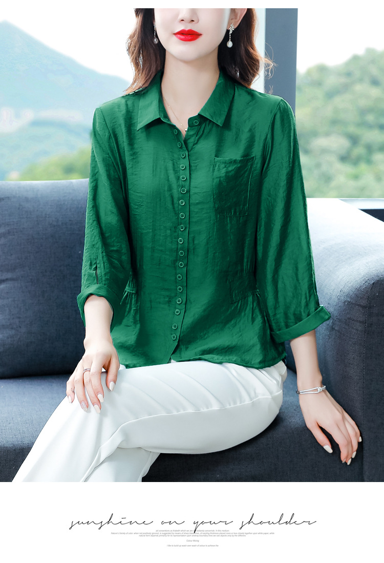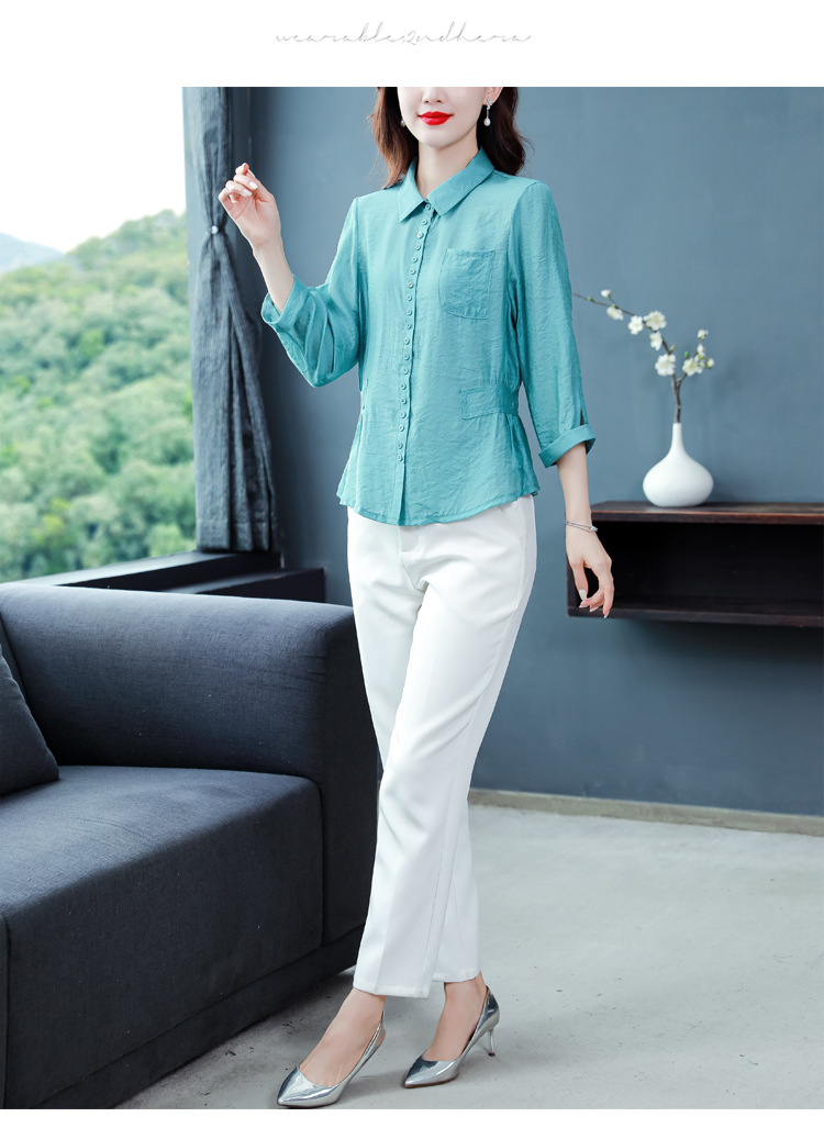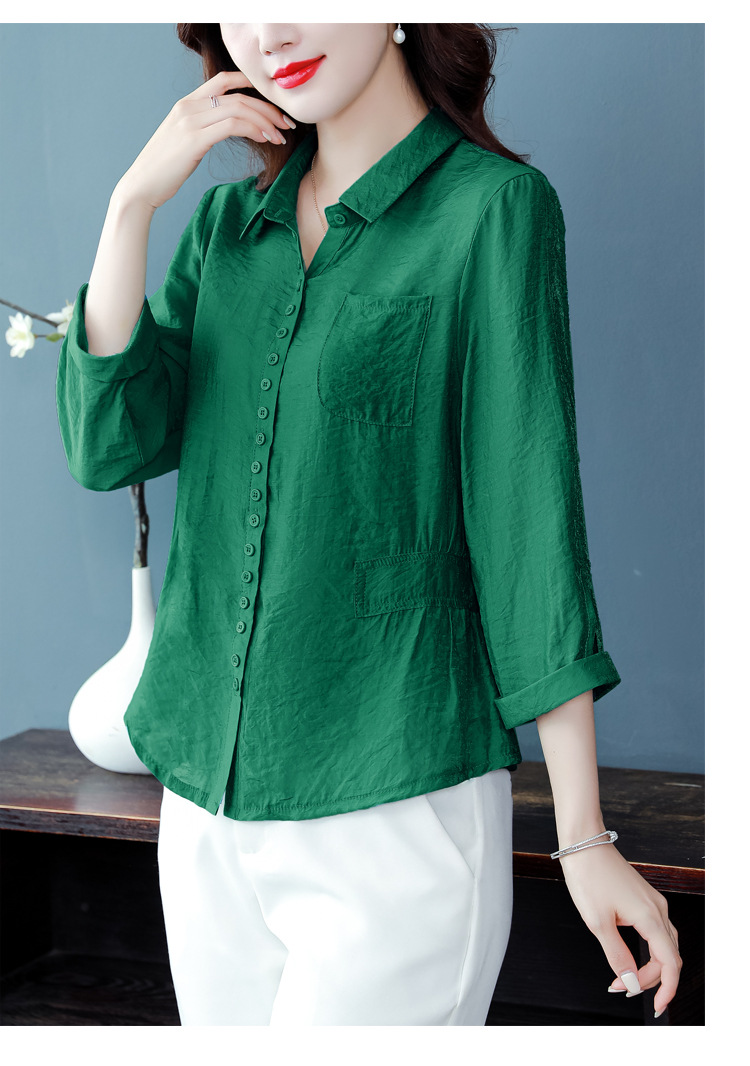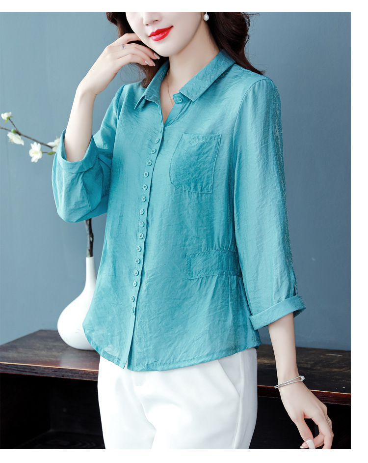 九分袖棉麻上衣,收腰显瘦宽松时尚百搭衬衣KQL-C22N9397