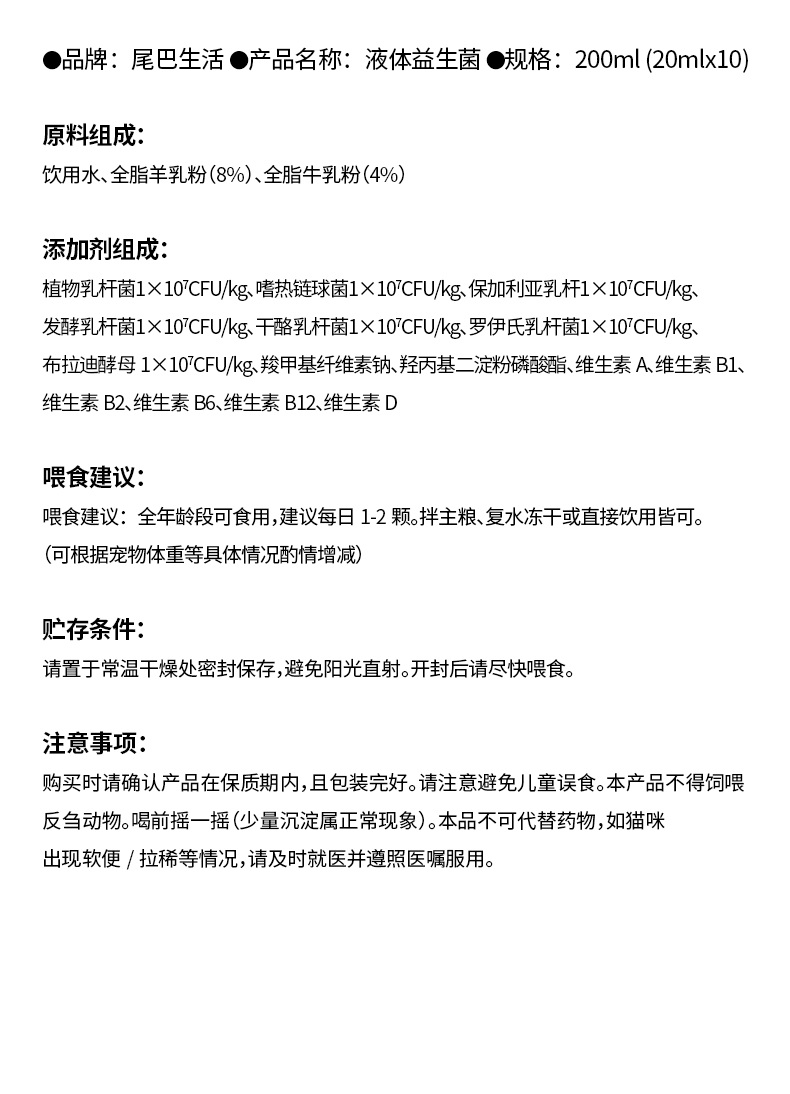 尾巴生活 液体羊奶益生菌 200ml