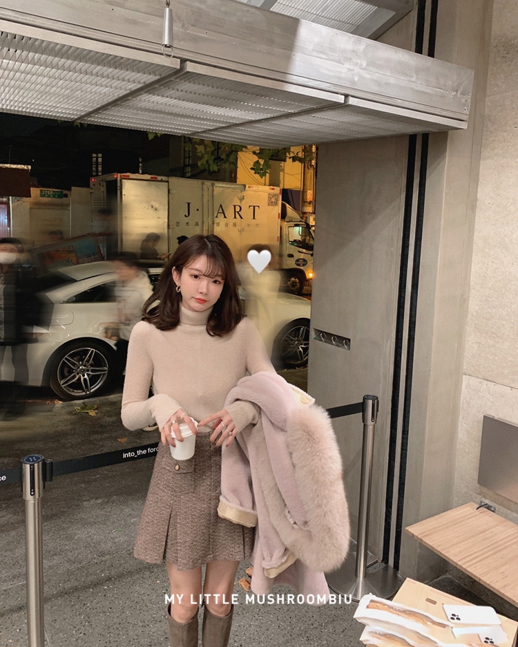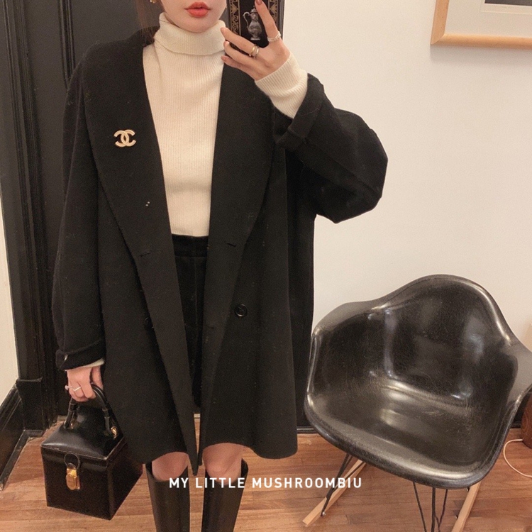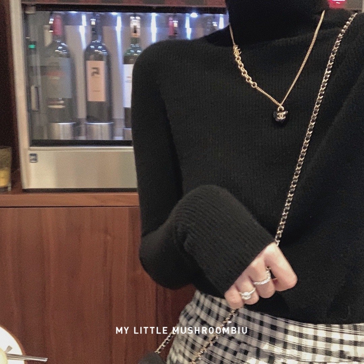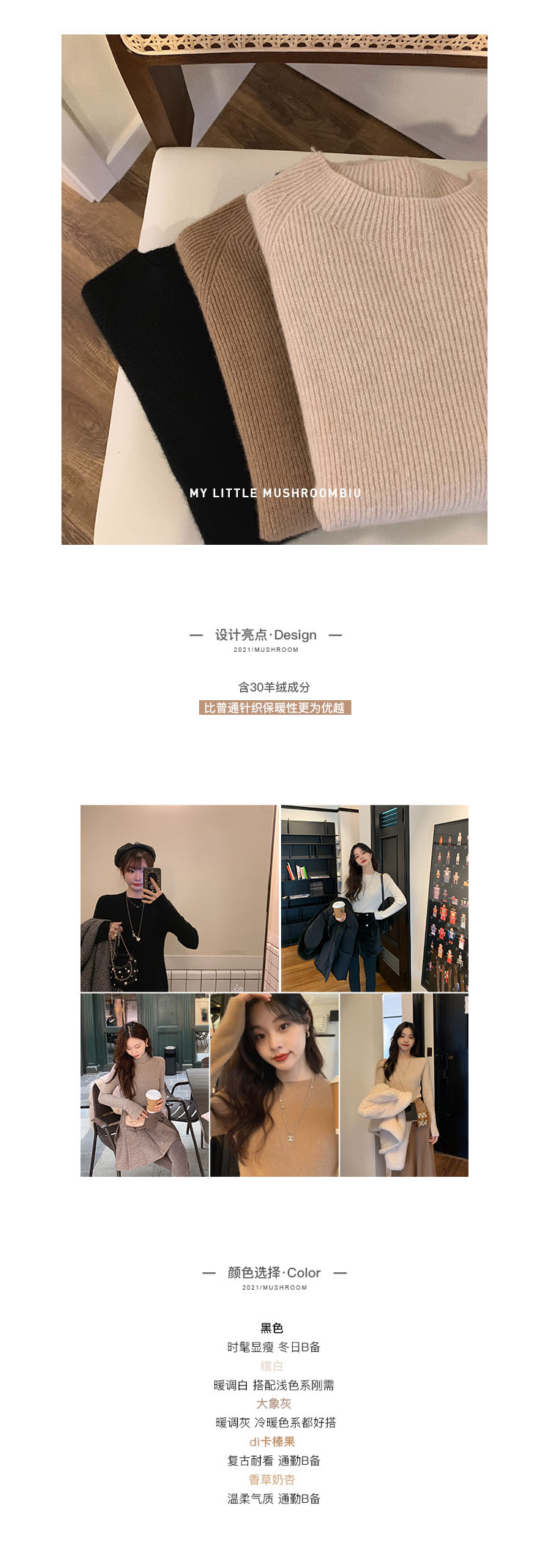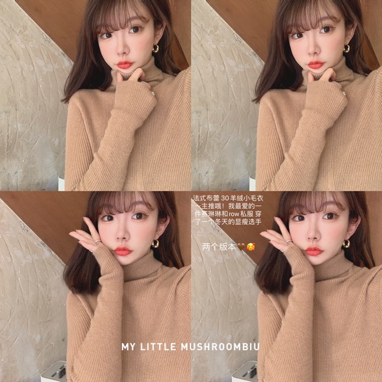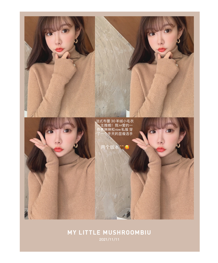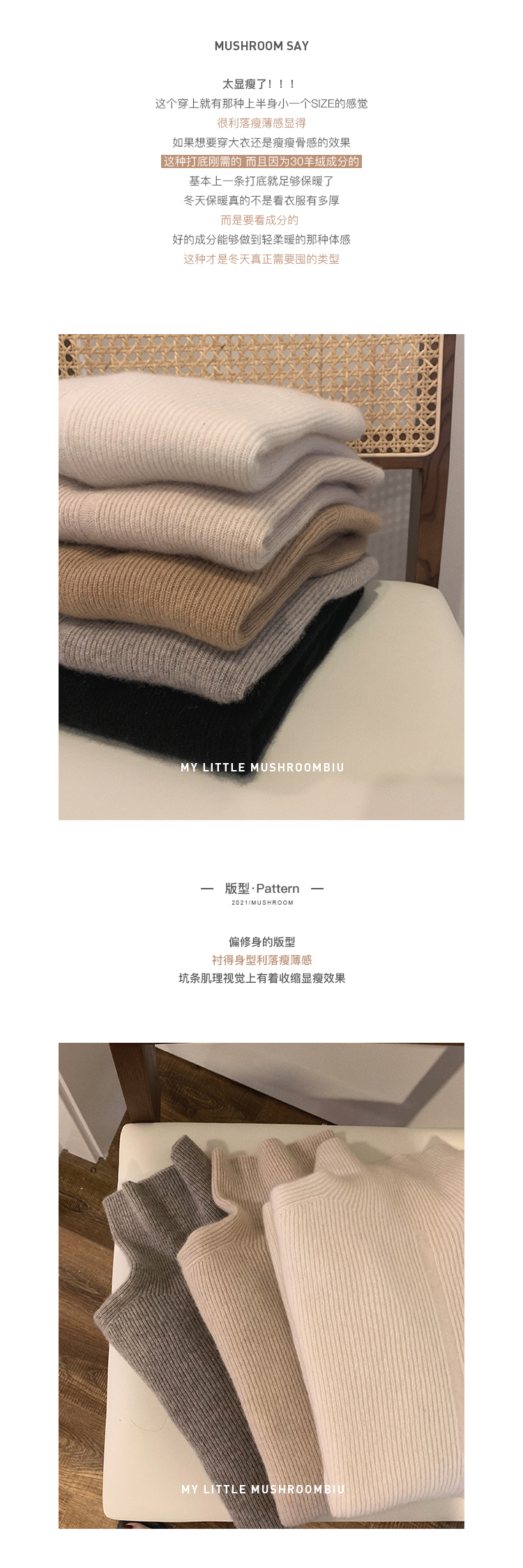 金蘑菇菇【黑标!法式布蕾羊绒】羊绒高领+低领修身纯色打底毛衣
