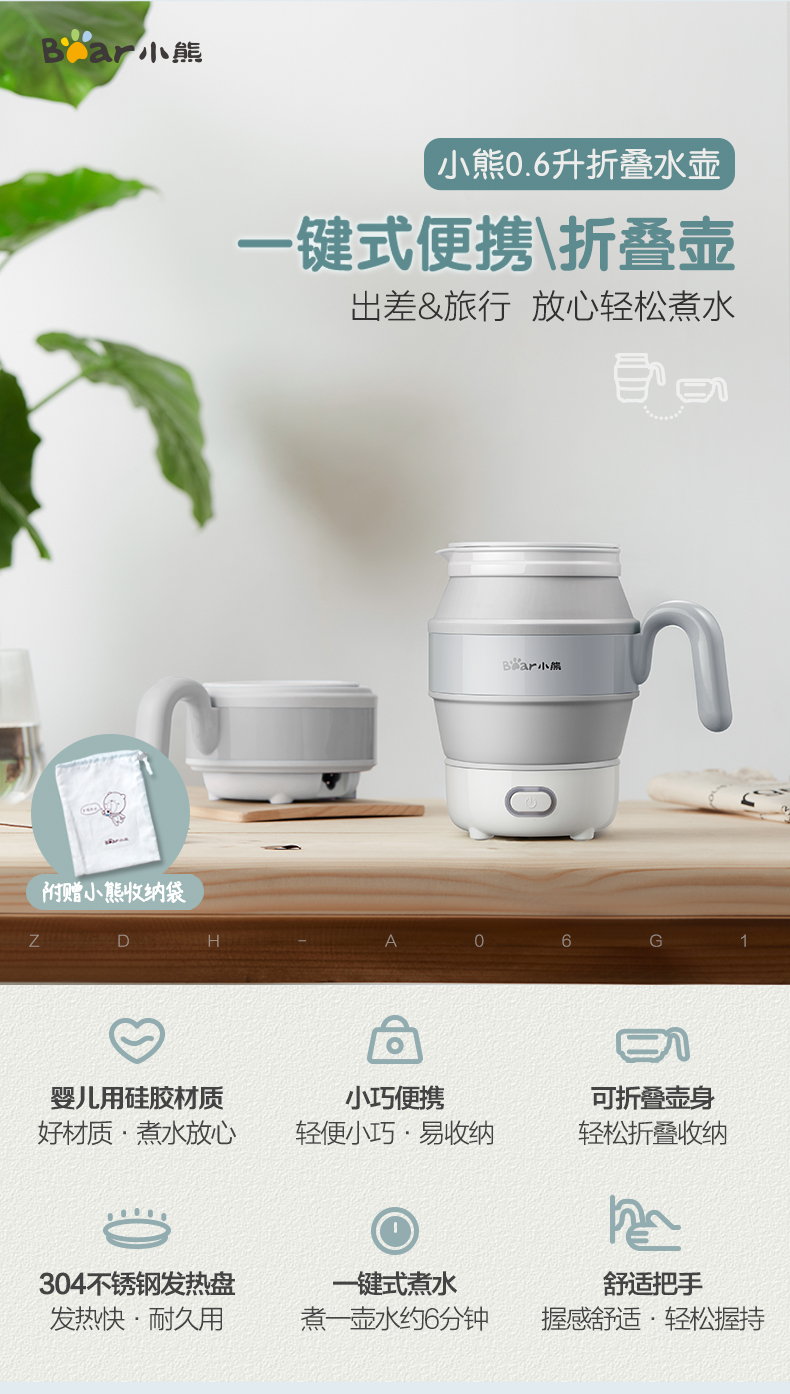 【小程序】Bear/小熊 ZDH-A06G1烧水壶小型便携式电热水壶旅行电热水壶家用