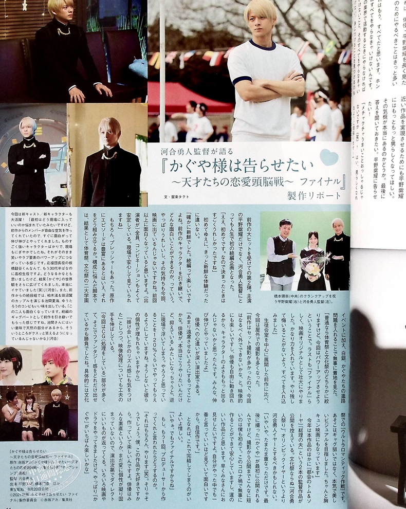 ·平野紫耀、 河合勇人監督 「かぐや様は告らせたい ~天才たちの恋愛頭脳戦~ ファイナル」