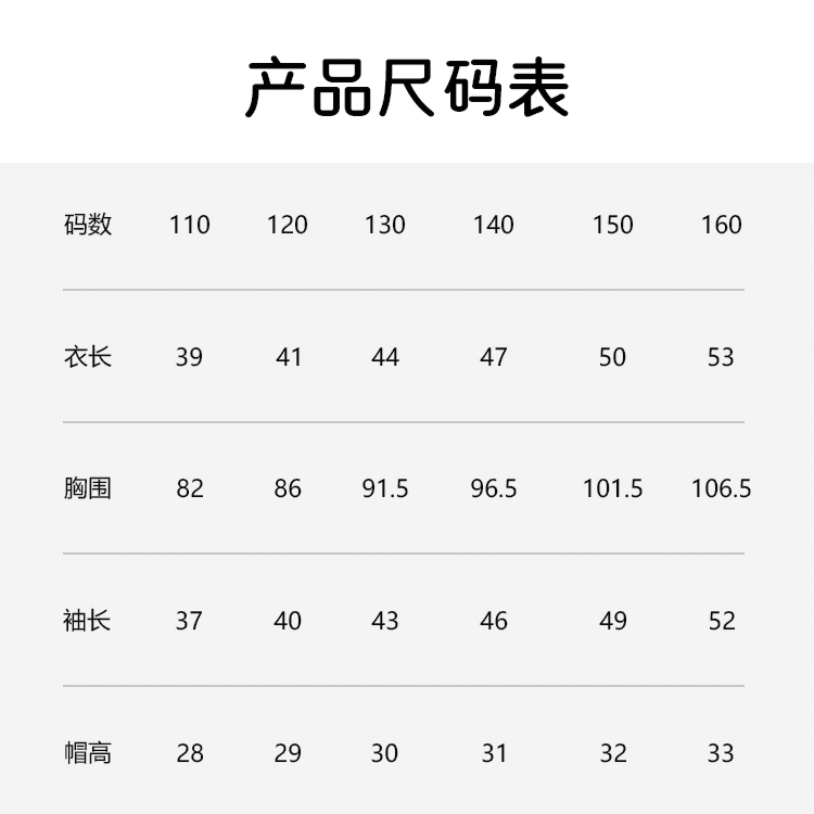 尺码:110-160码